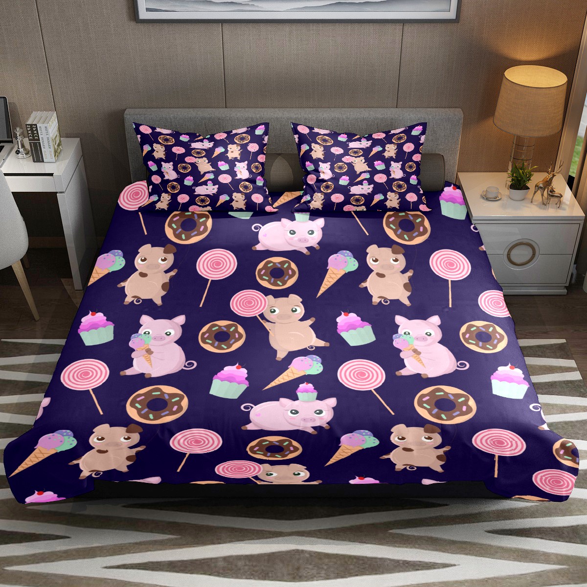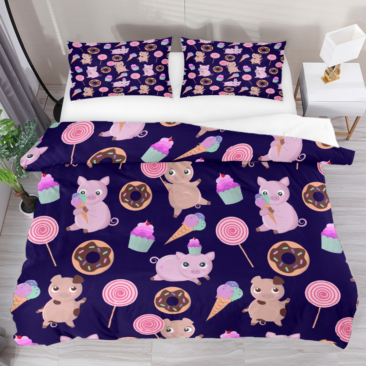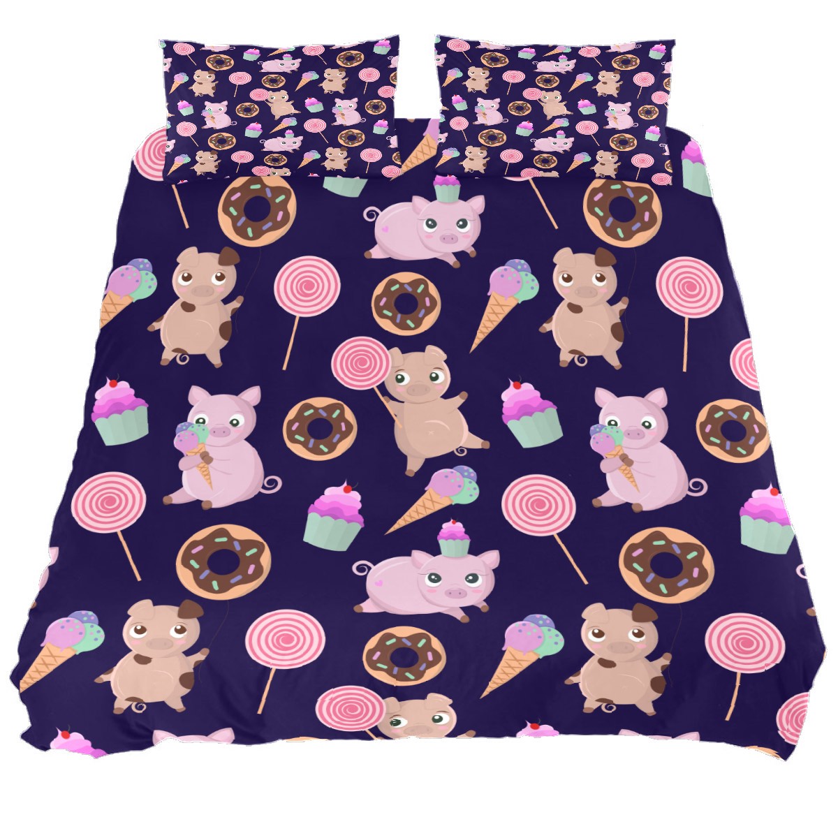 Duvet Cover Twin Animal Cute Pig With Candy 3pcs Bedding Duvet Cover Set Modern Quilt Cover Microfiber Comforter Cover with Button Closure with 2 Pillow Cases 1 Duvet Cover