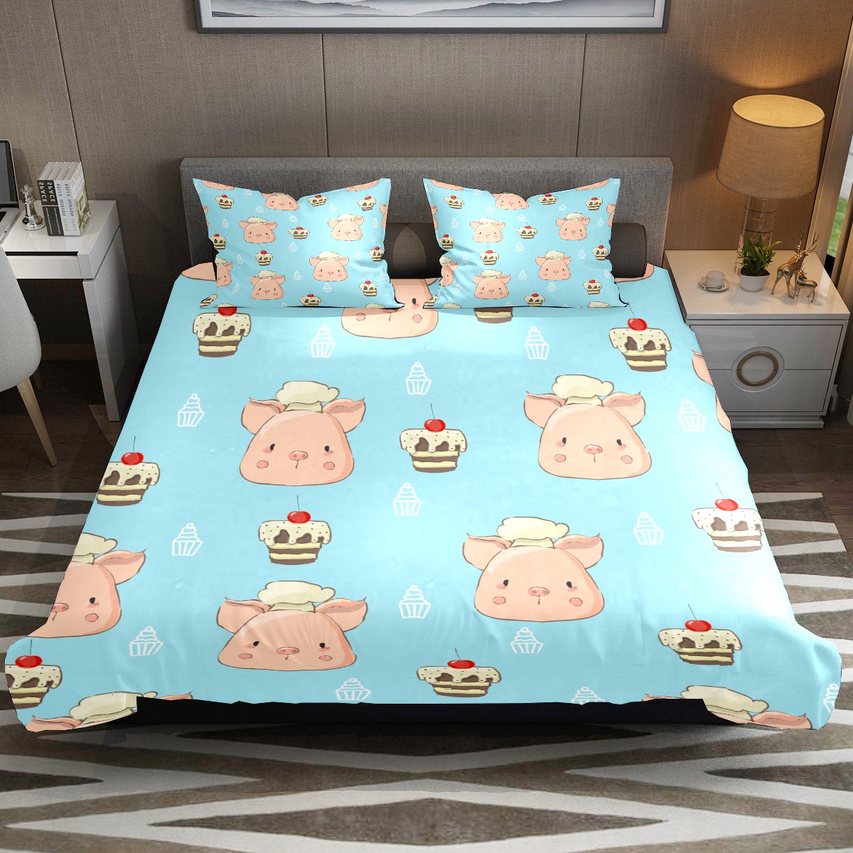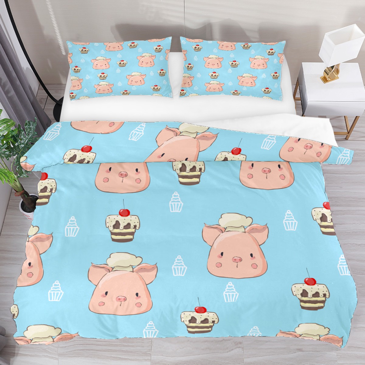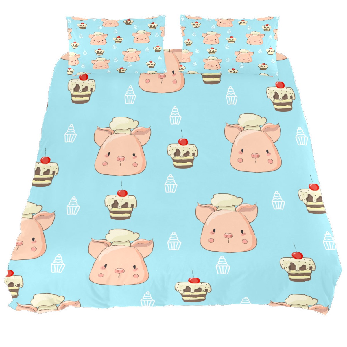 Duvet Cover Twin Animal Cute Pig With Cake 3pcs Bedding Duvet Cover Set Modern Quilt Cover Microfiber Comforter Cover with Button Closure with 2 Pillow Cases 1 Duvet Cover
