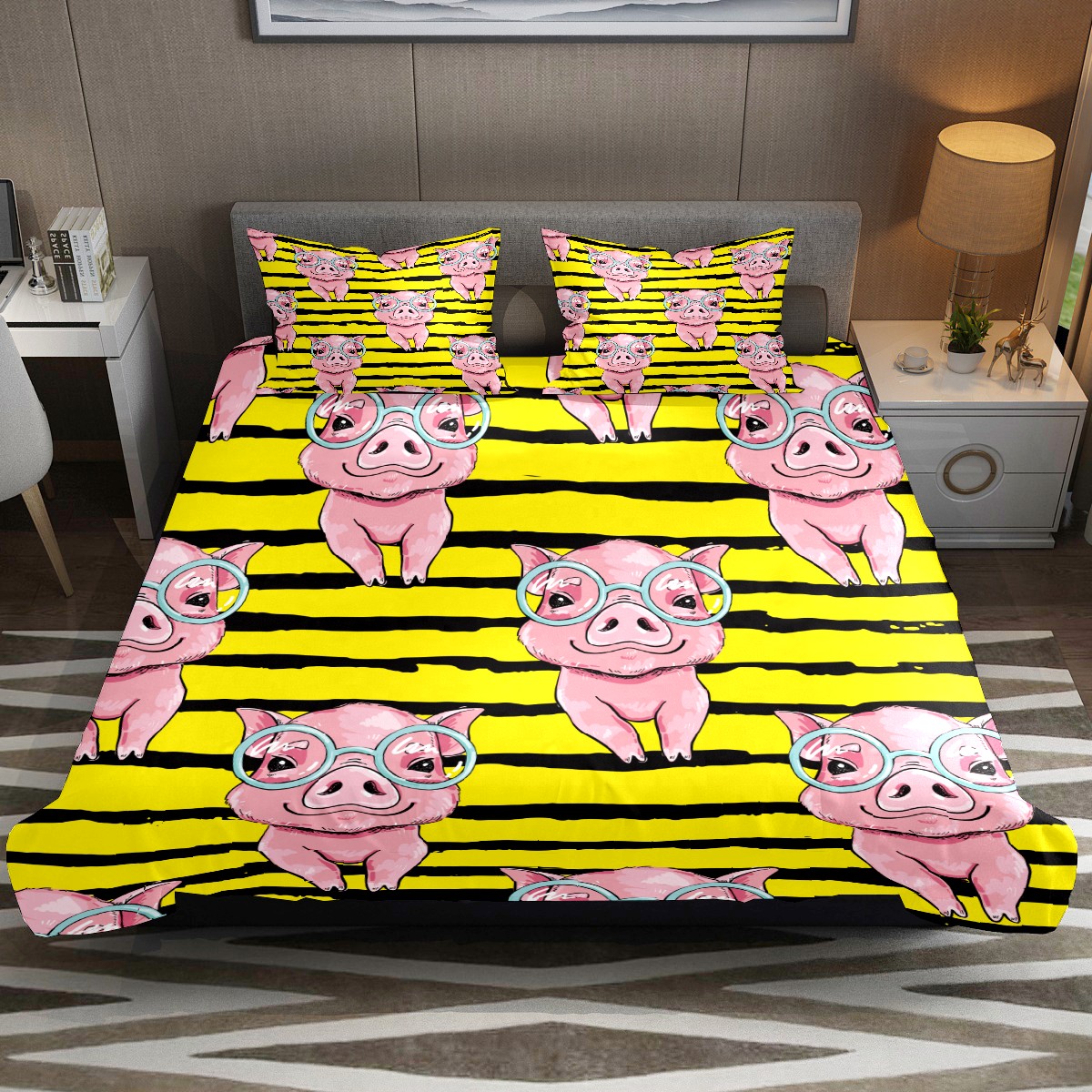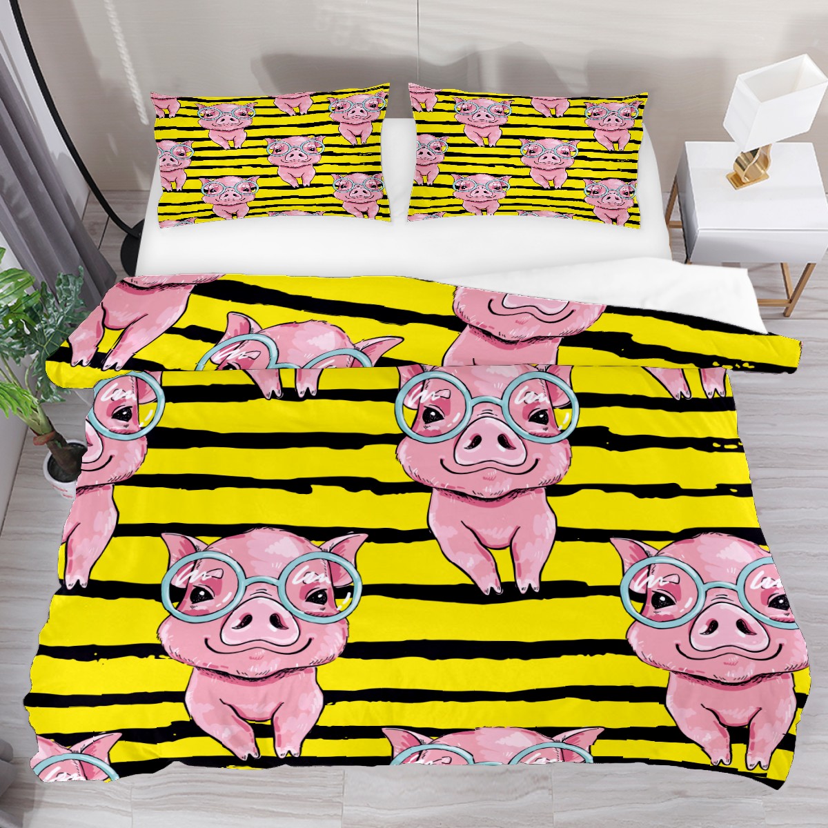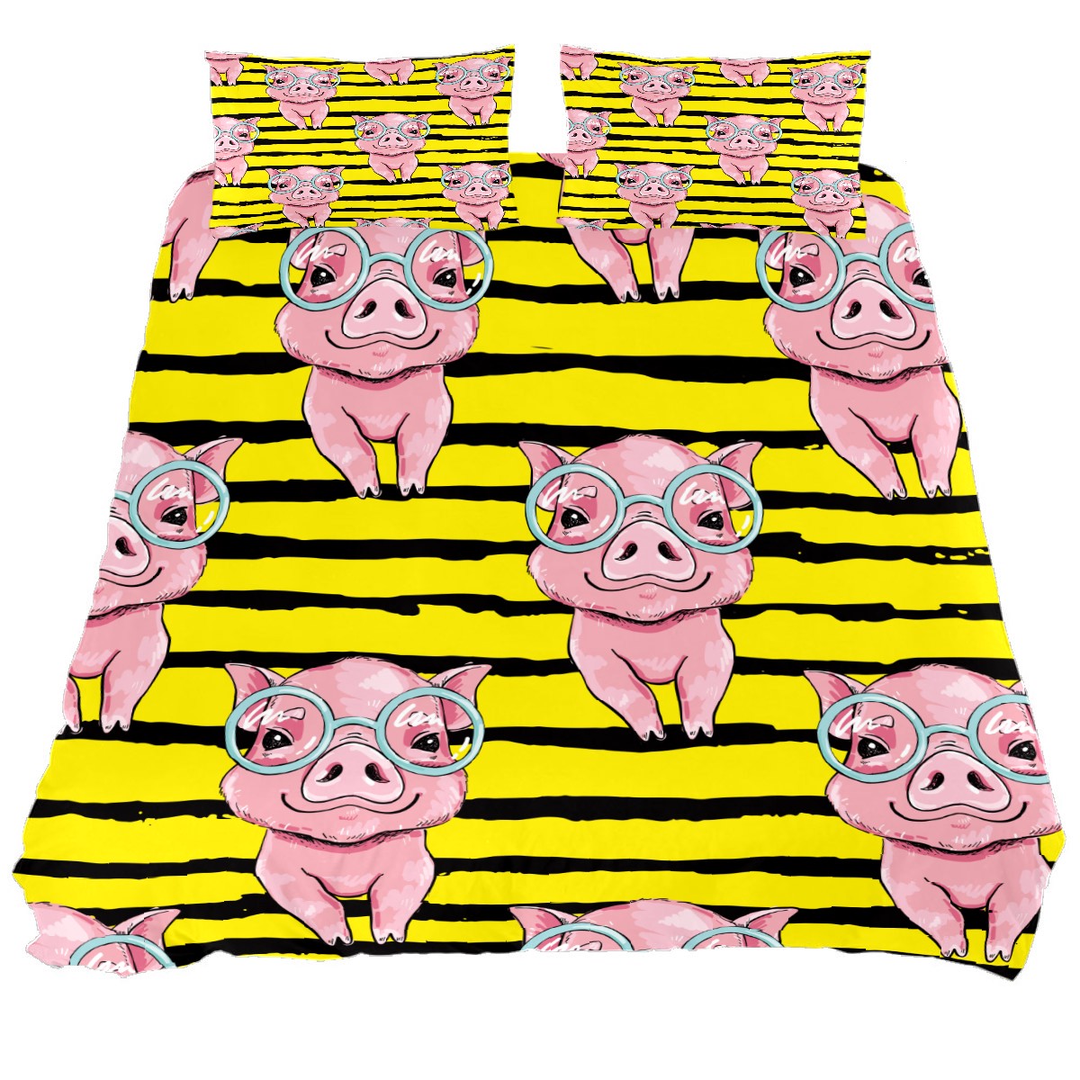 Duvet Cover Twin Animal Cute Pig Stripe 3pcs Bedding Duvet Cover Set Modern Quilt Cover Microfiber Comforter Cover with Button Closure with 2 Pillow Cases 1 Duvet Cover