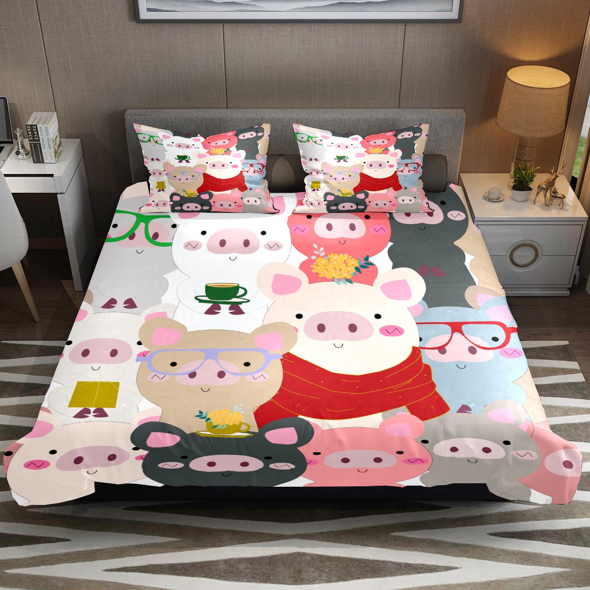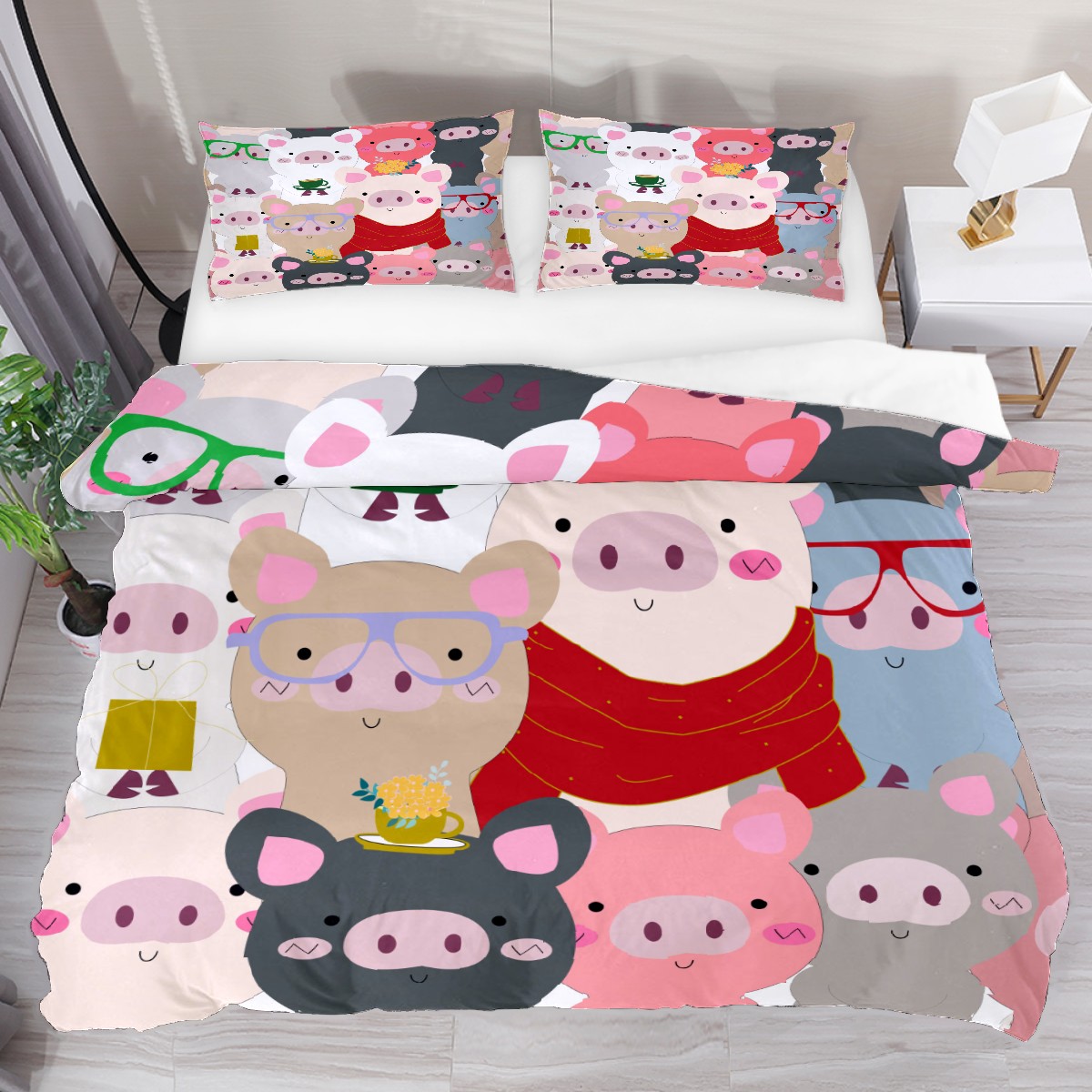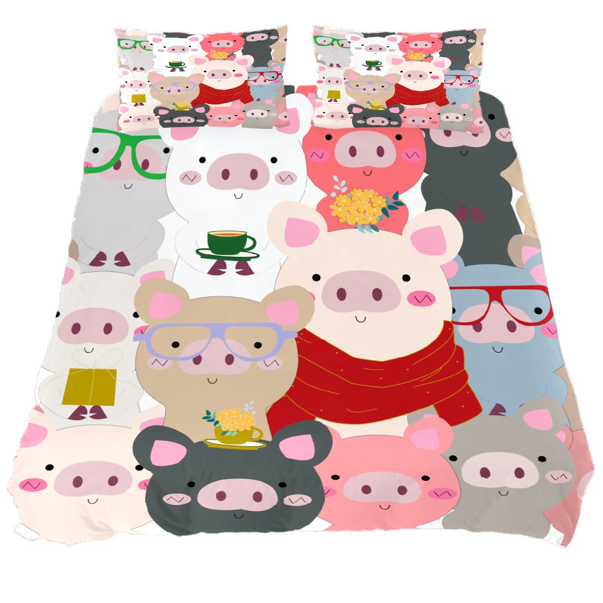 Duvet Cover Twin Animal Cute Pig Pattern 3pcs Bedding Duvet Cover Set Modern Quilt Cover Microfiber Comforter Cover with Button Closure with 2 Pillow Cases 1 Duvet Cover