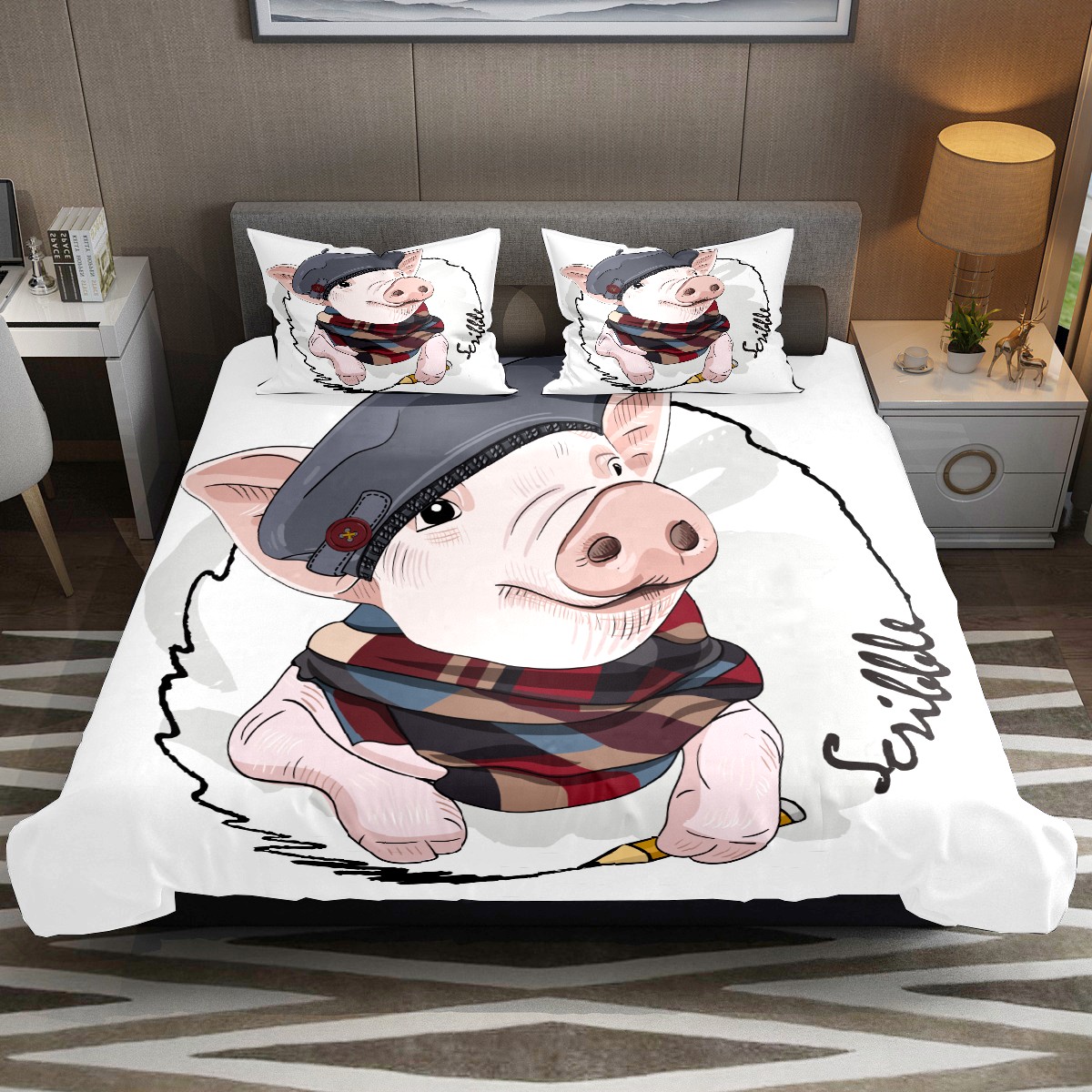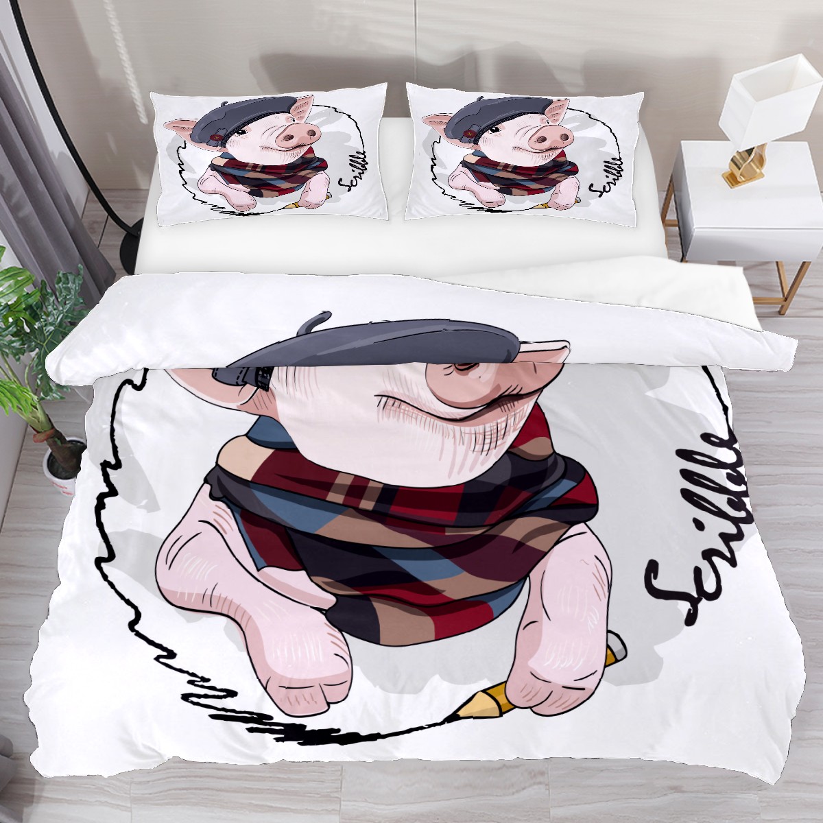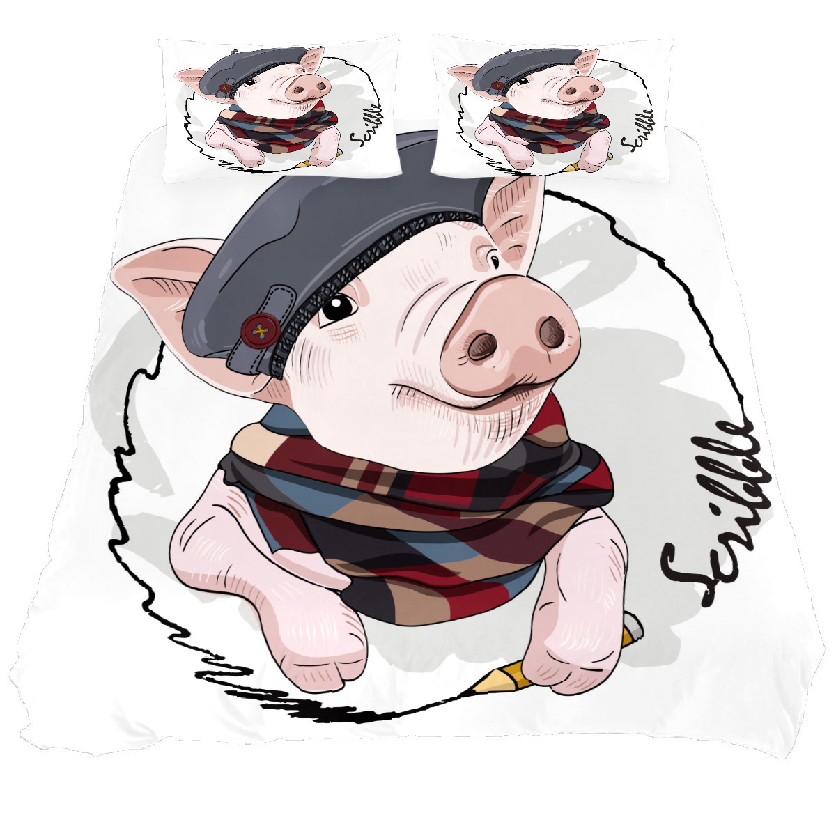 Duvet Cover Twin Animal Cute Pig Fun 3pcs Bedding Duvet Cover Set Modern Quilt Cover Microfiber Comforter Cover with Button Closure with 2 Pillow Cases 1 Duvet Cover