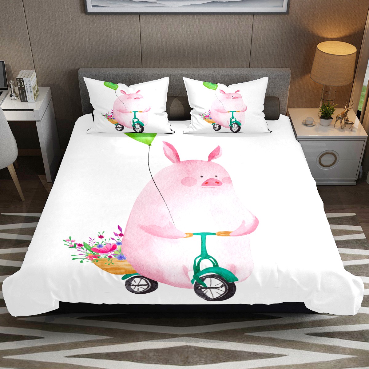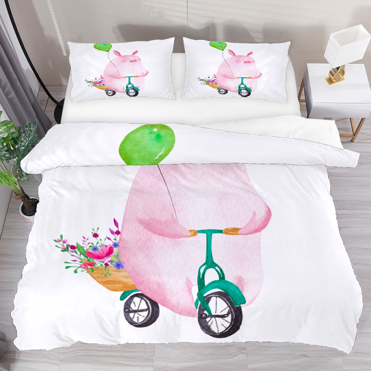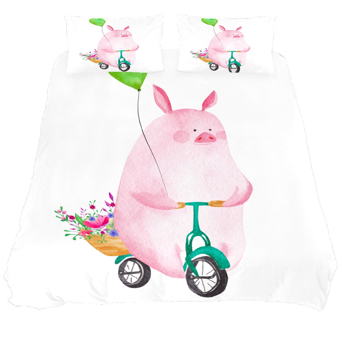 Duvet Cover Twin Animal Cute Pig Bicycling 3pcs Bedding Duvet Cover Set Modern Quilt Cover Microfiber Comforter Cover with Button Closure with 2 Pillow Cases 1 Duvet Cover