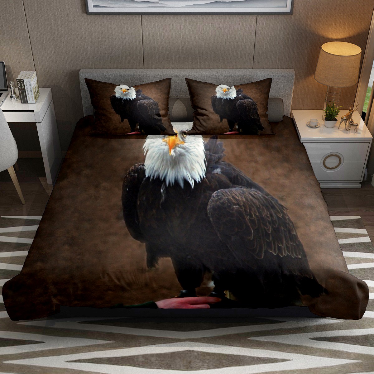 Duvet Cover Twin Wildlife Eagle Falcon 3pcs Bedding Duvet Cover Set Modern Quilt Cover Microfiber Comforter Cover with Button Closure with 2 Pillow Cases 1 Duvet Cover