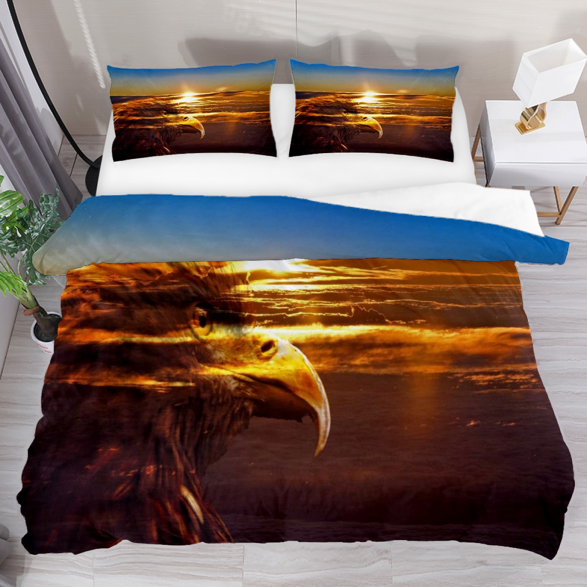 Duvet Cover Twin Sunrise With Eagle Animal 3pcs Bedding Duvet Cover Set Modern Quilt Cover Microfiber Comforter Cover with Button Closure with 2 Pillow Cases 1 Duvet Cover