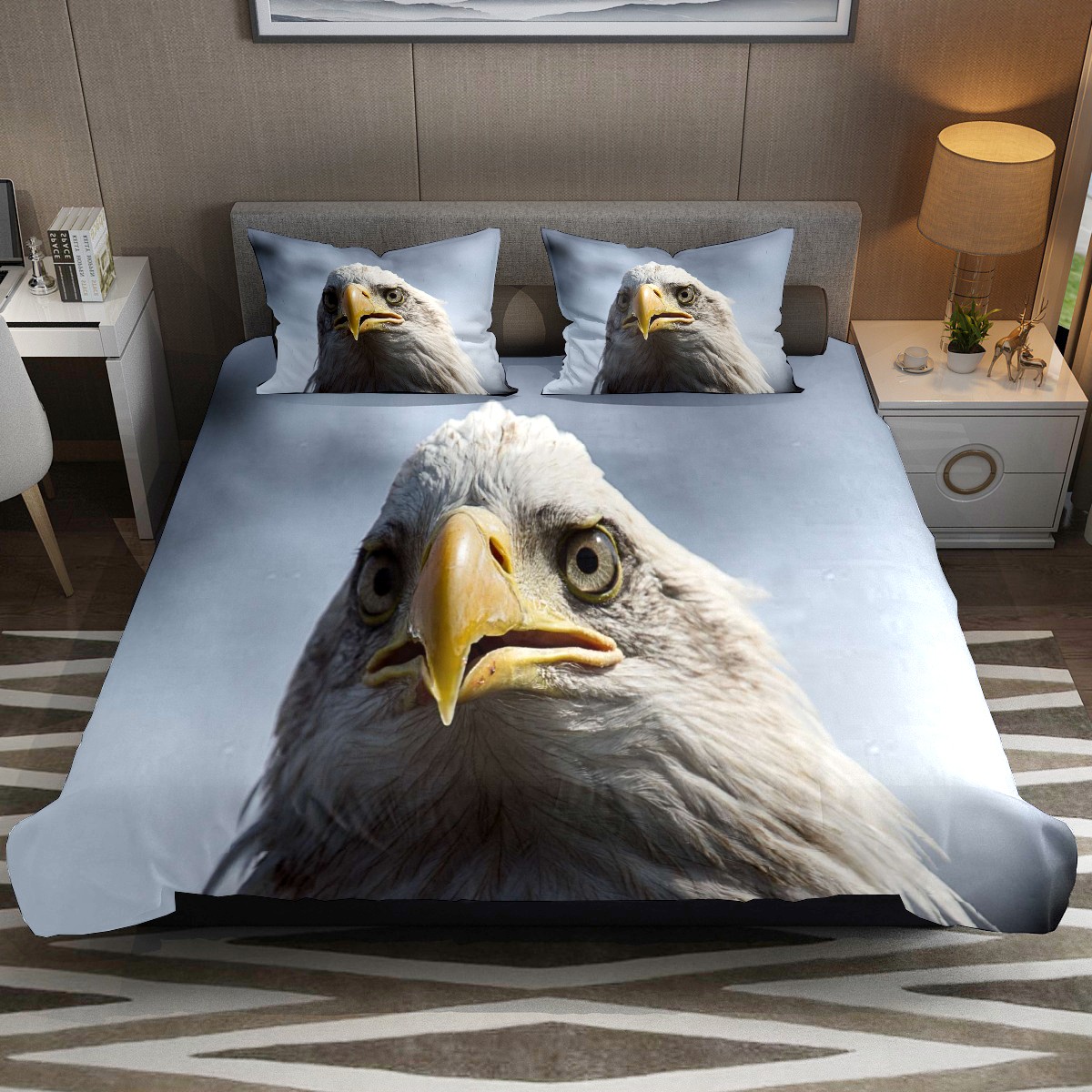 Duvet Cover Twin Wild Animal Bald Eagle 3pcs Bedding Duvet Cover Set Modern Quilt Cover Microfiber Comforter Cover with Button Closure with 2 Pillow Cases 1 Duvet Cover