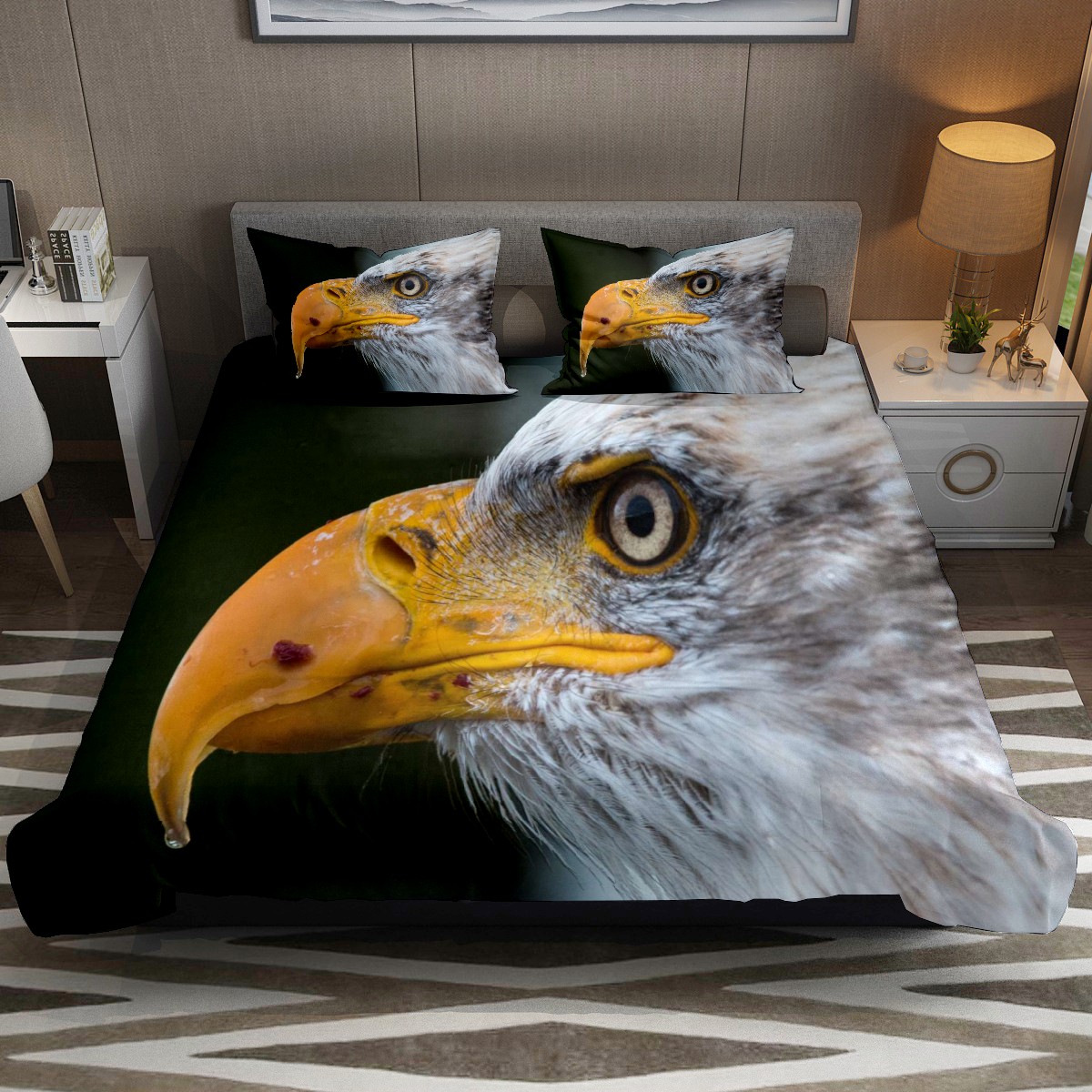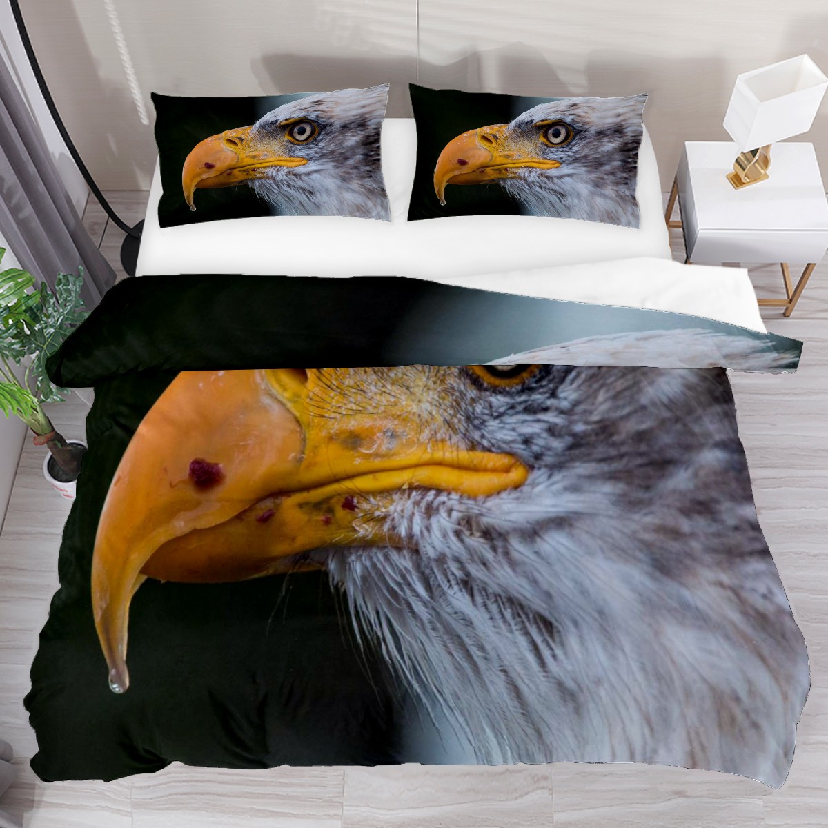 Duvet Cover Twin Wild Animal Bald Eagle Falcon 3pcs Bedding Duvet Cover Set Modern Quilt Cover Microfiber Comforter Cover with Button Closure with 2 Pillow Cases 1 Duvet Cover