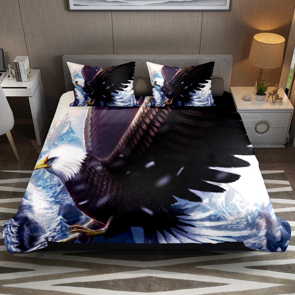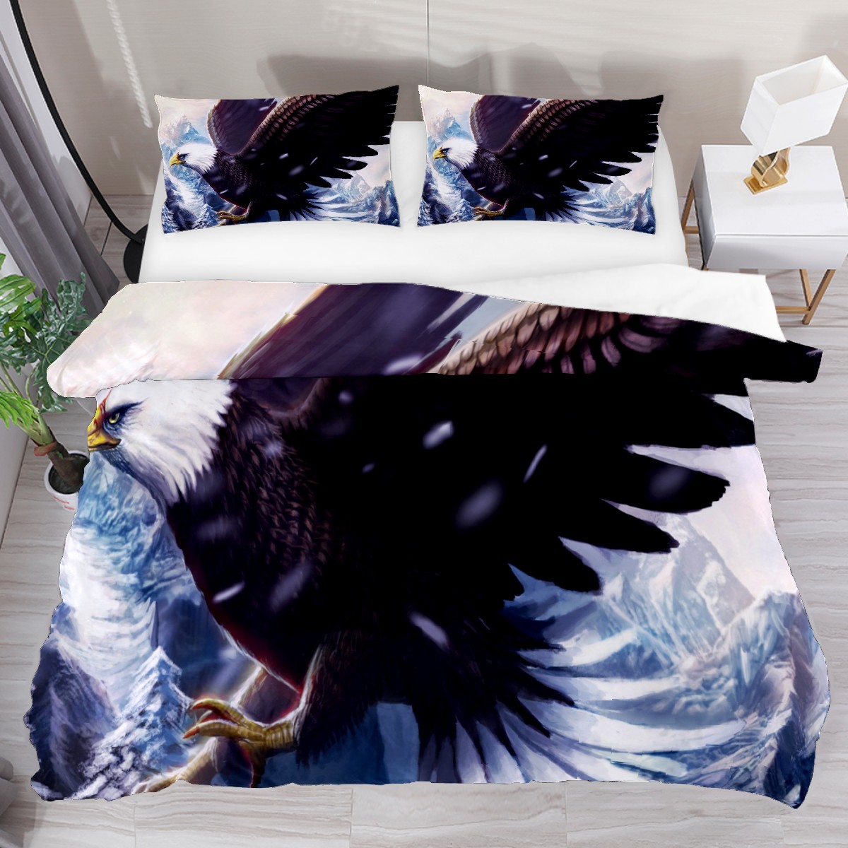 Duvet Cover Twin Flying Bald Eagle Bird 3pcs Bedding Duvet Cover Set Modern Quilt Cover Microfiber Comforter Cover with Button Closure with 2 Pillow Cases 1 Duvet Cover