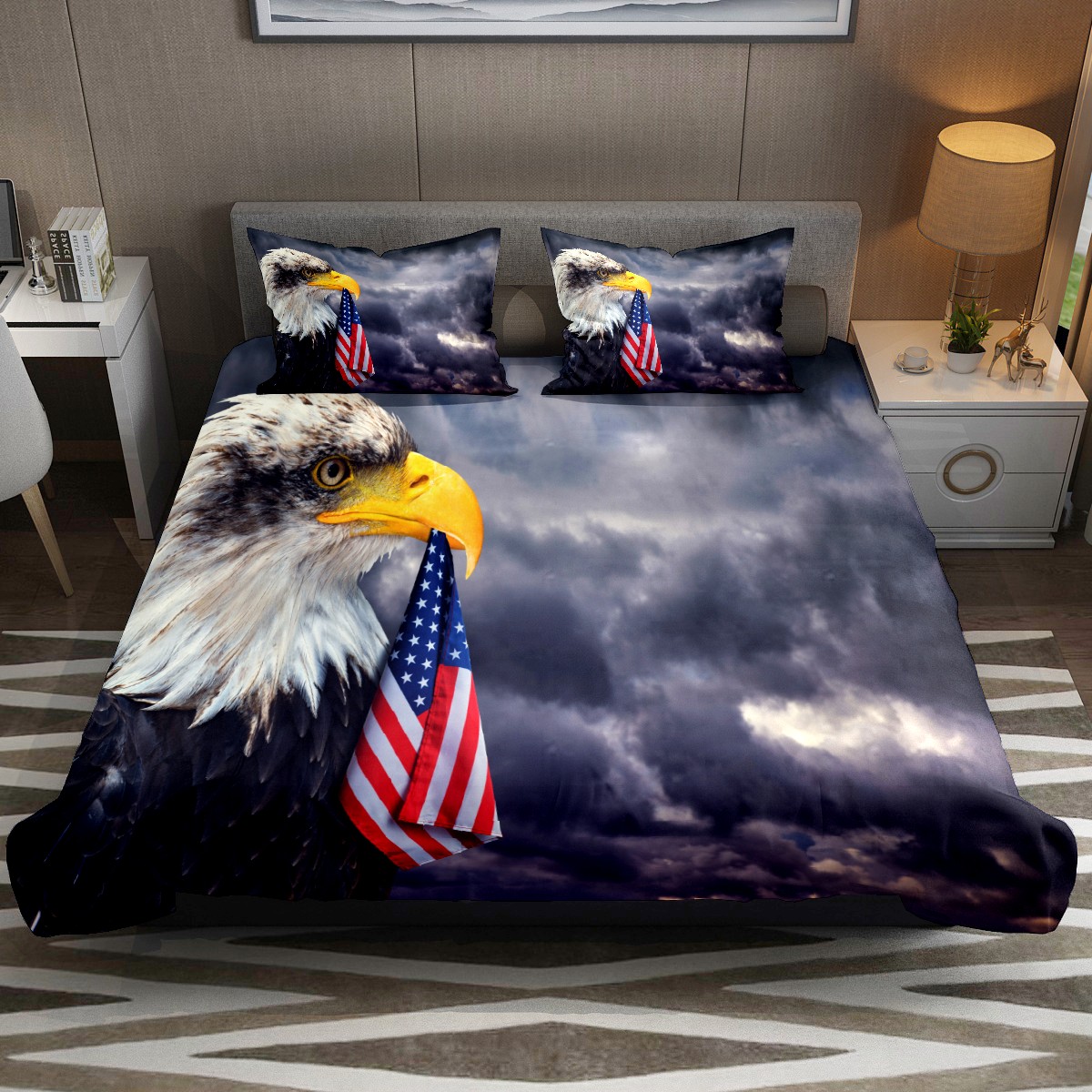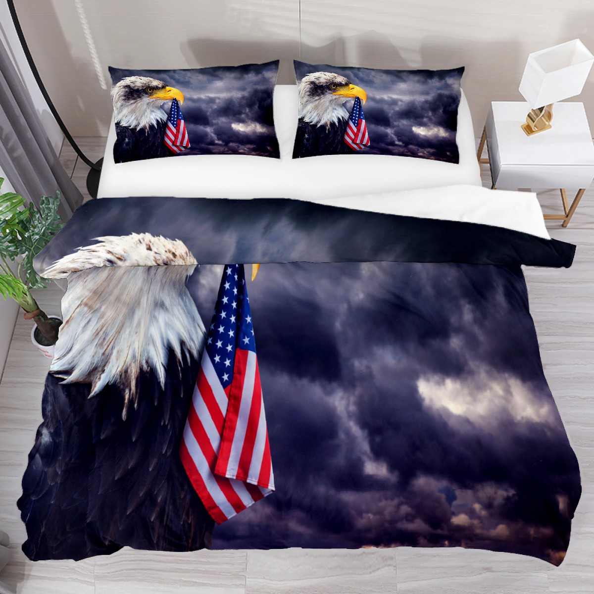 Duvet Cover Twin Animal Wildlife Patriotic Eagle 3pcs Bedding Duvet Cover Set Modern Quilt Cover Microfiber Comforter Cover with Button Closure with 2 Pillow Cases 1 Duvet Cover