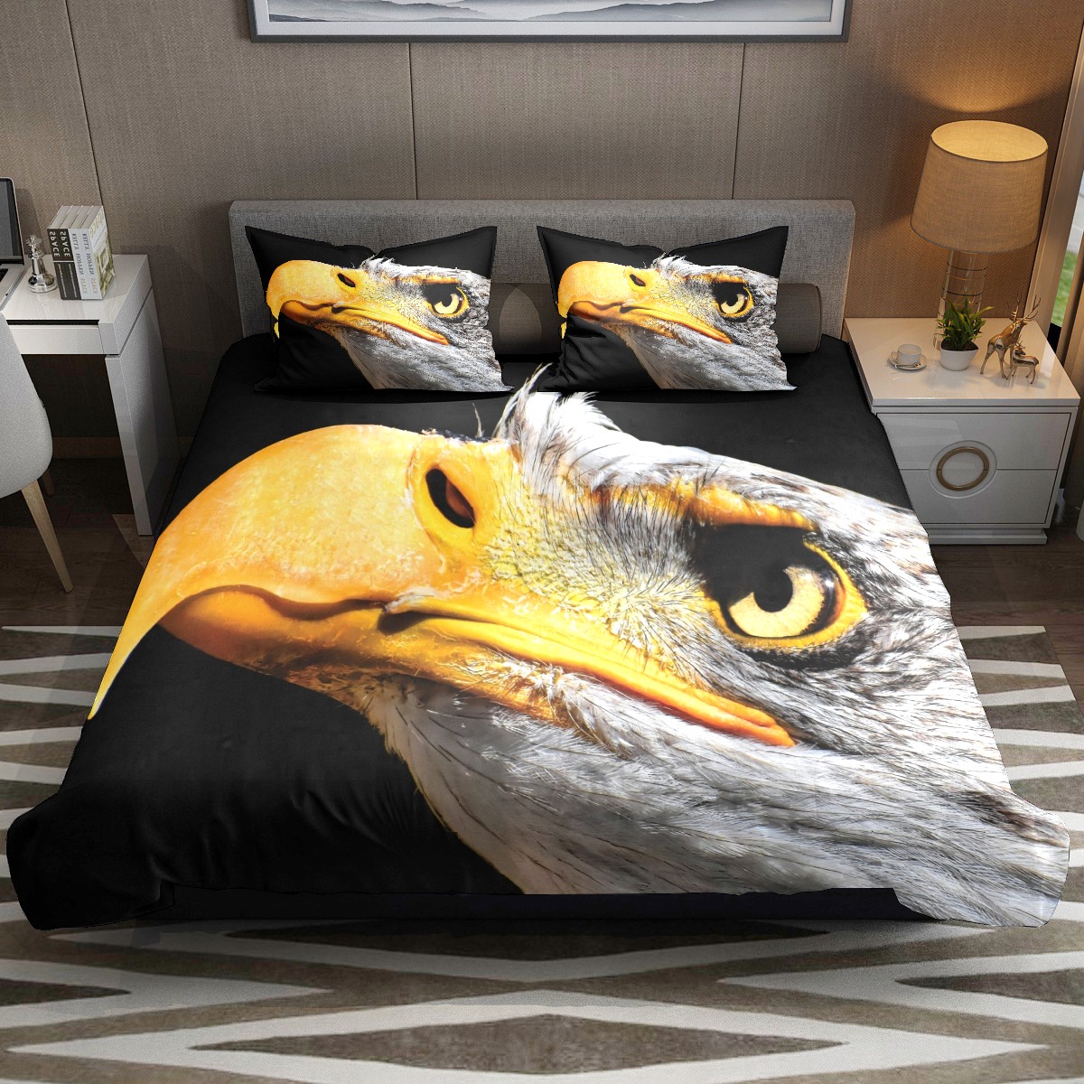 Duvet Cover Twin Animal Bald Eagle Bird Beak 3pcs Bedding Duvet Cover Set Modern Quilt Cover Microfiber Comforter Cover with Button Closure with 2 Pillow Cases 1 Duvet Cover