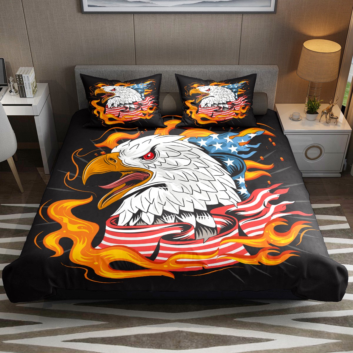 Duvet Cover Twin American Bald Eagle Animal 3pcs Bedding Duvet Cover Set Modern Quilt Cover Microfiber Comforter Cover with Button Closure with 2 Pillow Cases 1 Duvet Cover