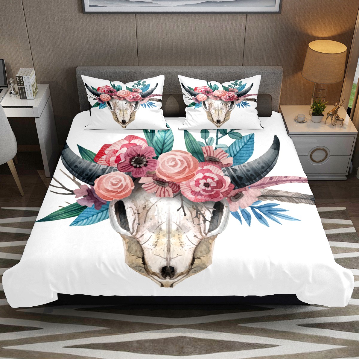 Duvet Cover Twin Sheep Skull With Florals 3pcs Bedding Duvet Cover Set Modern Quilt Cover Microfiber Comforter Cover with Button Closure with 2 Pillow Cases 1 Duvet Cover