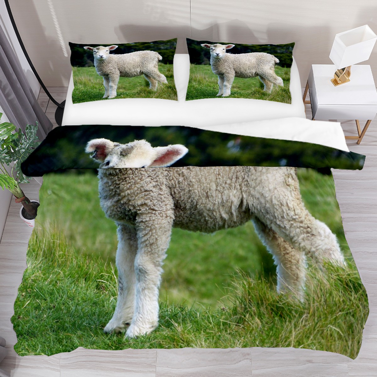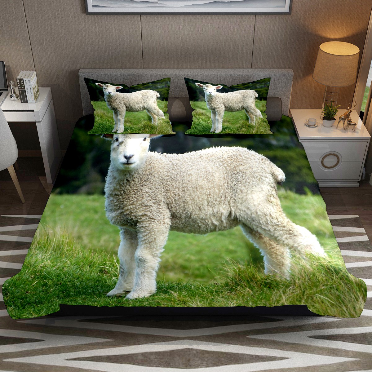 Duvet Cover Twin Sheep White Lamb Goat Animal 3pcs Bedding Duvet Cover Set Modern Quilt Cover Microfiber Comforter Cover with Button Closure with 2 Pillow Cases 1 Duvet Cover