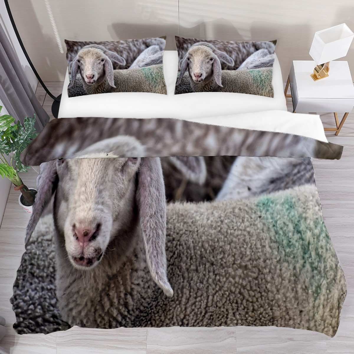 Duvet Cover Twin Sheep Lamb Farm Animal Wool 3pcs Bedding Duvet Cover Set Modern Quilt Cover Microfiber Comforter Cover with Button Closure with 2 Pillow Cases 1 Duvet Cover