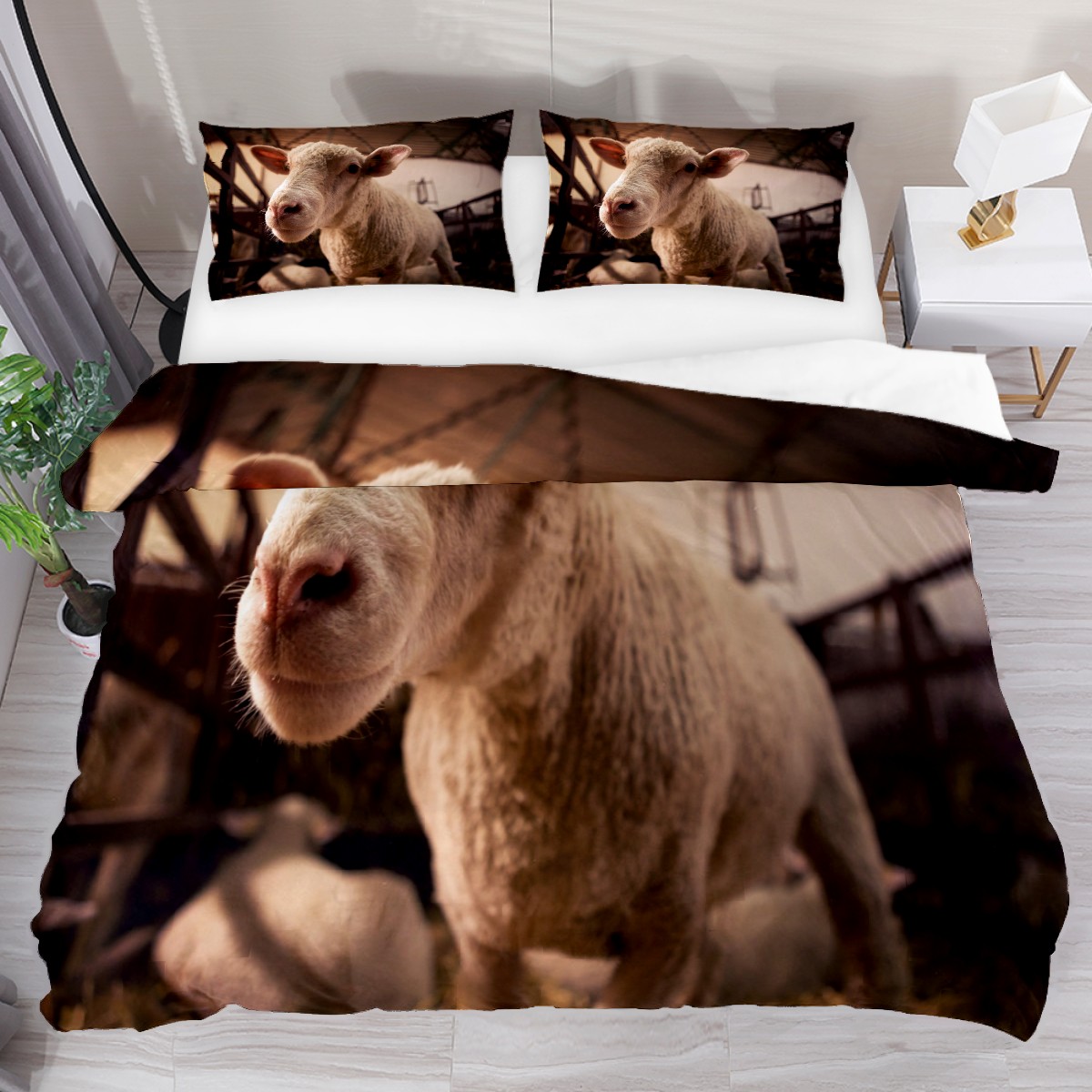Duvet Cover Twin Sheep Lamb Domestic Animal 3pcs Bedding Duvet Cover Set Modern Quilt Cover Microfiber Comforter Cover with Button Closure with 2 Pillow Cases 1 Duvet Cover