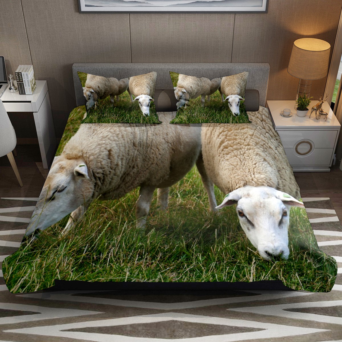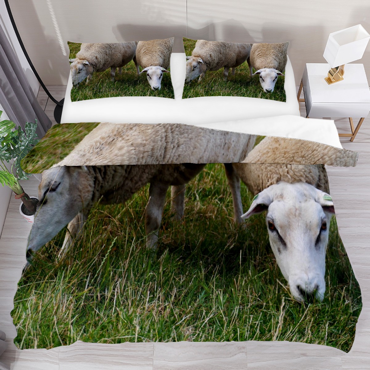 Duvet Cover Twin Sheep Cute Animal 3pcs Bedding Duvet Cover Set Modern Quilt Cover Microfiber Comforter Cover with Button Closure with 2 Pillow Cases 1 Duvet Cover