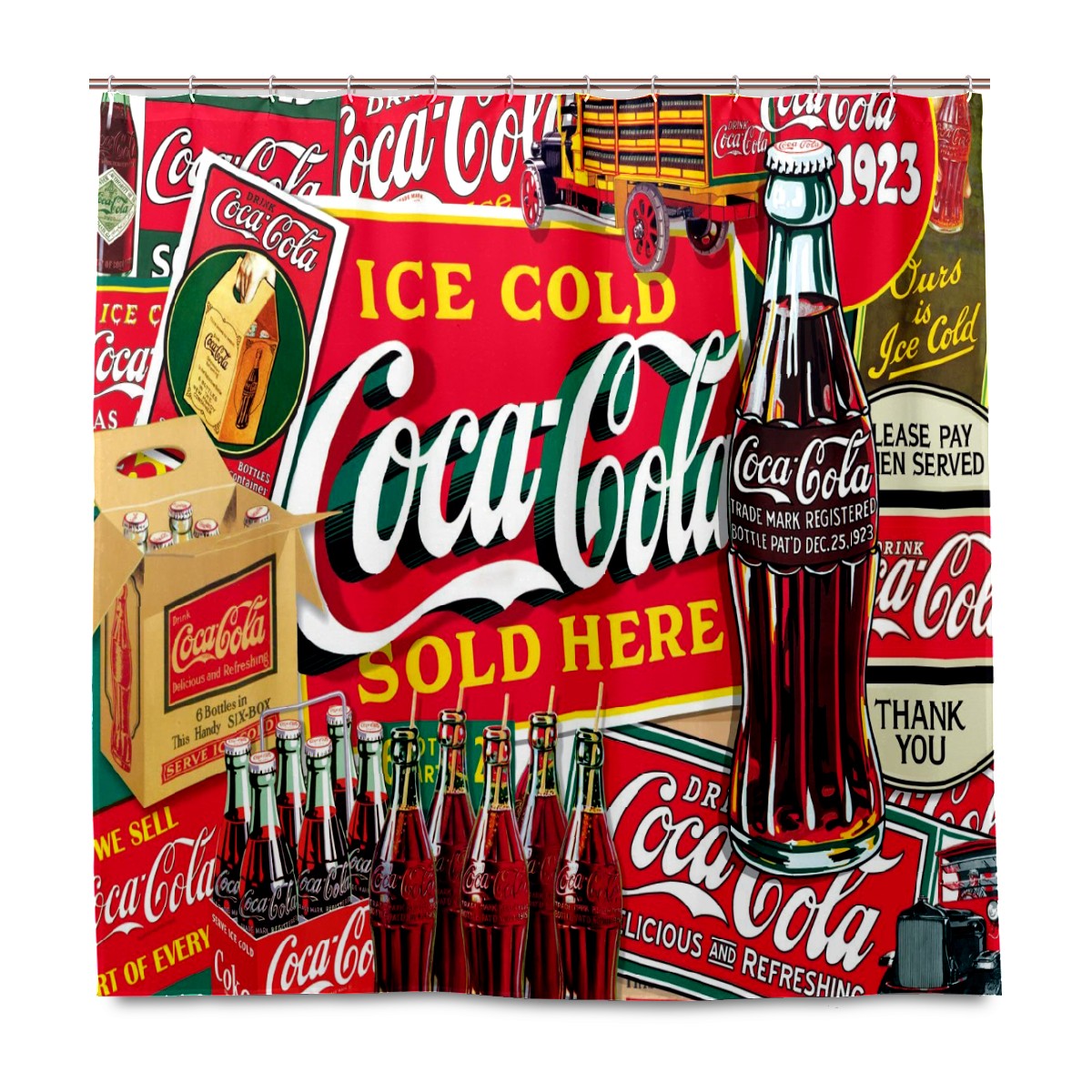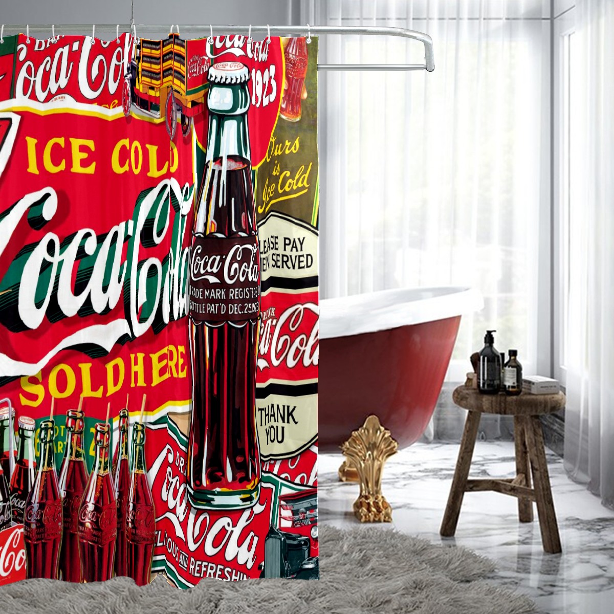 Bathroom Shower Curtain with 12 Hooks Coca Cola Decorative Bath Curtain Durable Waterproof Fabric Bathroom Curtain 60x72 inch