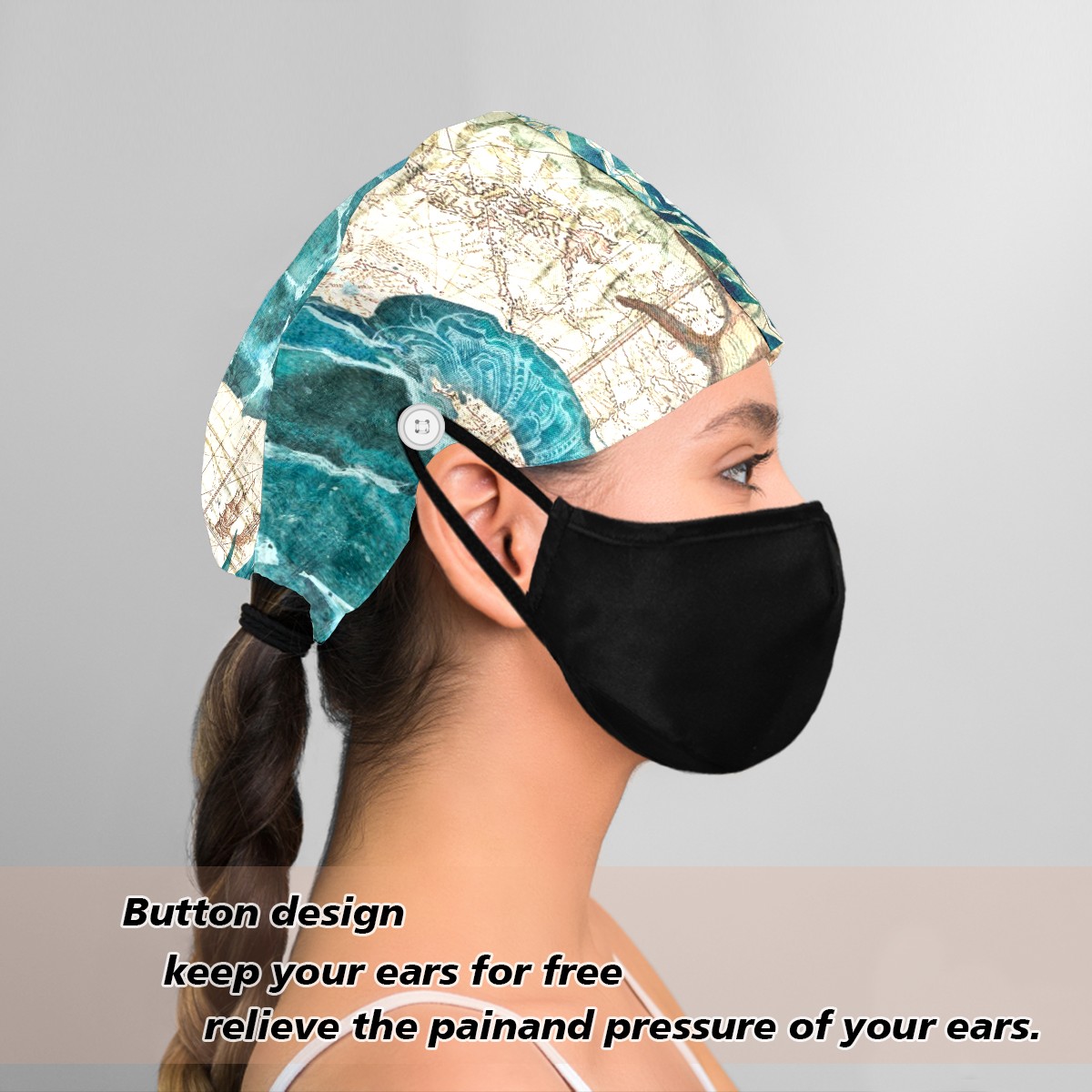 <p><b>Material:</b>polyester and cotton towel cloth</p><p><b>Gender: </b>Friendly for men and women, can use as working hat,driendly hat,sanitary hat, bleach friendly hat, chef cap,cleaning caps for hair loss, pet store headwear,etc.</p><p><b>Size:</b>The working cap is an adjustable strap design, one size can fit all needs</p><p><b>Occasion:</b> The work cap is suitable for work, cooking,cosmetology, home protection, etc. It allows you to maintain your hairstyle and keep your head clean and tidy during work.</p><p><b>Features:</b> The beautiful printed work hat is equipped with adjustable straps at the back end, which allows you to decorate with fashionable knots or cute bows. It can not only be used as a work hat, but also as a fashionable, streetwear fashion accessory or Baseball cap</p><p><b>Gift: </b>If you don’t know what to give to friends and relatives on Father’s Day, Easter, Christmas and other holidays, then our Working Caps is your ideal choice</p>