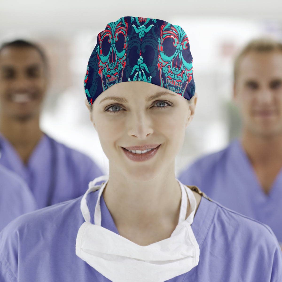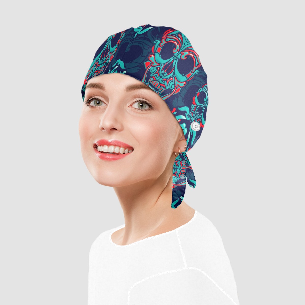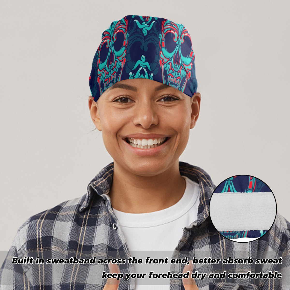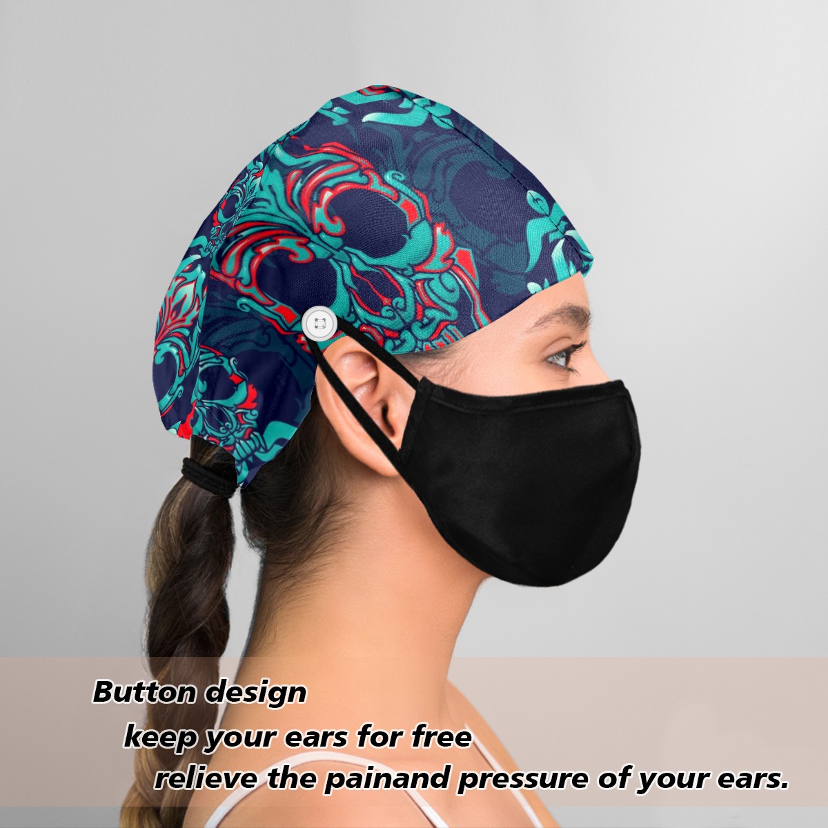 Adjustable Working Caps,Mexico Sugar Skull Pattern Bouffant Hat With Button and Sweatband , Hair Covers Head Cover Turban Cap for Women/Men