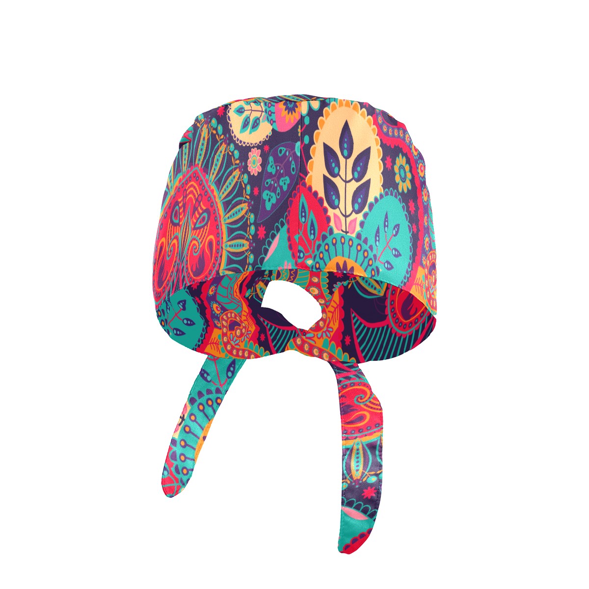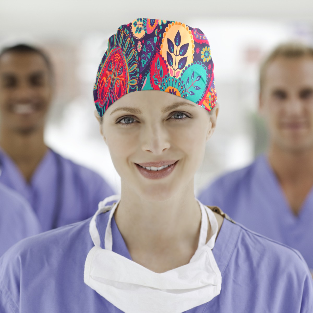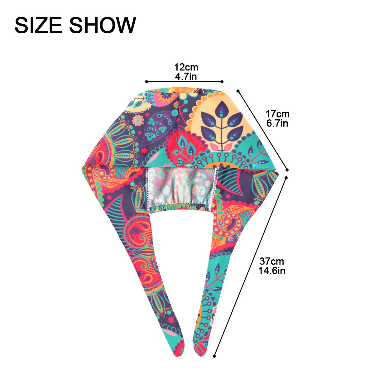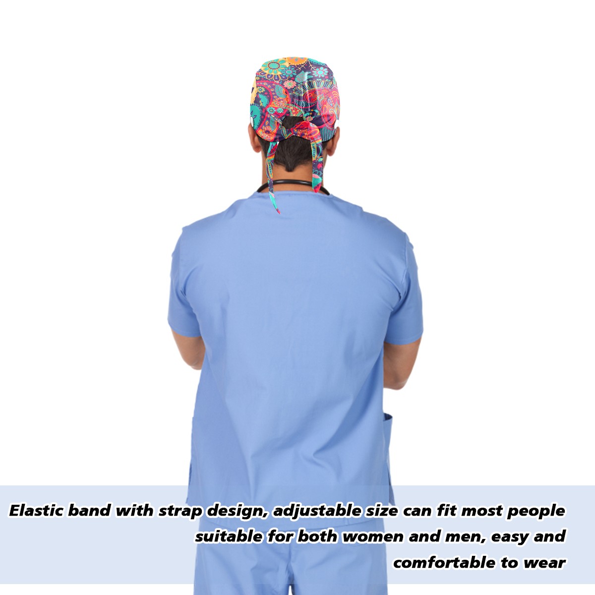 Adjustable Working Caps,Colorful Ethnic Floral Print Bouffant Hat With Button and Sweatband , Hair Covers Head Cover Turban Cap for Women/Men