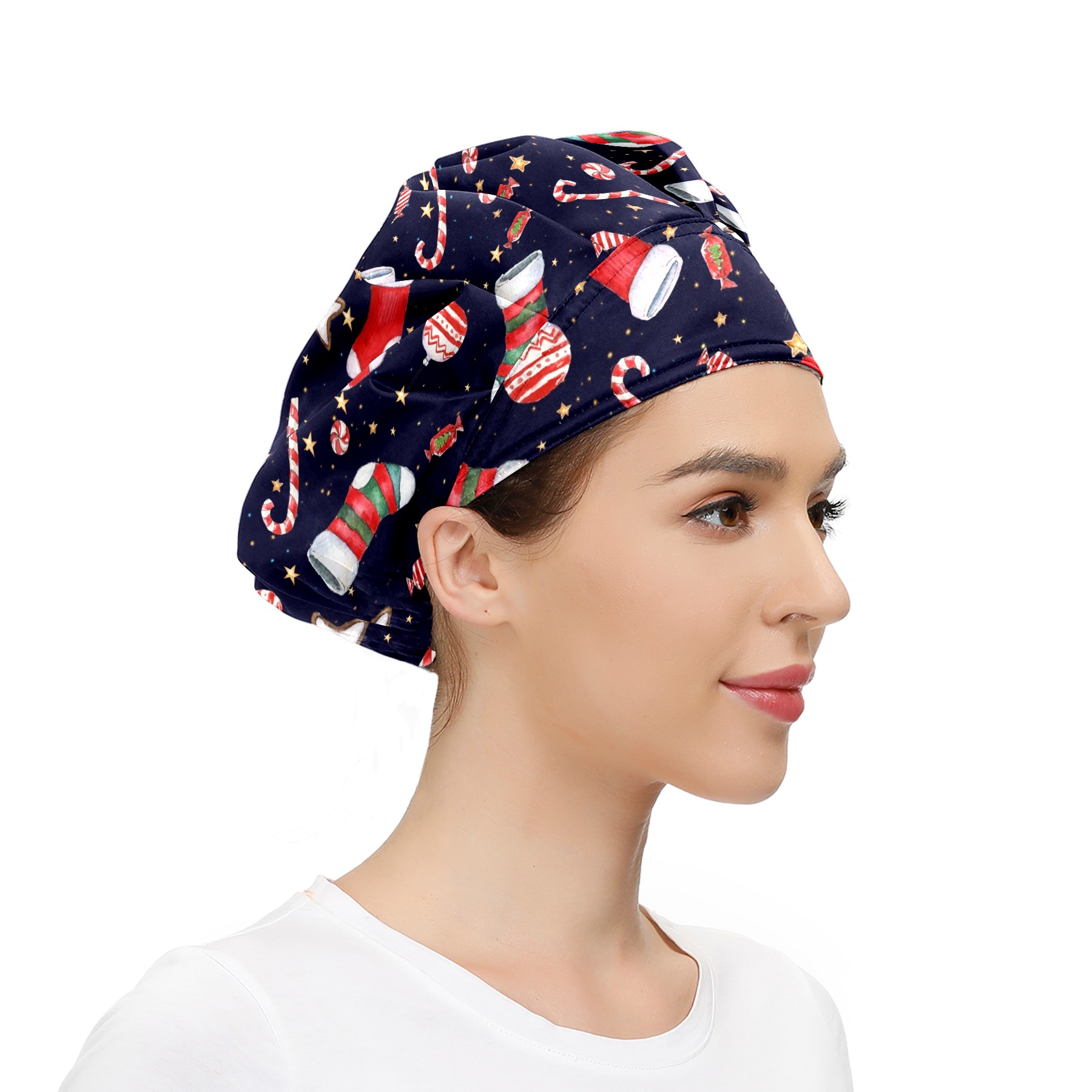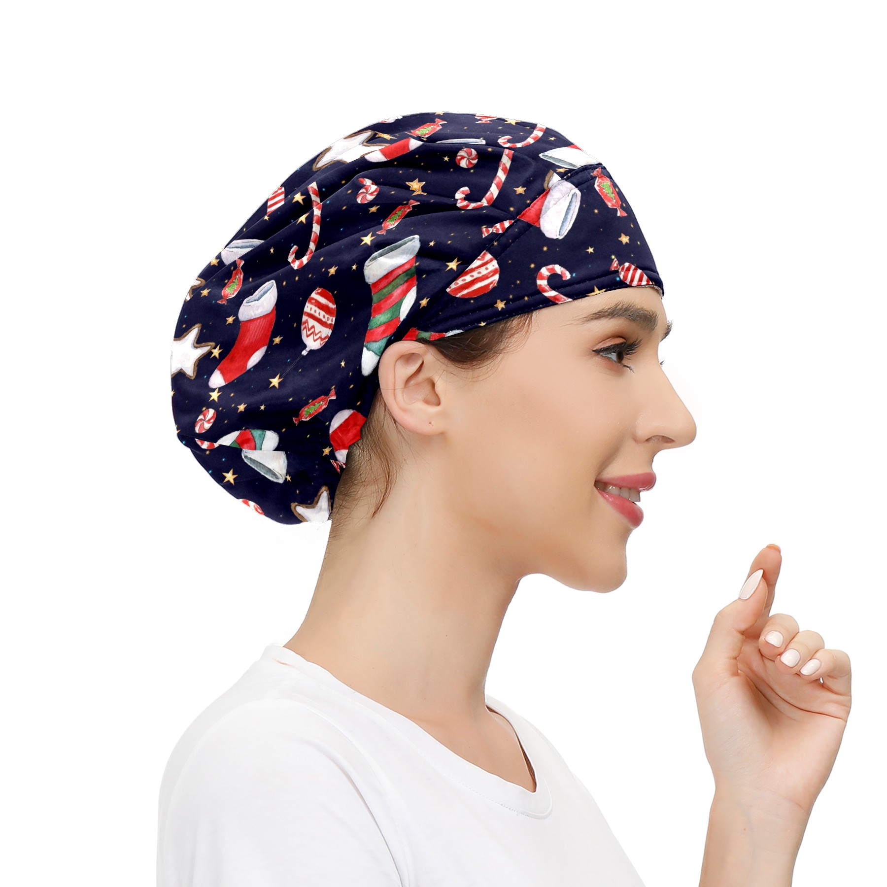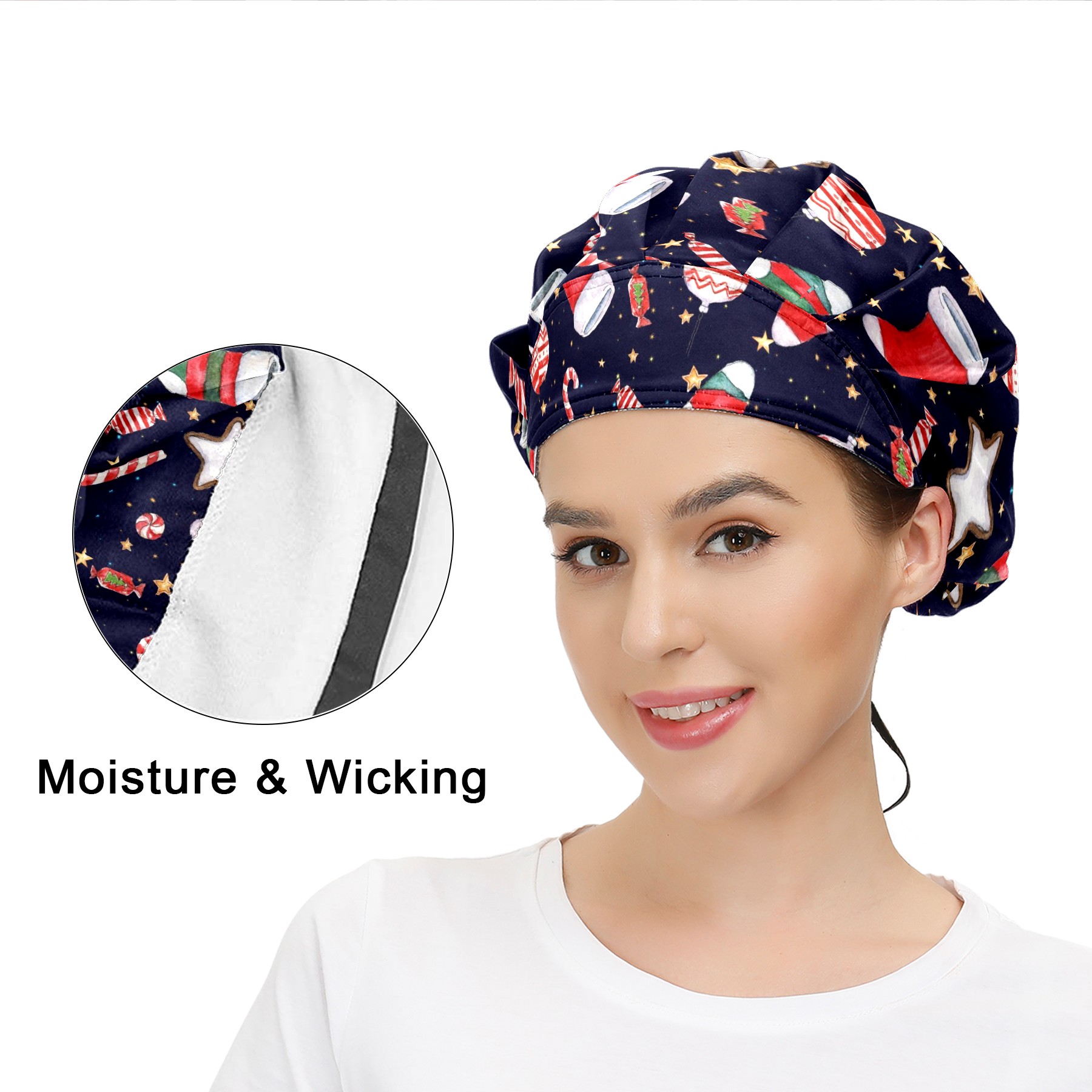 Adjustable Working Caps,Christmas Elastic Bouffant hat With Sweatband, Hair Covers Head Cover Turban Cap for Women/Men