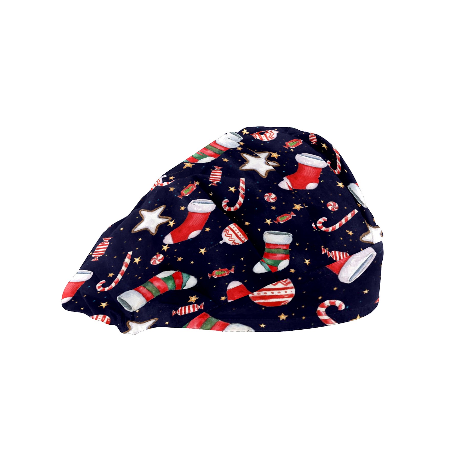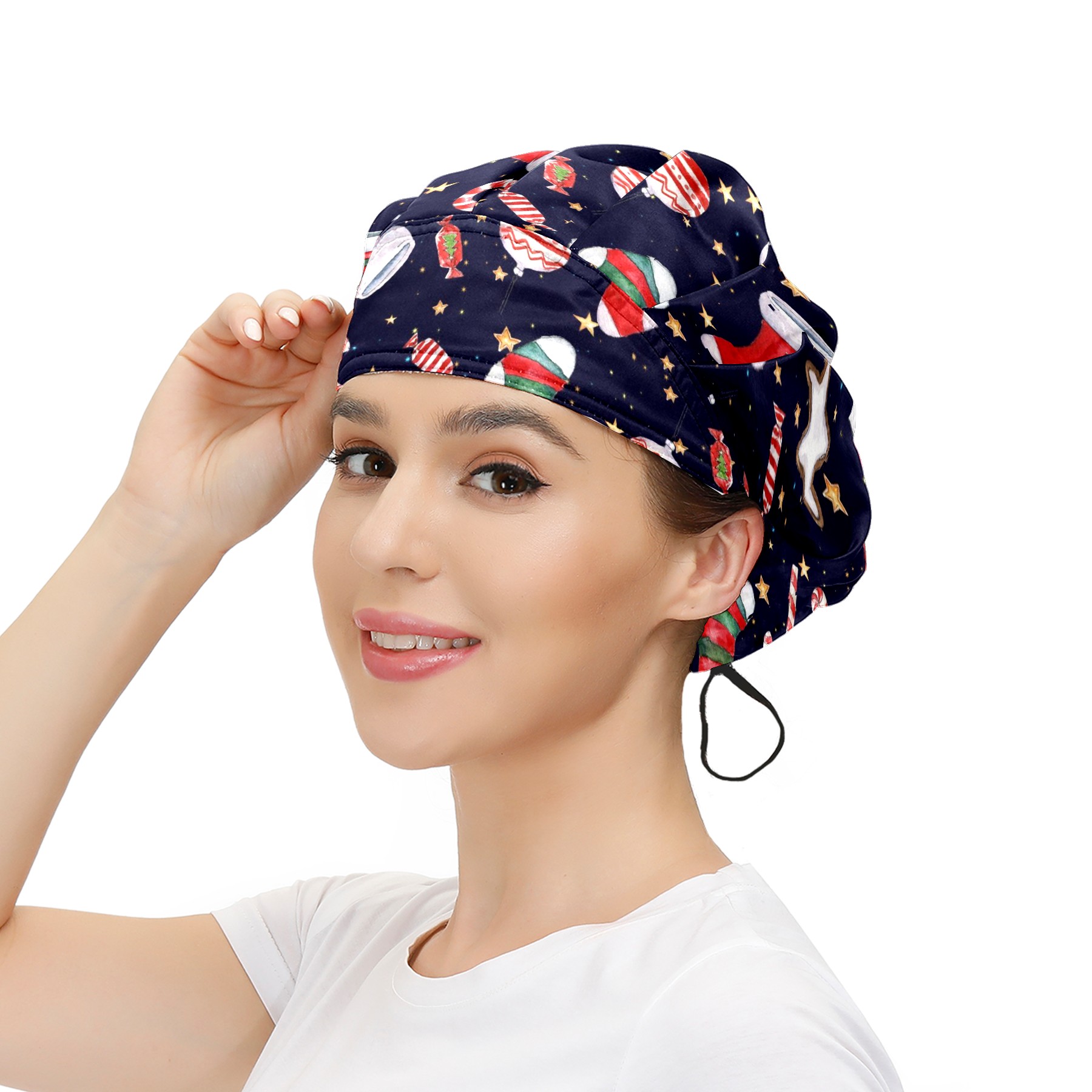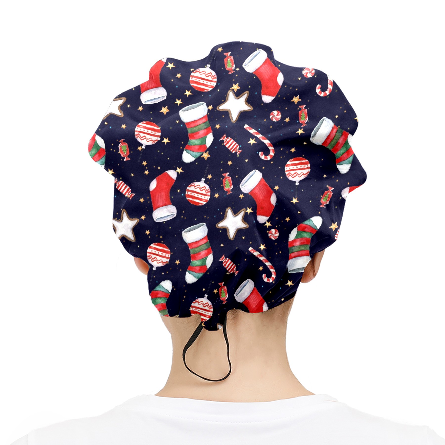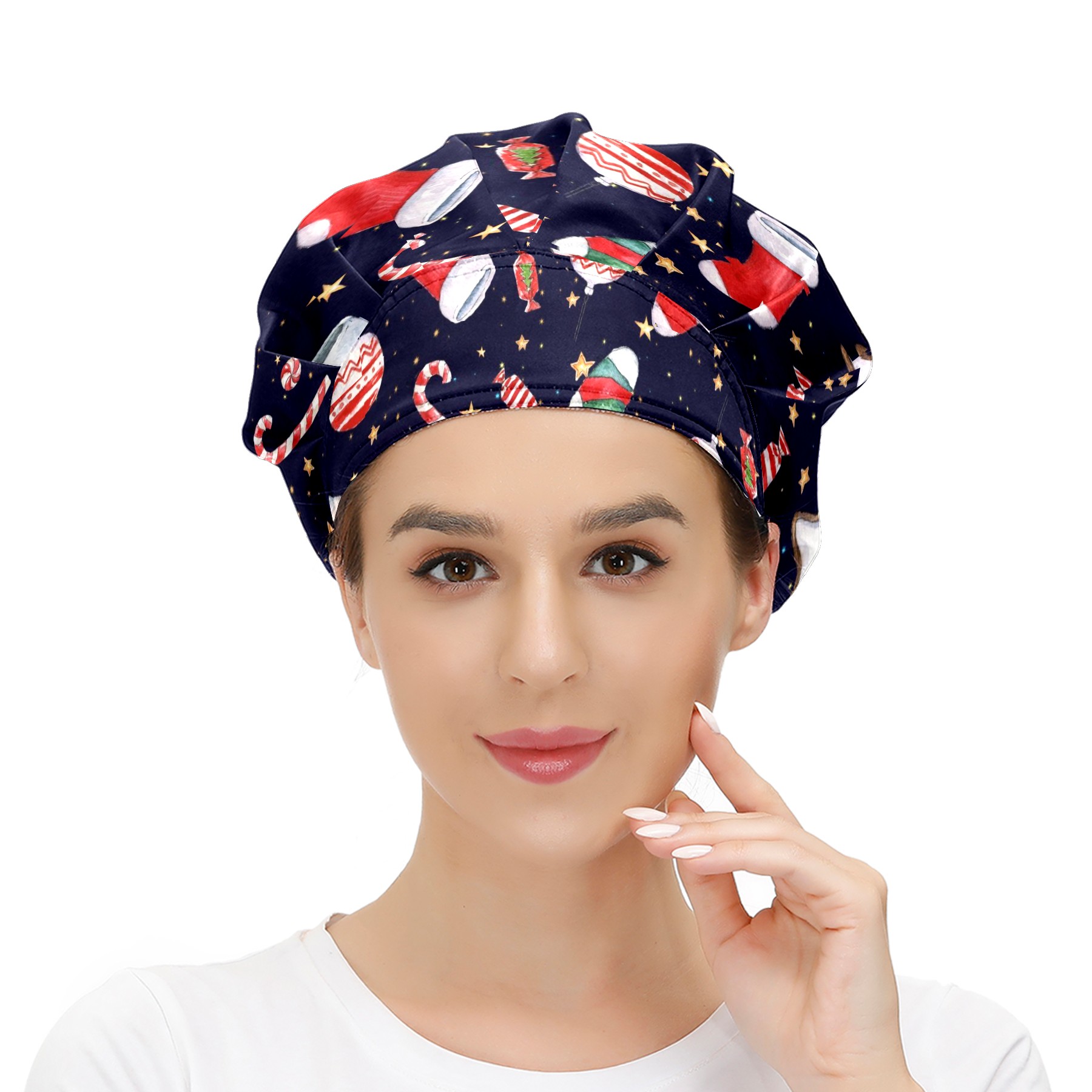 Adjustable Working Caps,Christmas Elastic Bouffant hat With Sweatband, Hair Covers Head Cover Turban Cap for Women/Men