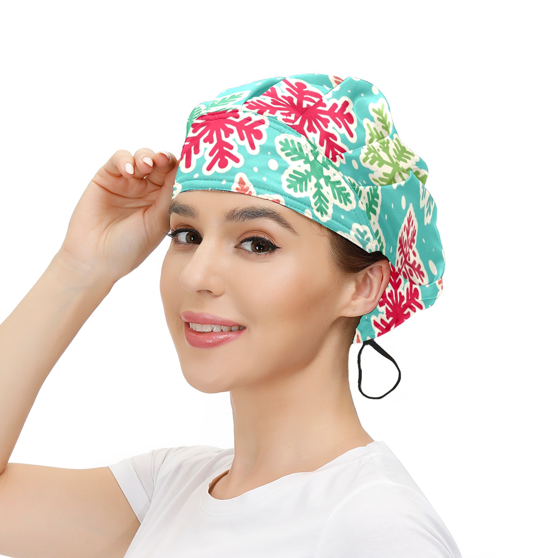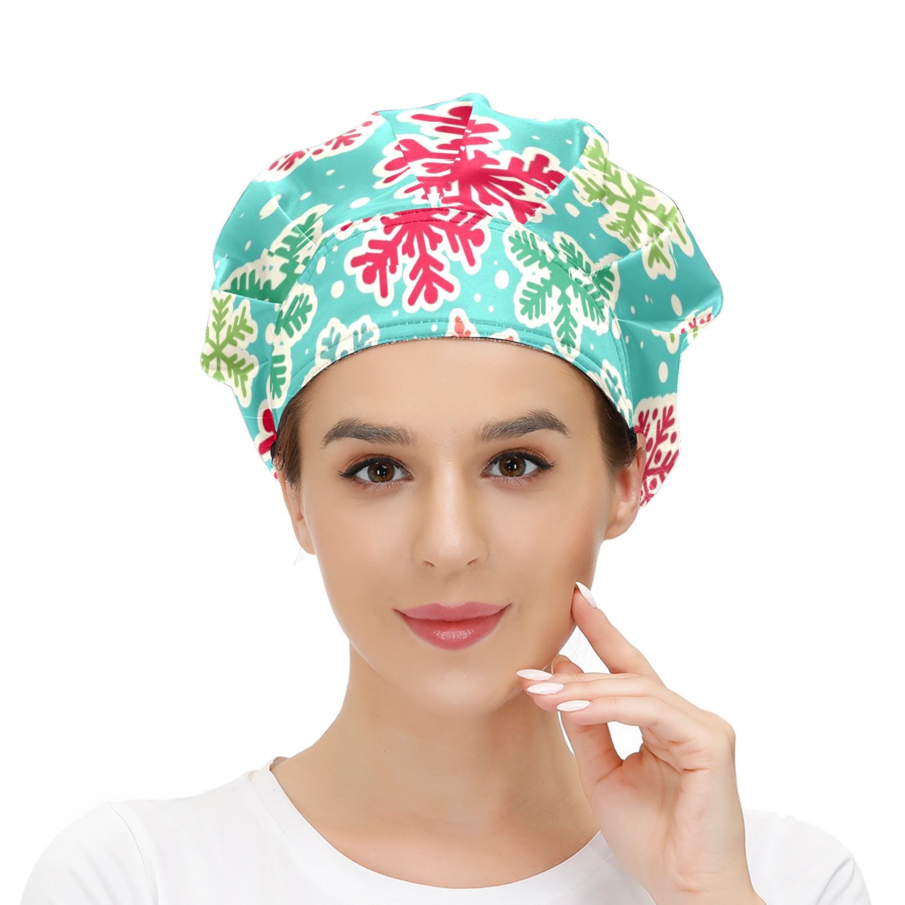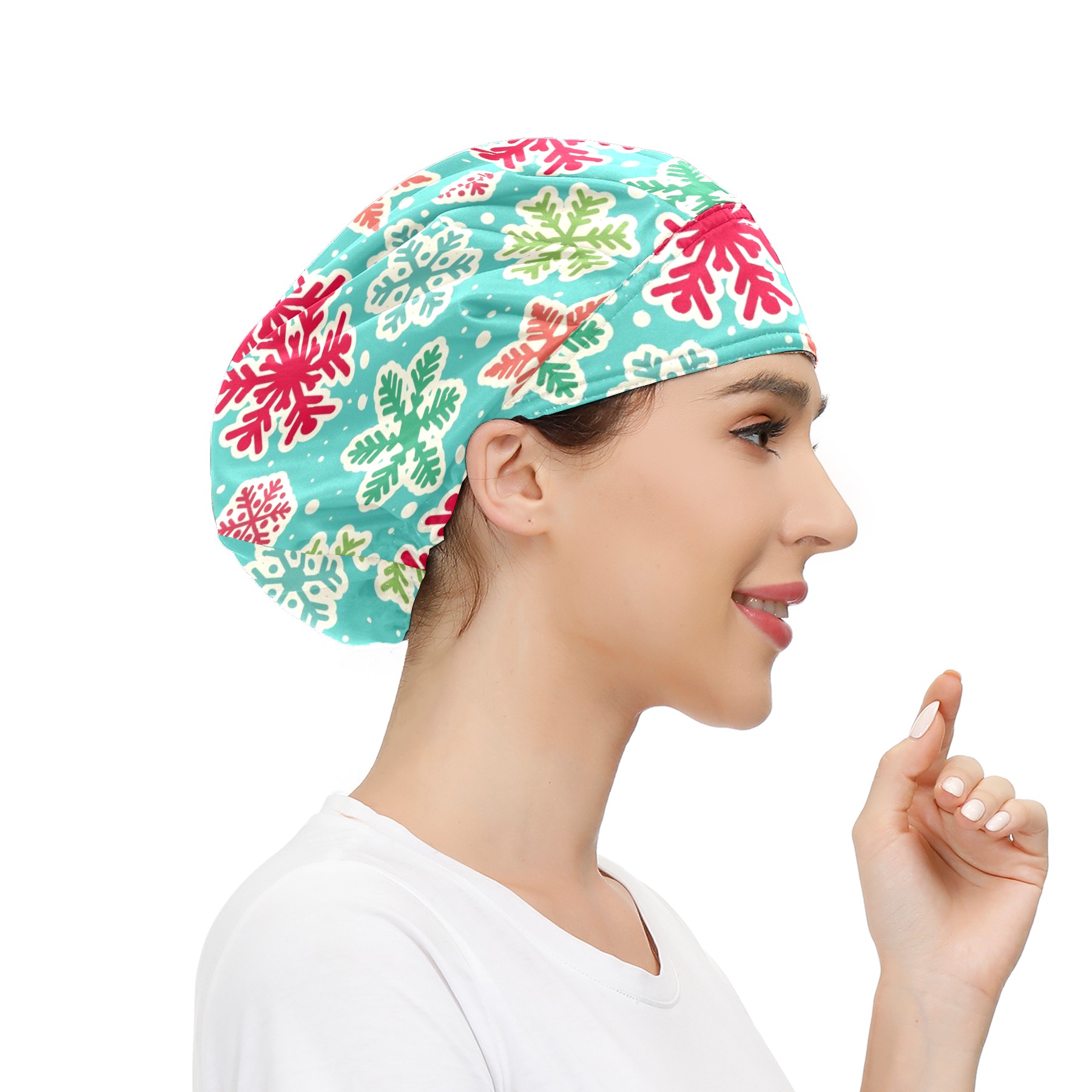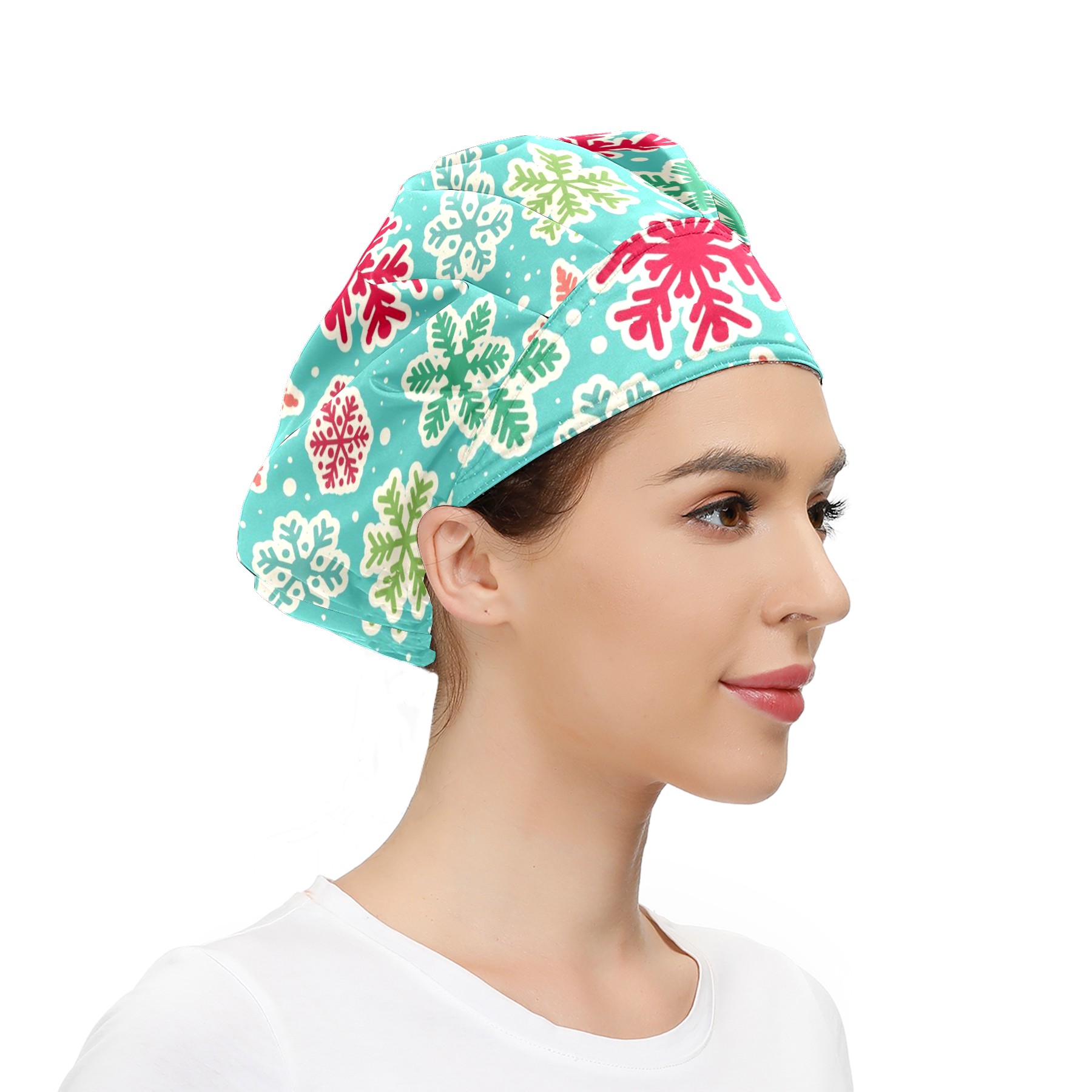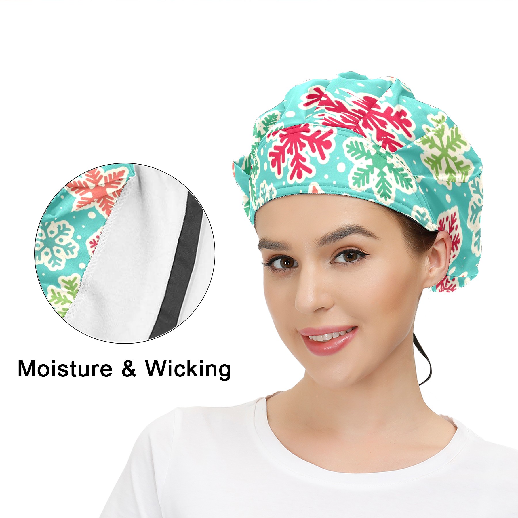 Adjustable Working Caps,Christmas Snowflakes Elastic Bouffant hat With Sweatband, Hair Covers Head Cover Turban Cap for Women/Men