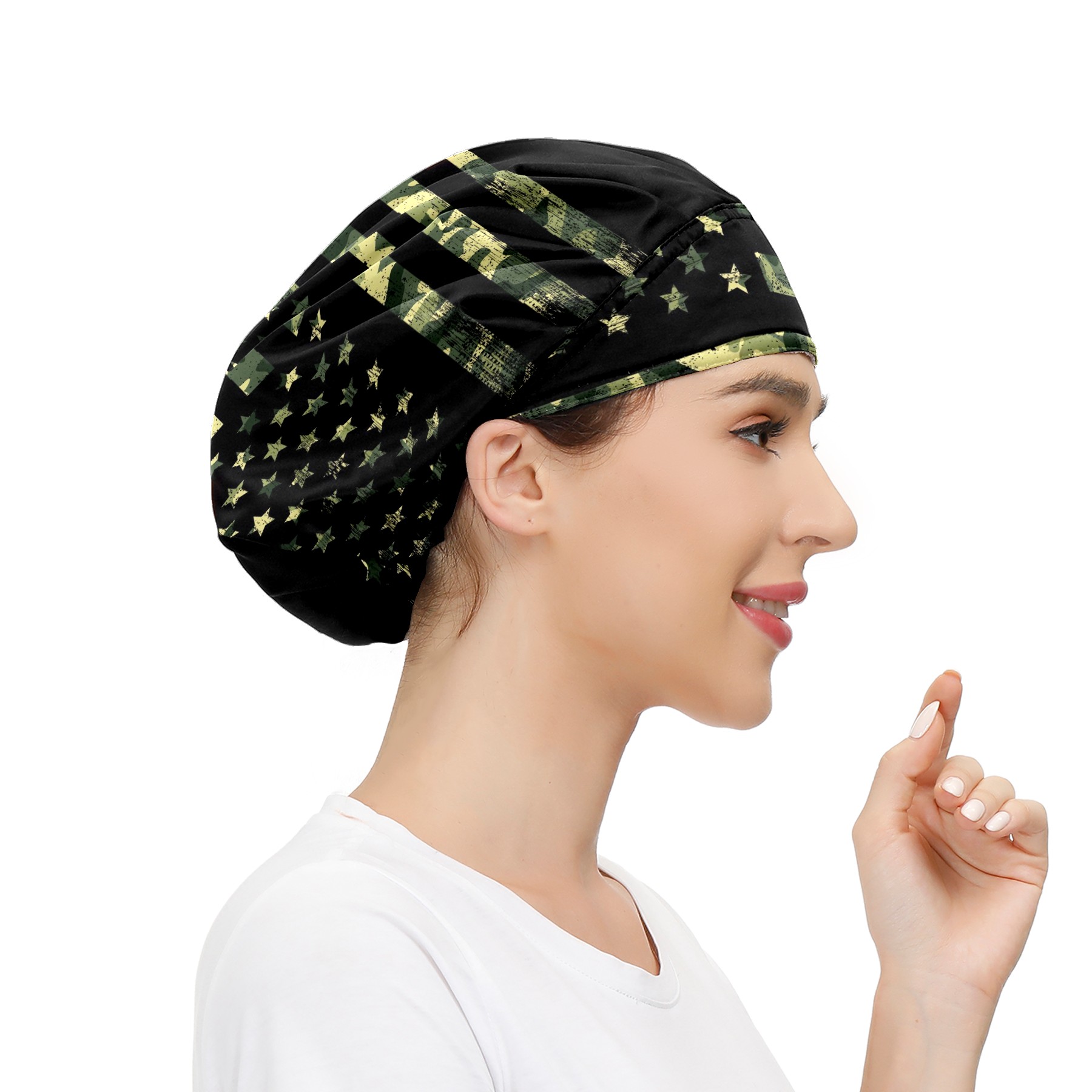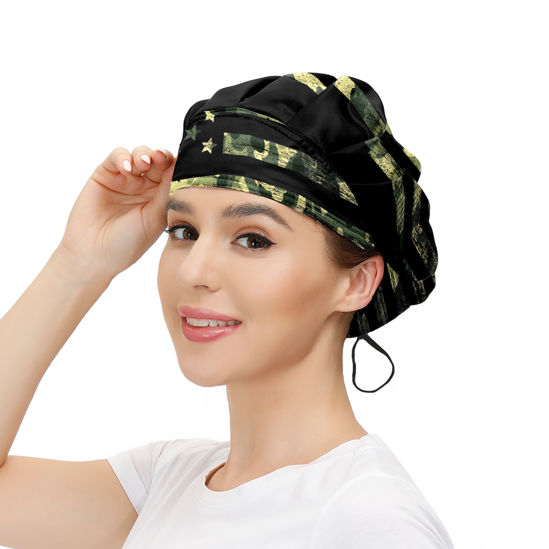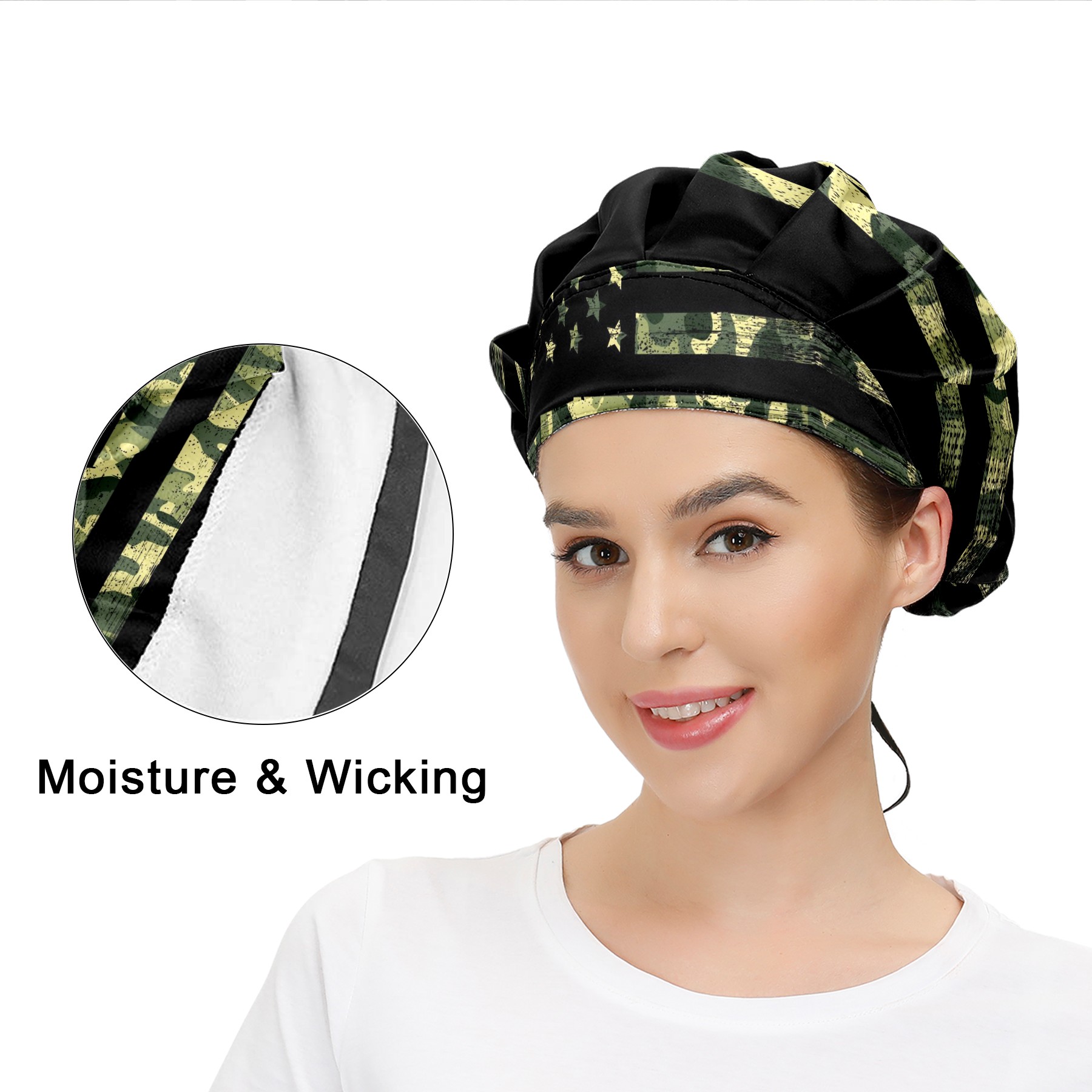 Adjustable Working Caps,American Flag Elastic Bouffant hat With Sweatband, Hair Covers Head Cover Turban Cap for Women/Men