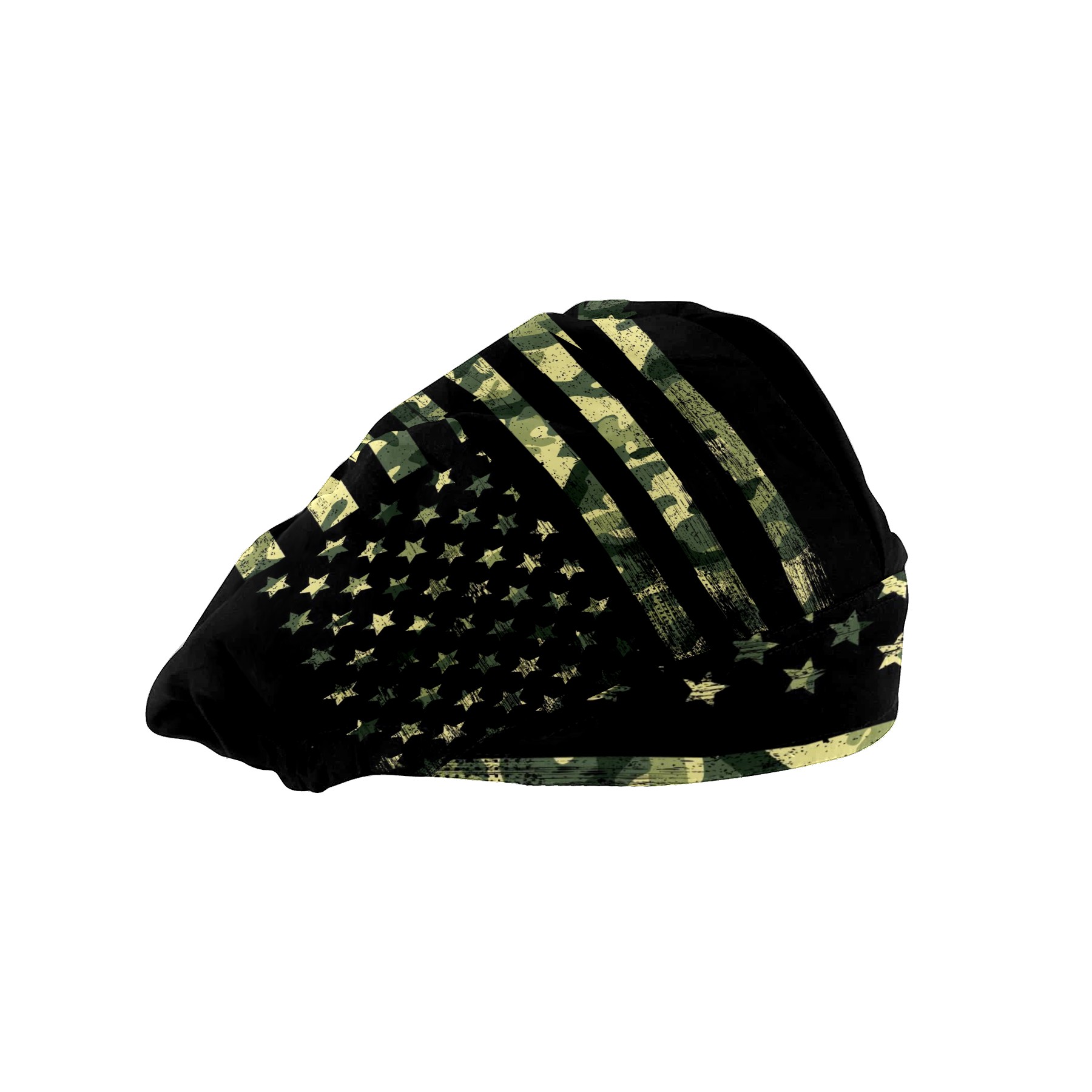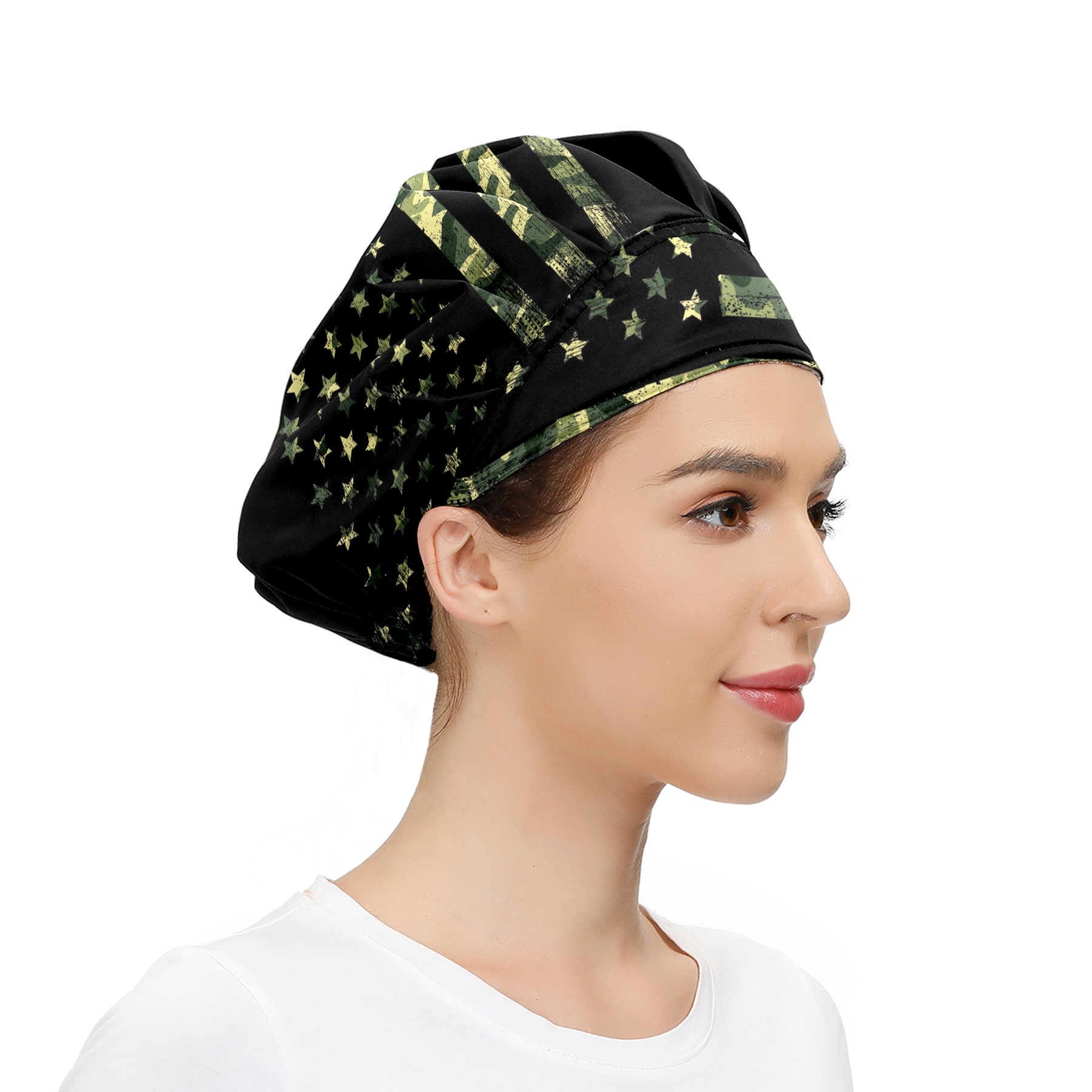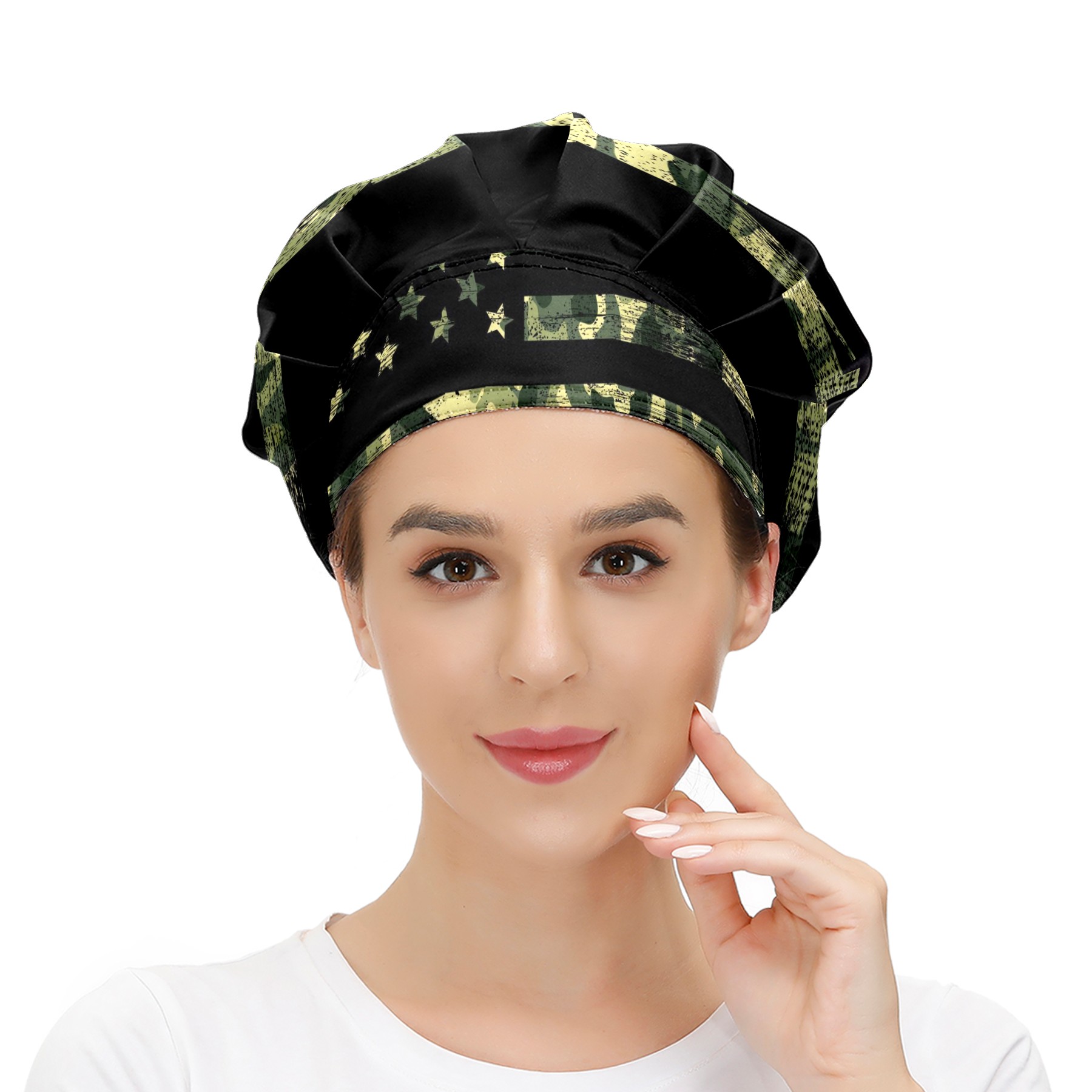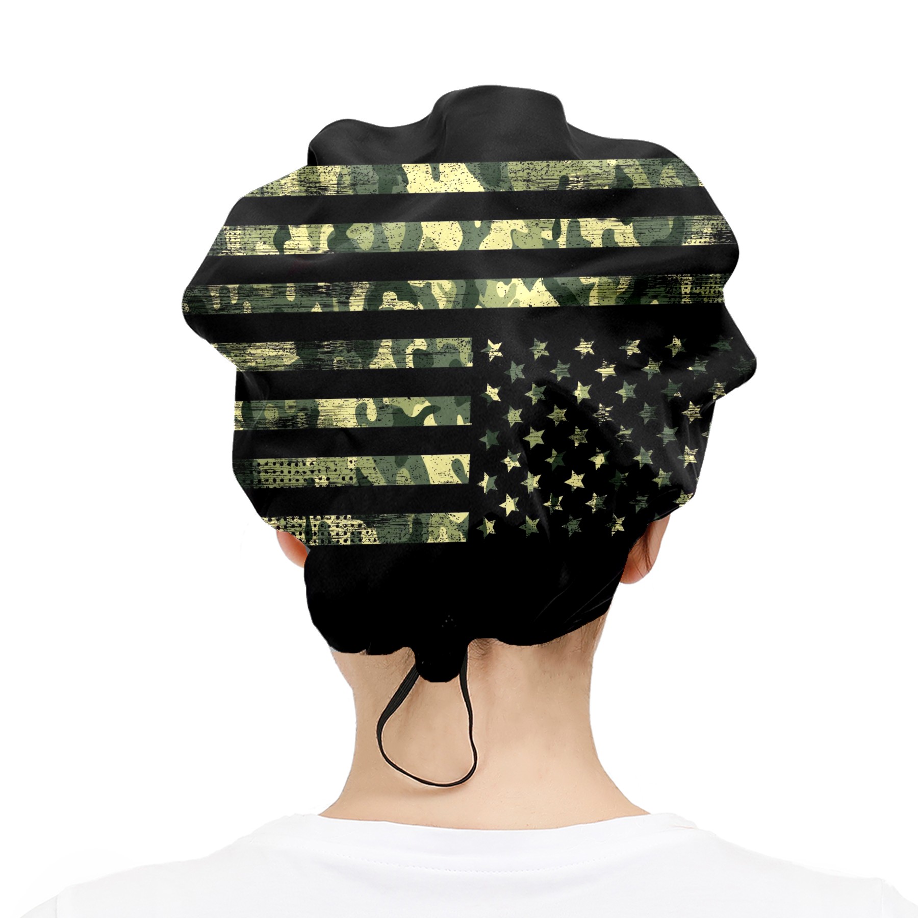 Adjustable Working Caps,American Flag Elastic Bouffant hat With Sweatband, Hair Covers Head Cover Turban Cap for Women/Men