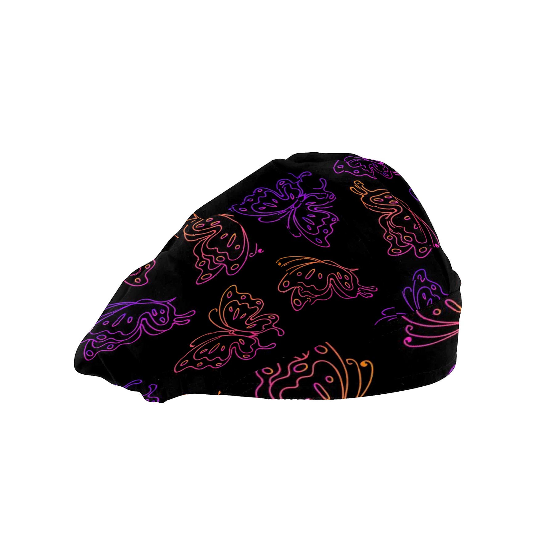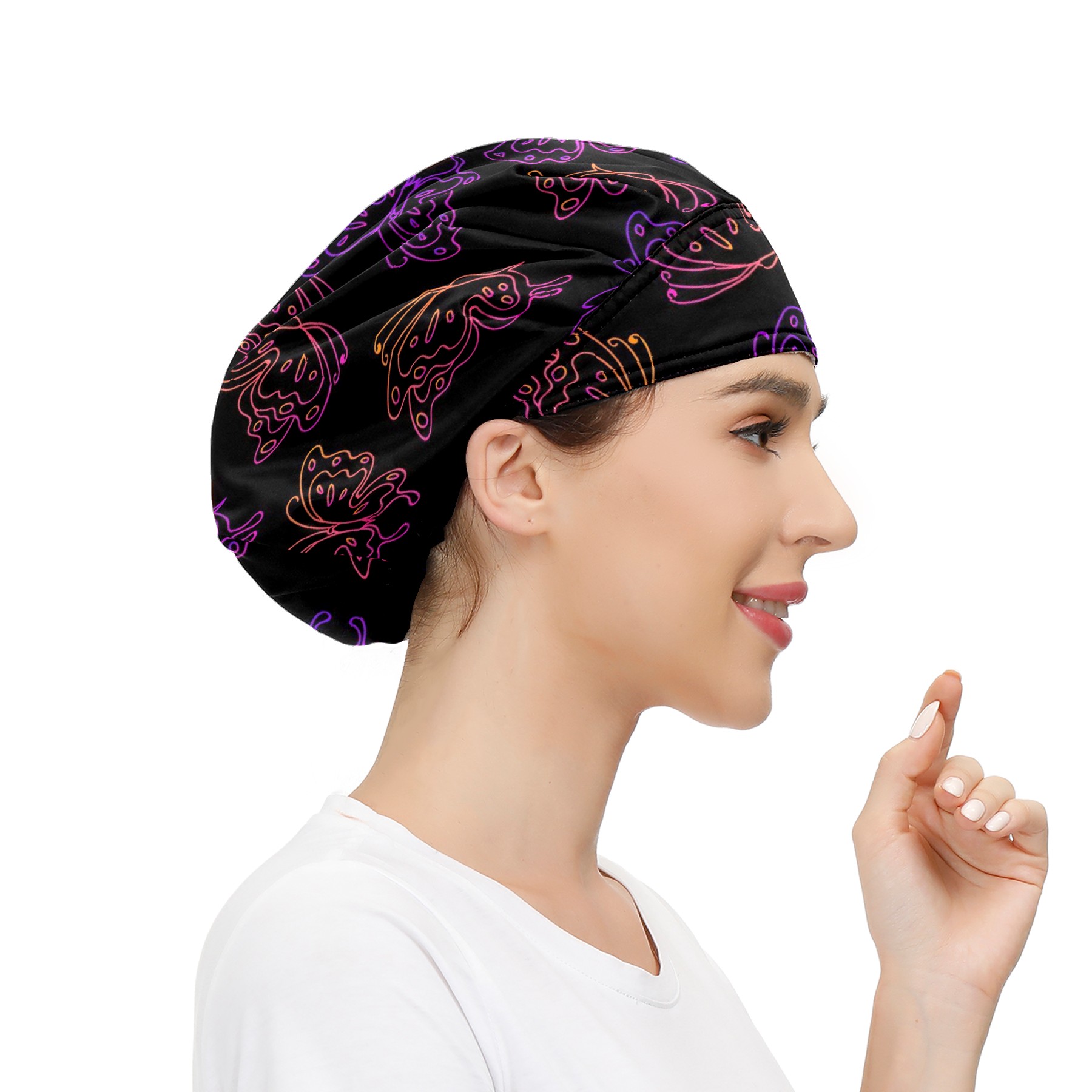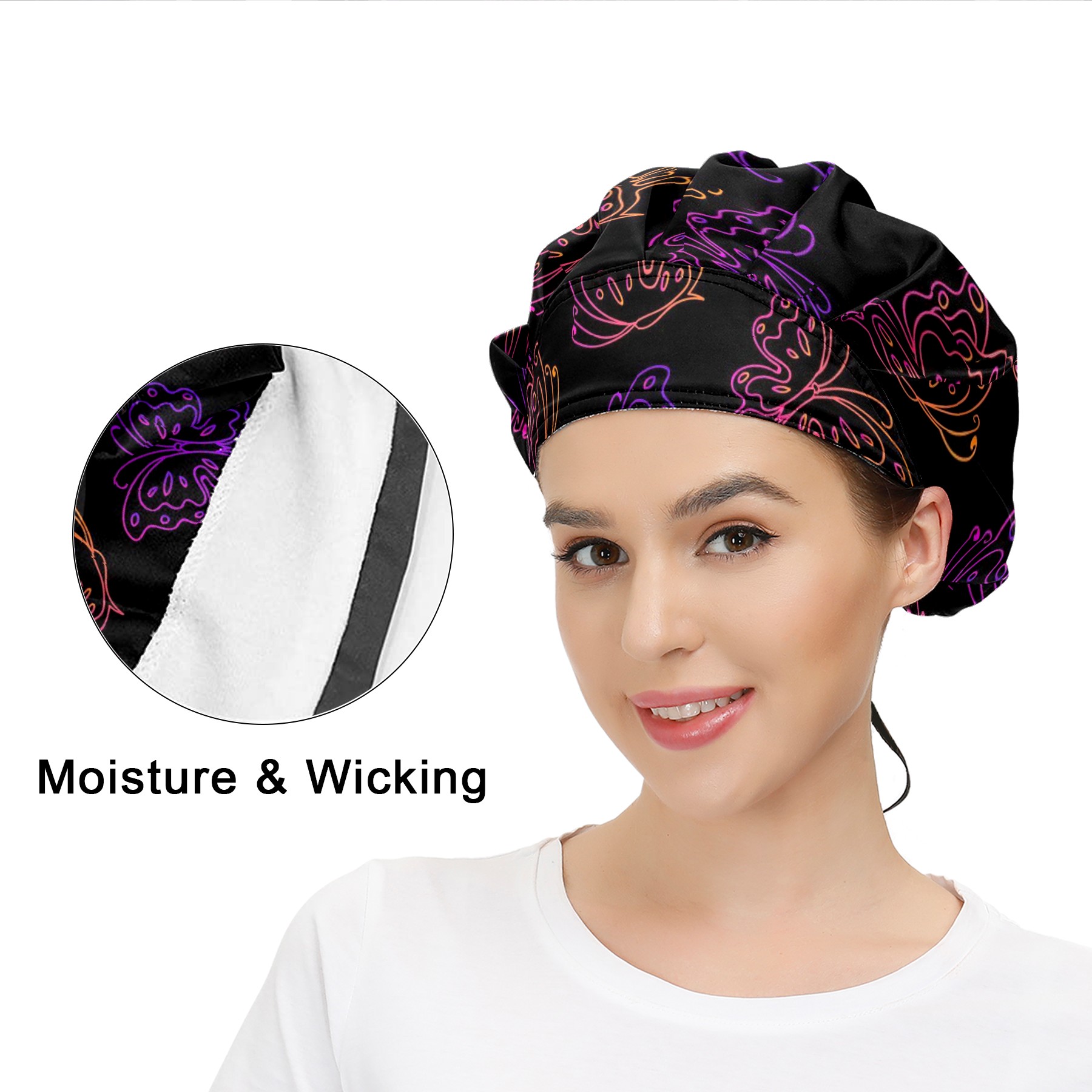 Adjustable Working Caps,Butterfly Black Background Elastic Bouffant hat With Sweatband, Hair Covers Head Cover Turban Cap for Women/Men