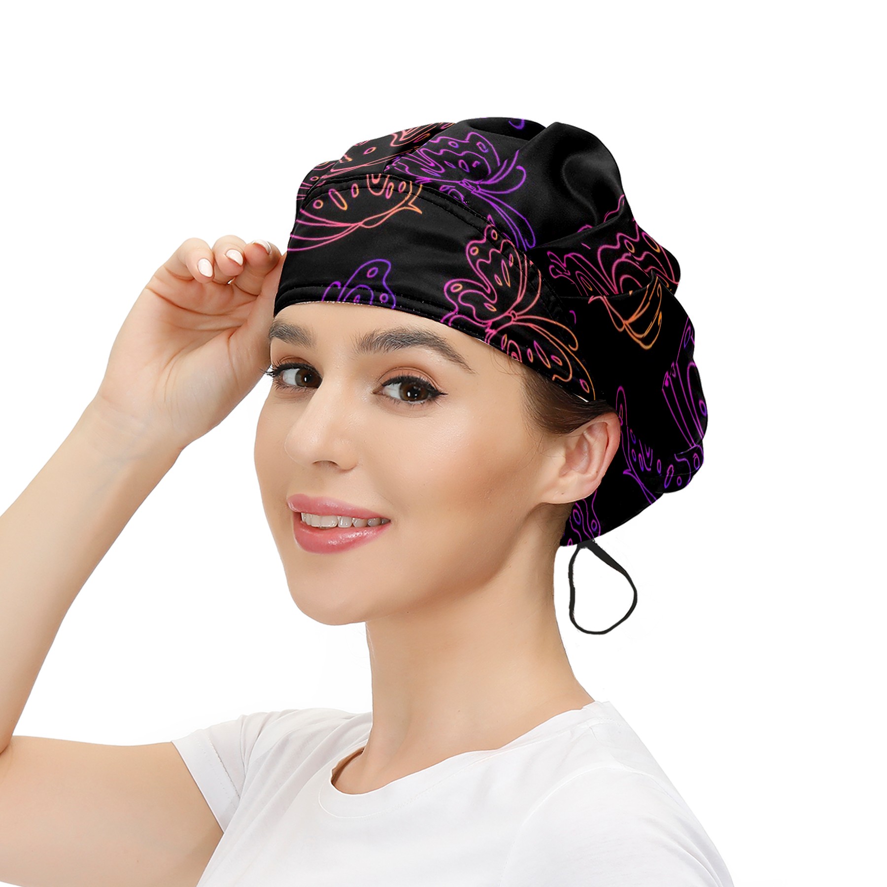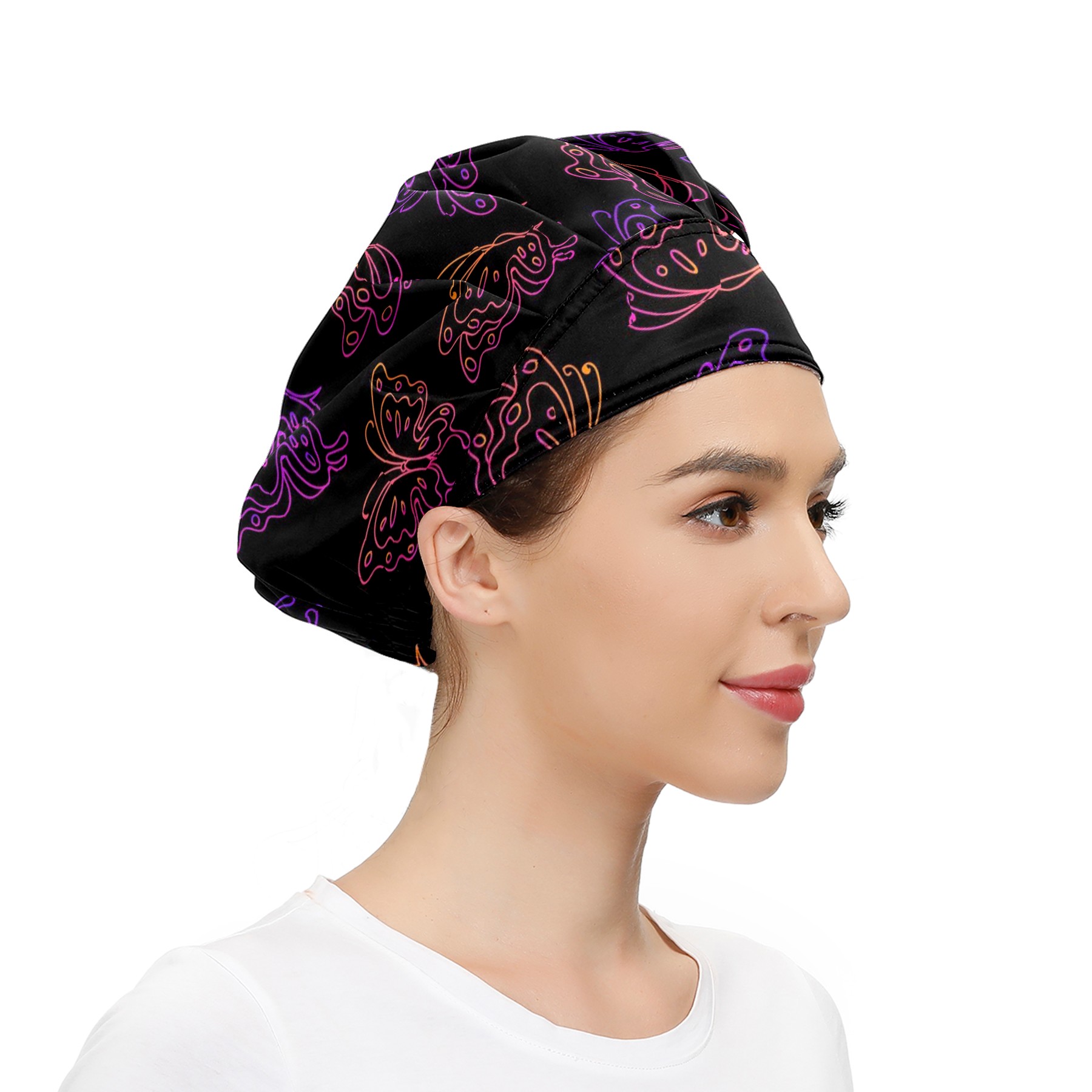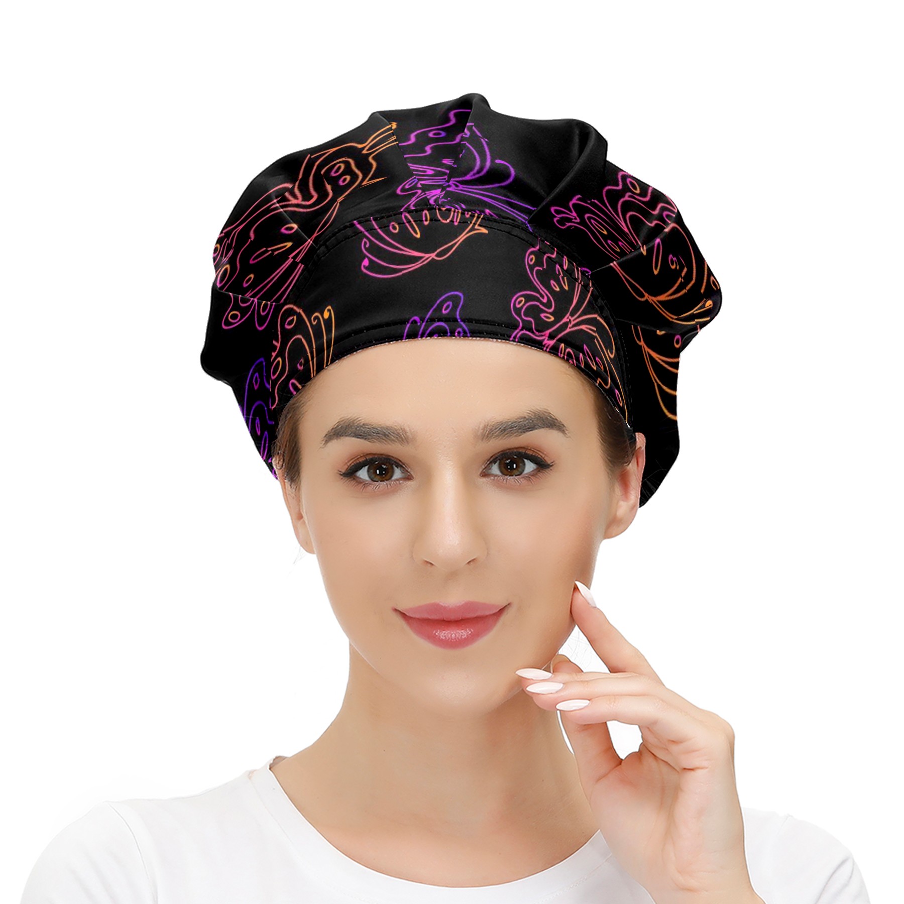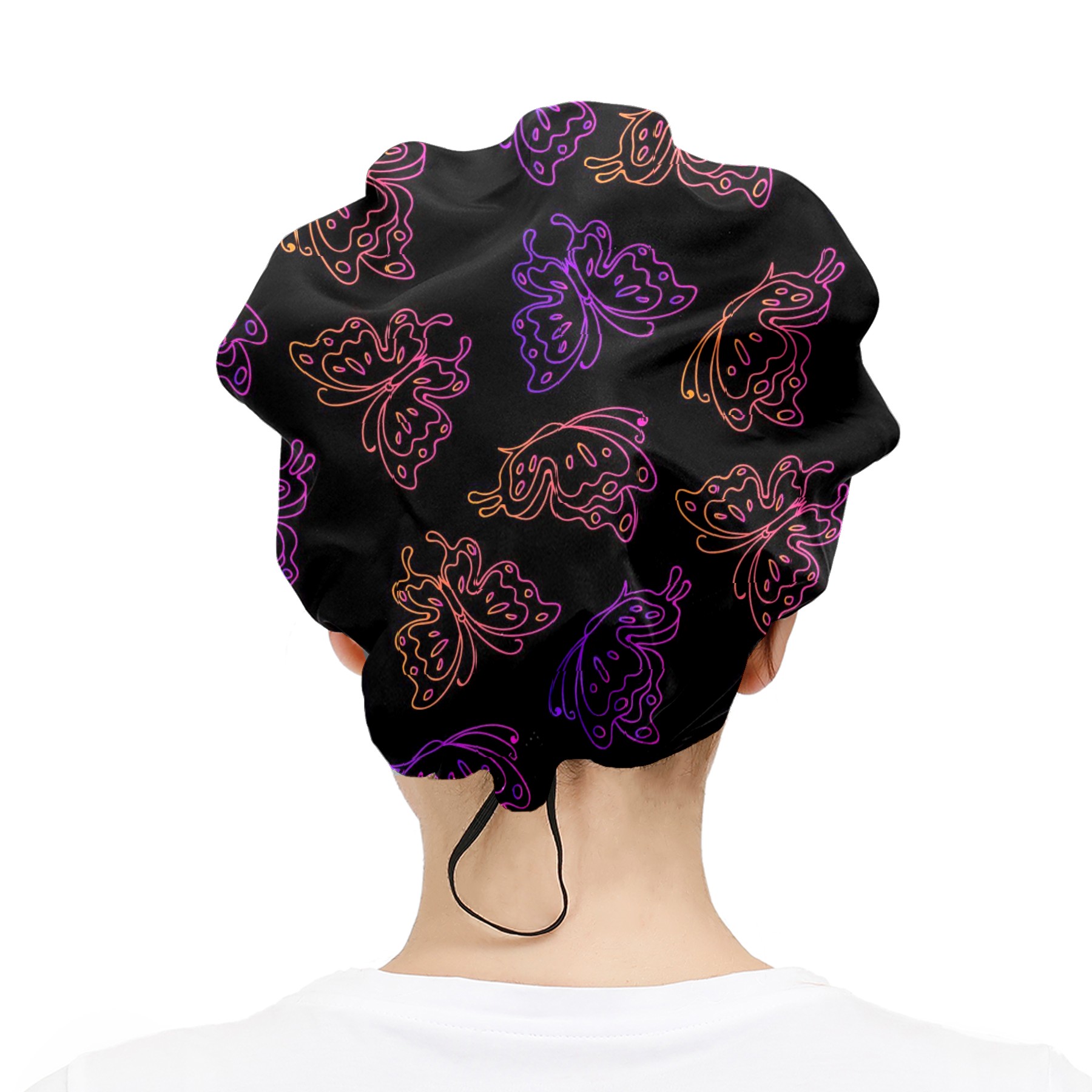 Adjustable Working Caps,Butterfly Black Background Elastic Bouffant hat With Sweatband, Hair Covers Head Cover Turban Cap for Women/Men
