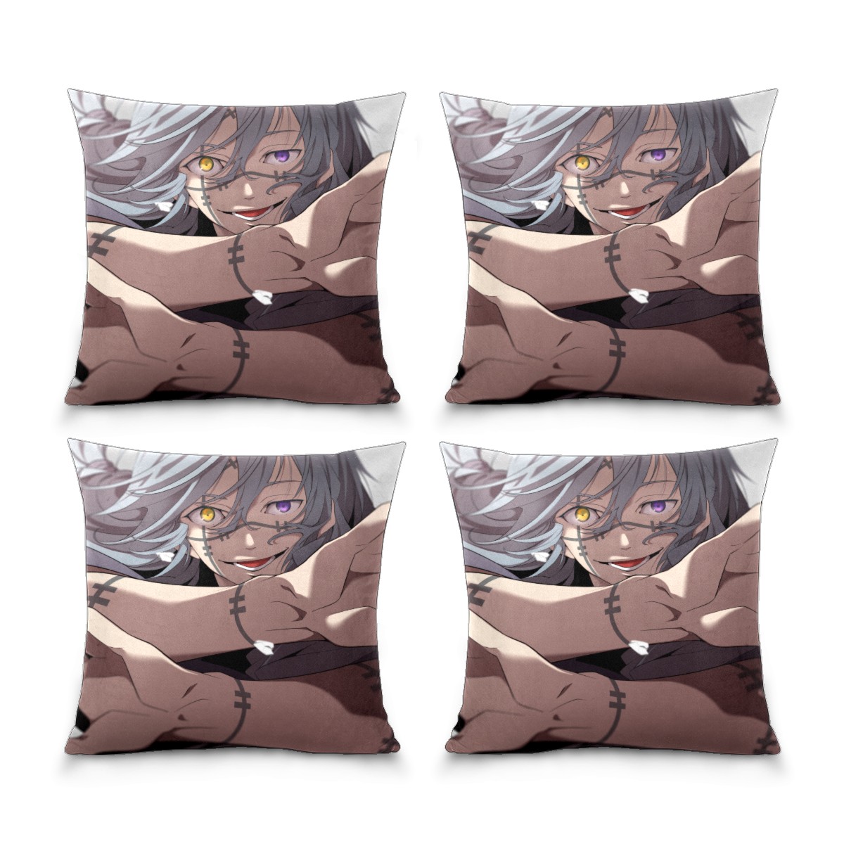 Square Throw Pillow Cases Pack of 4 Jujutsu Kaisen Double Sided Printed Decorative Pillow Cover 16 x 16 inch Cushion Case Pillow Decor for Couch Sofa Bedroom Car 3 Sizes Pillow Cover