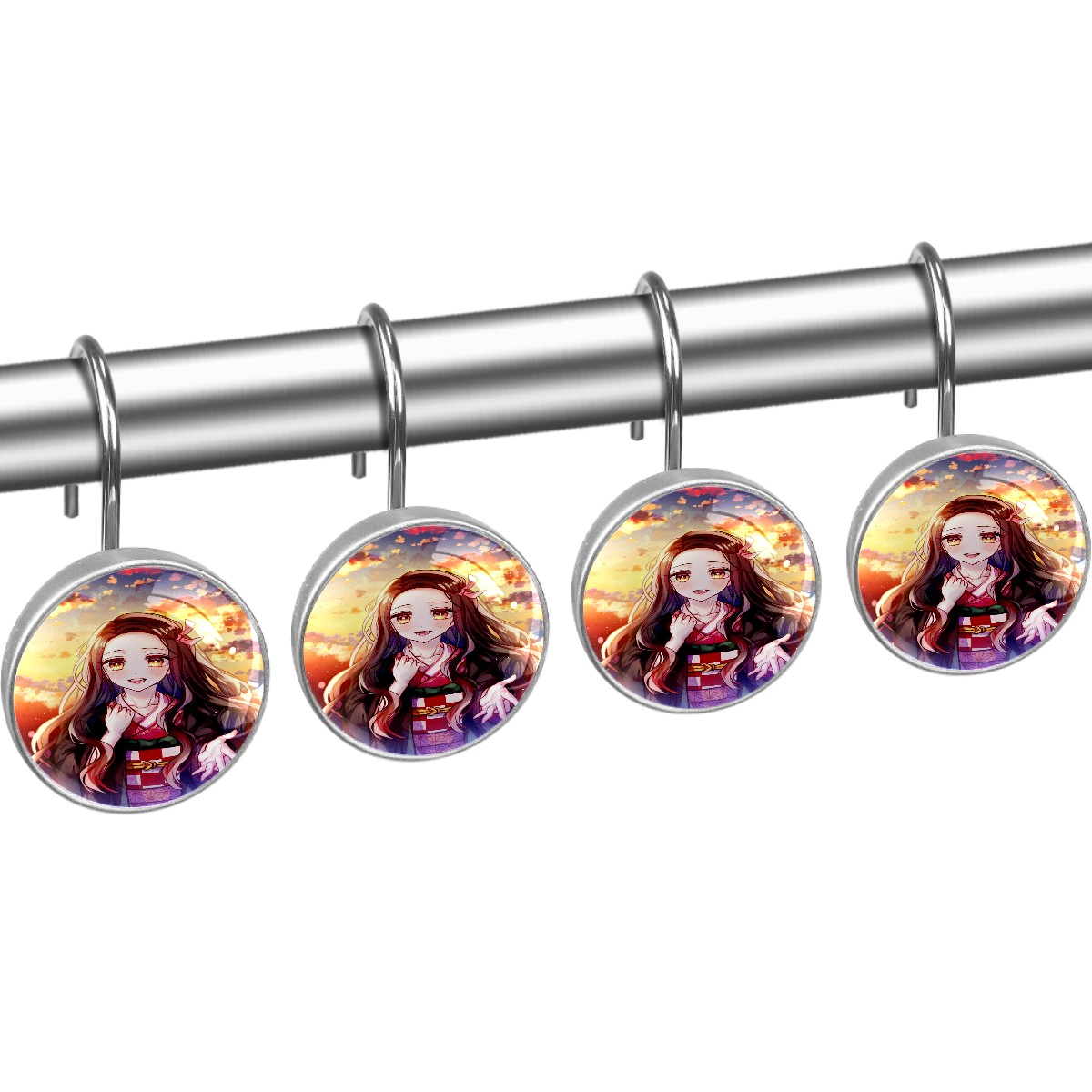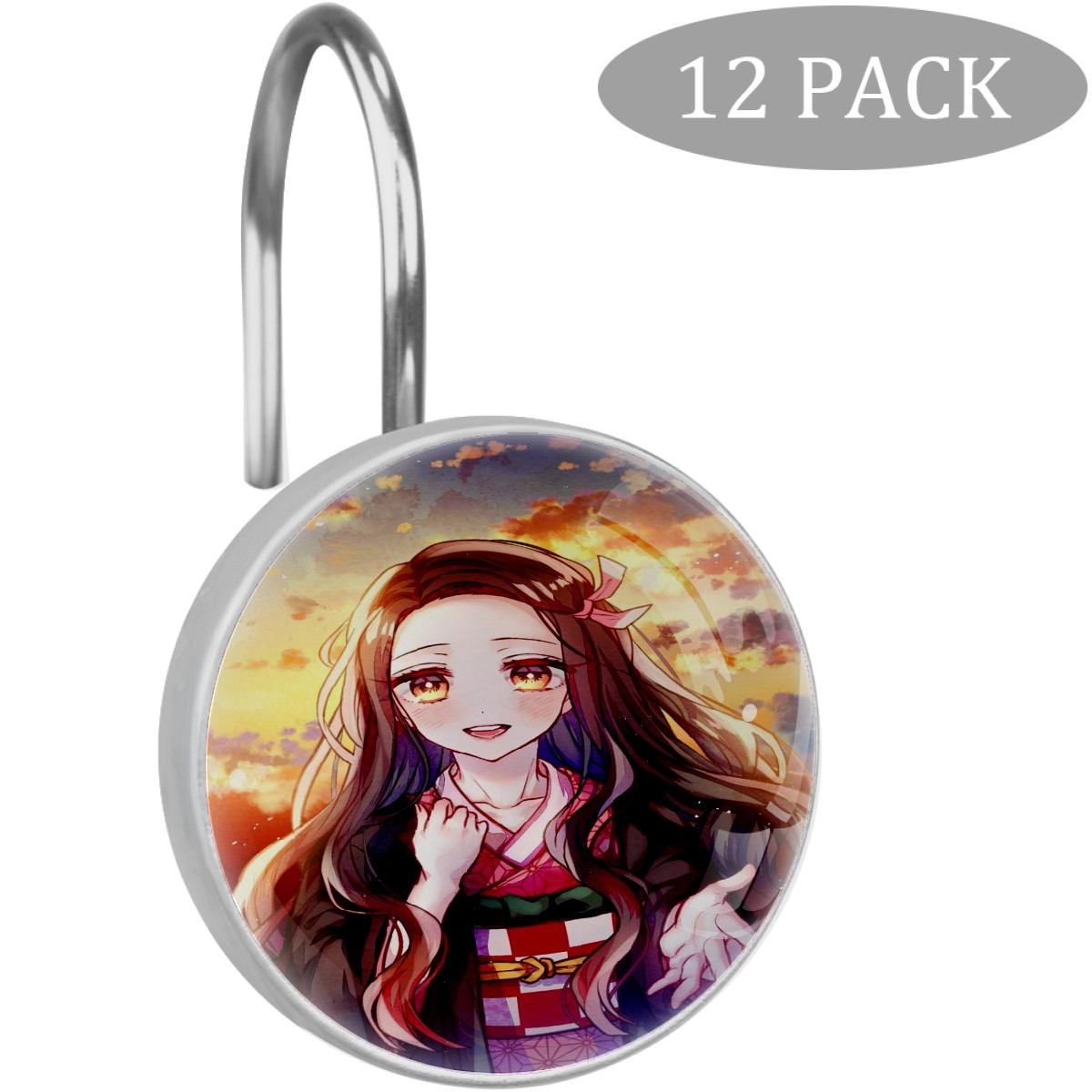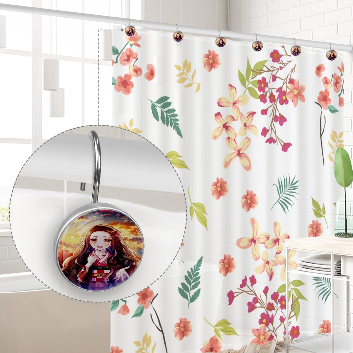 Lovely Anime Demon Slayer Kamado Nezuko Shower Curtain Hooks,12PCS Diamond Shaped Shower Curtain Rings for Shower Rods Curtain and Liner Home Decor