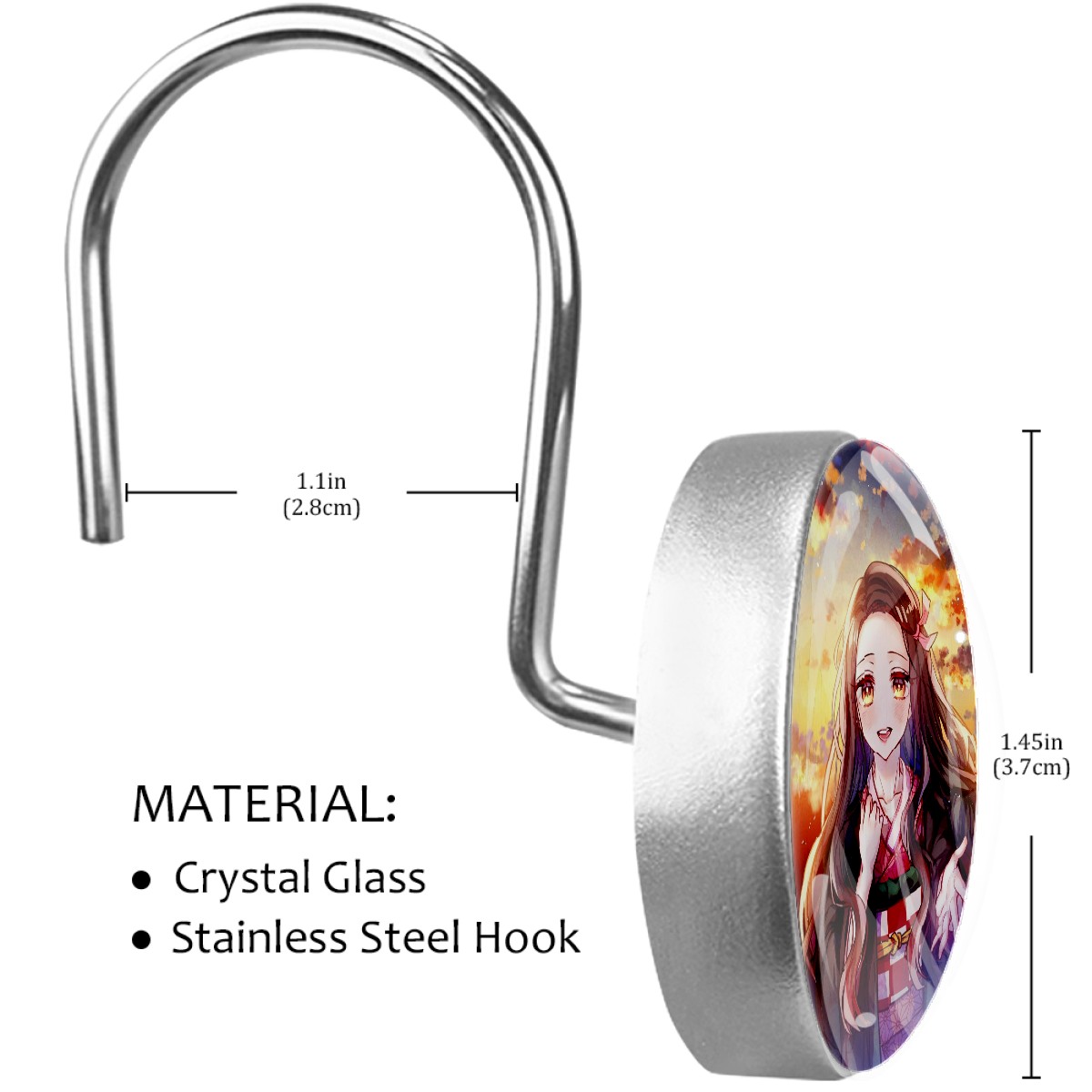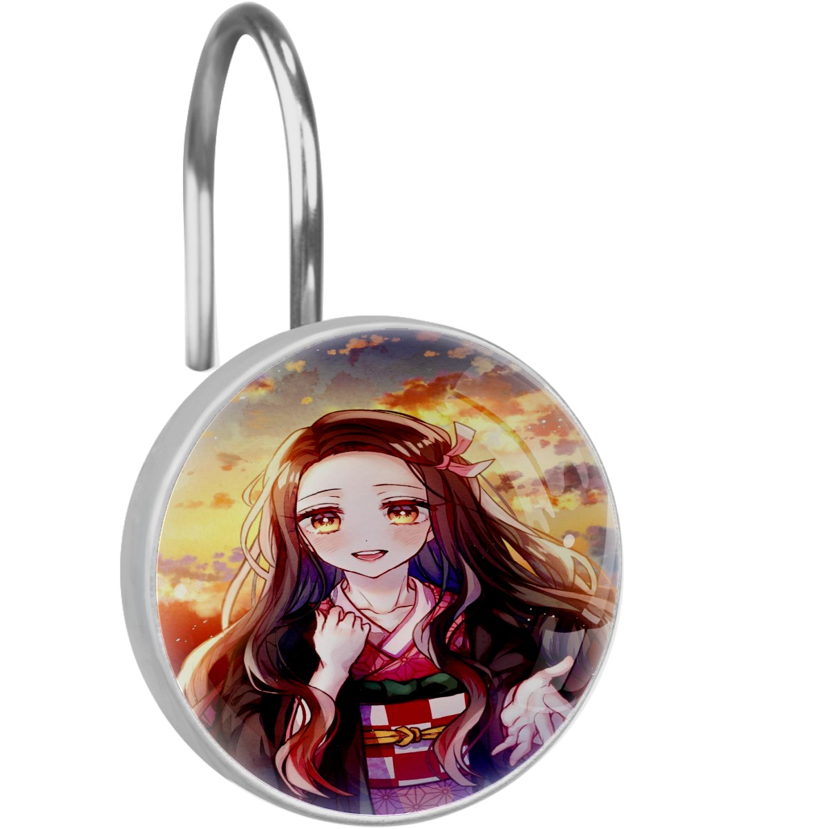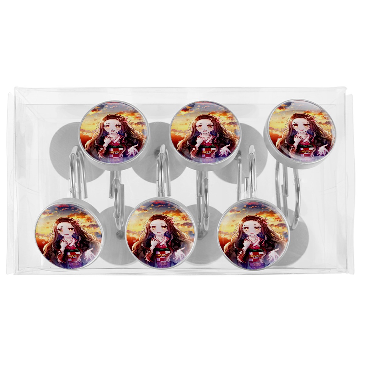 Lovely Anime Demon Slayer Kamado Nezuko Shower Curtain Hooks,12PCS Diamond Shaped Shower Curtain Rings for Shower Rods Curtain and Liner Home Decor