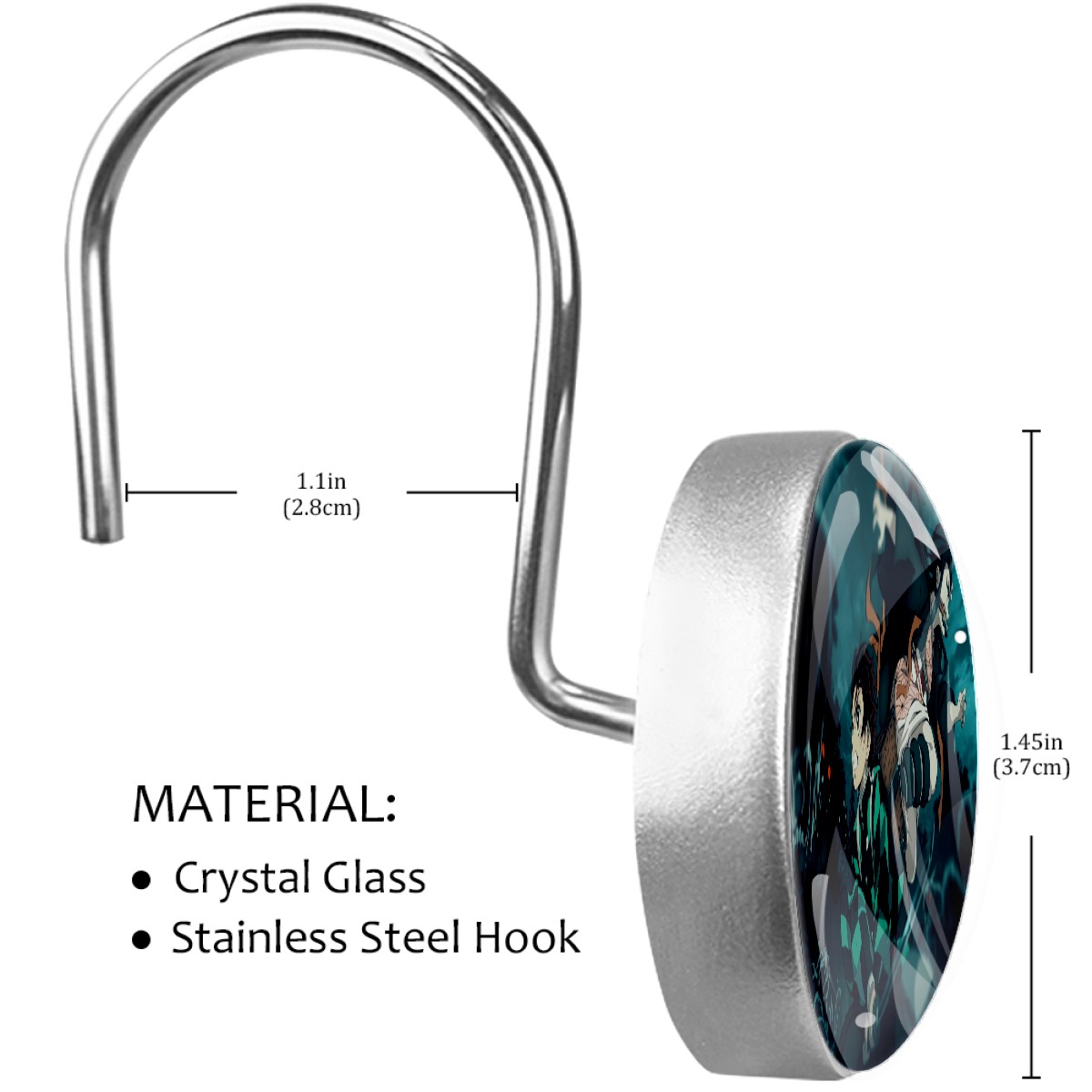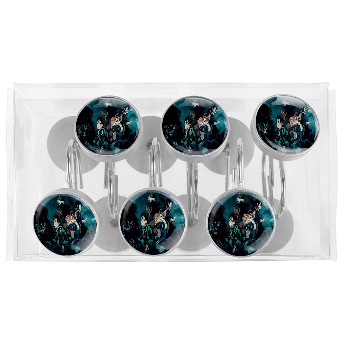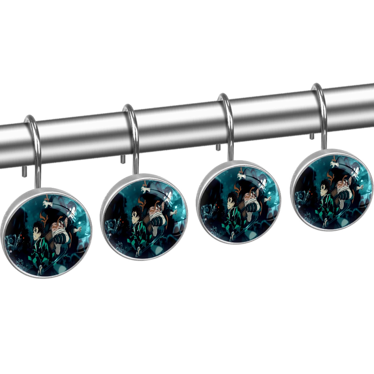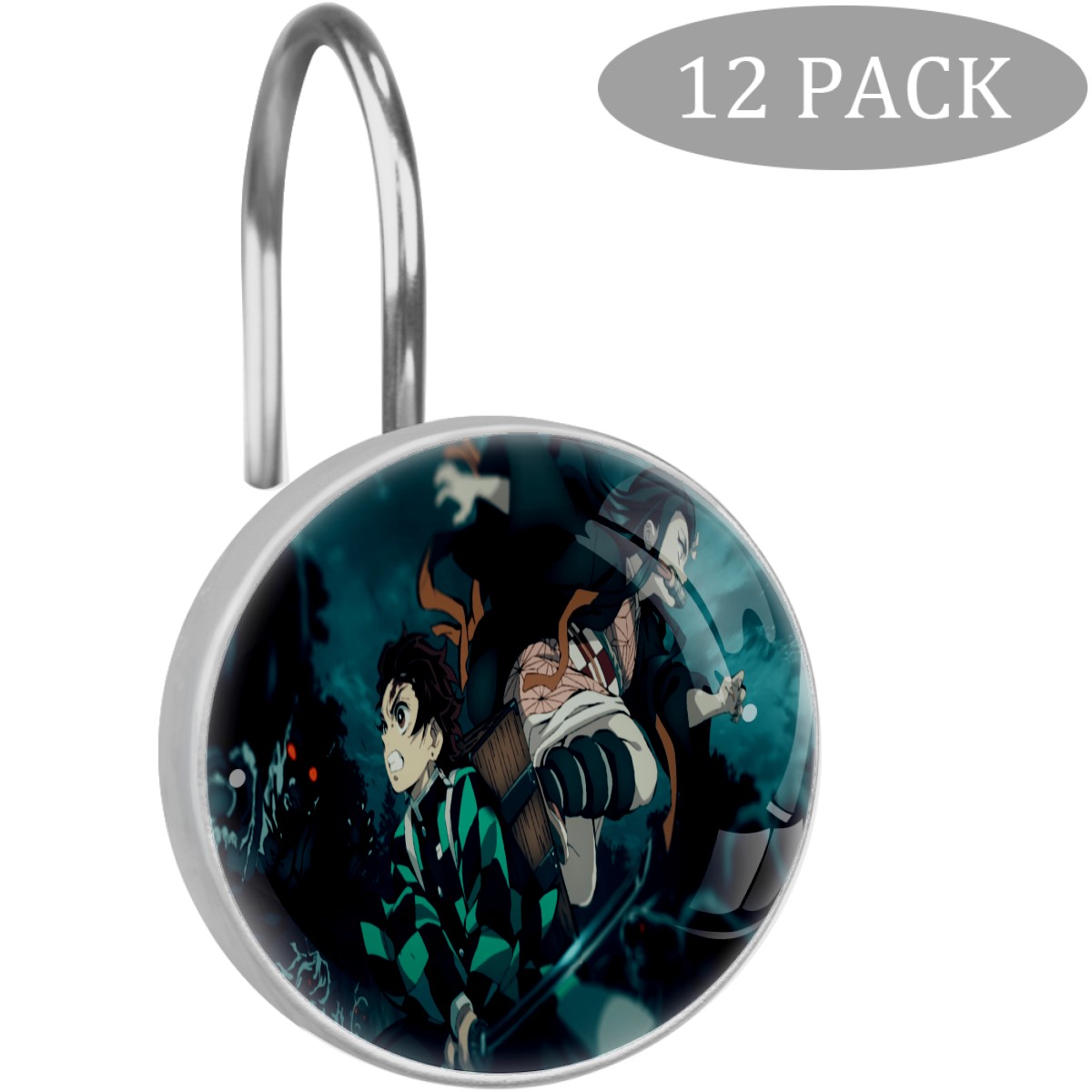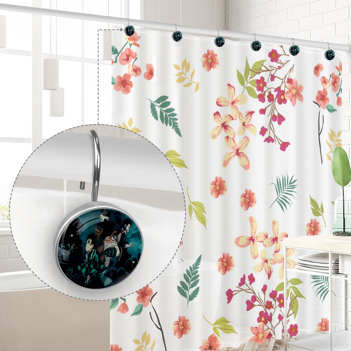Demon Slayer Kamado Tanjirou Nezuko Shower Curtain Hooks,12PCS Diamond Shaped Shower Curtain Rings for Shower Rods Curtain and Liner Home Decor