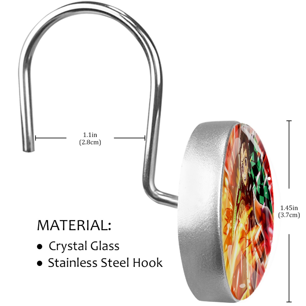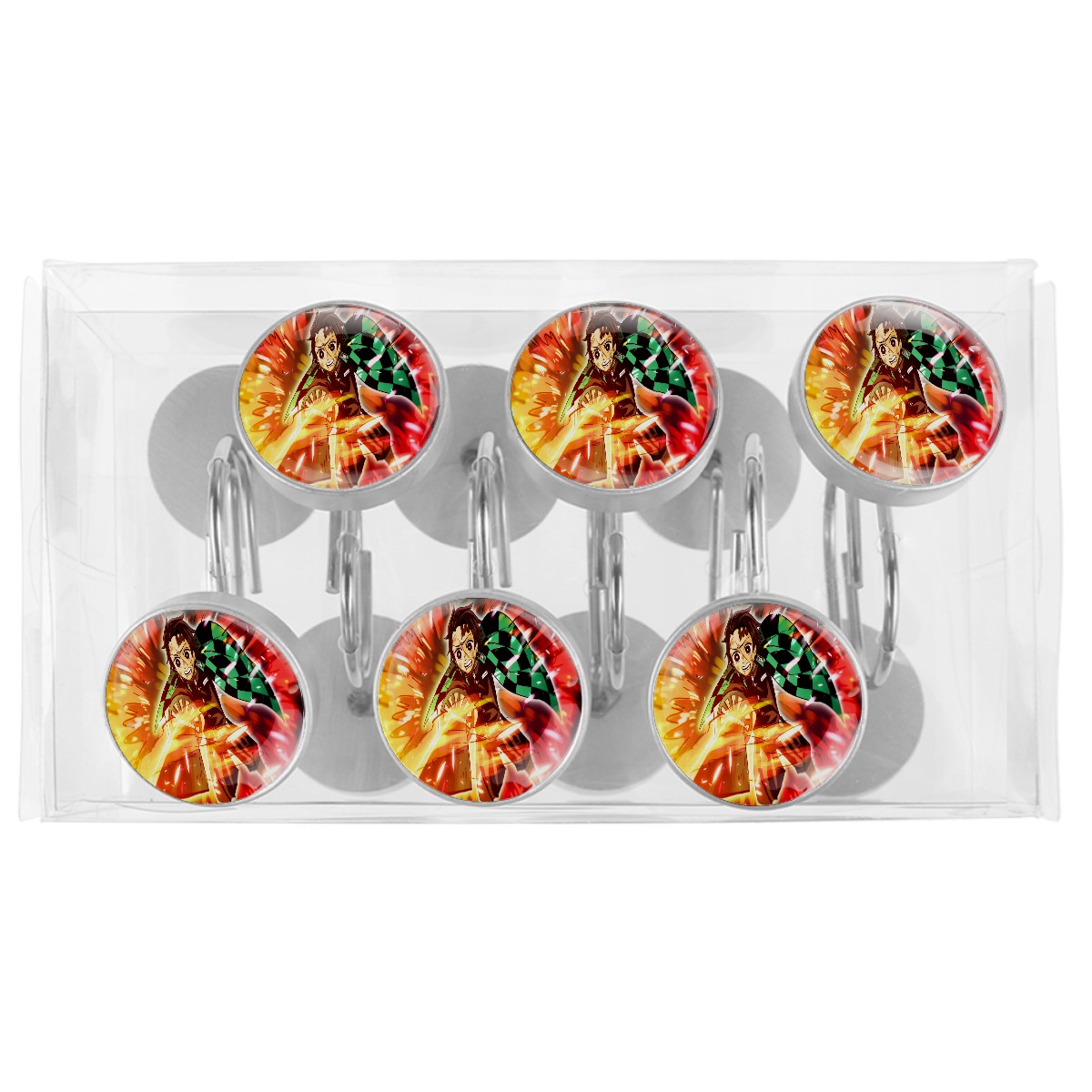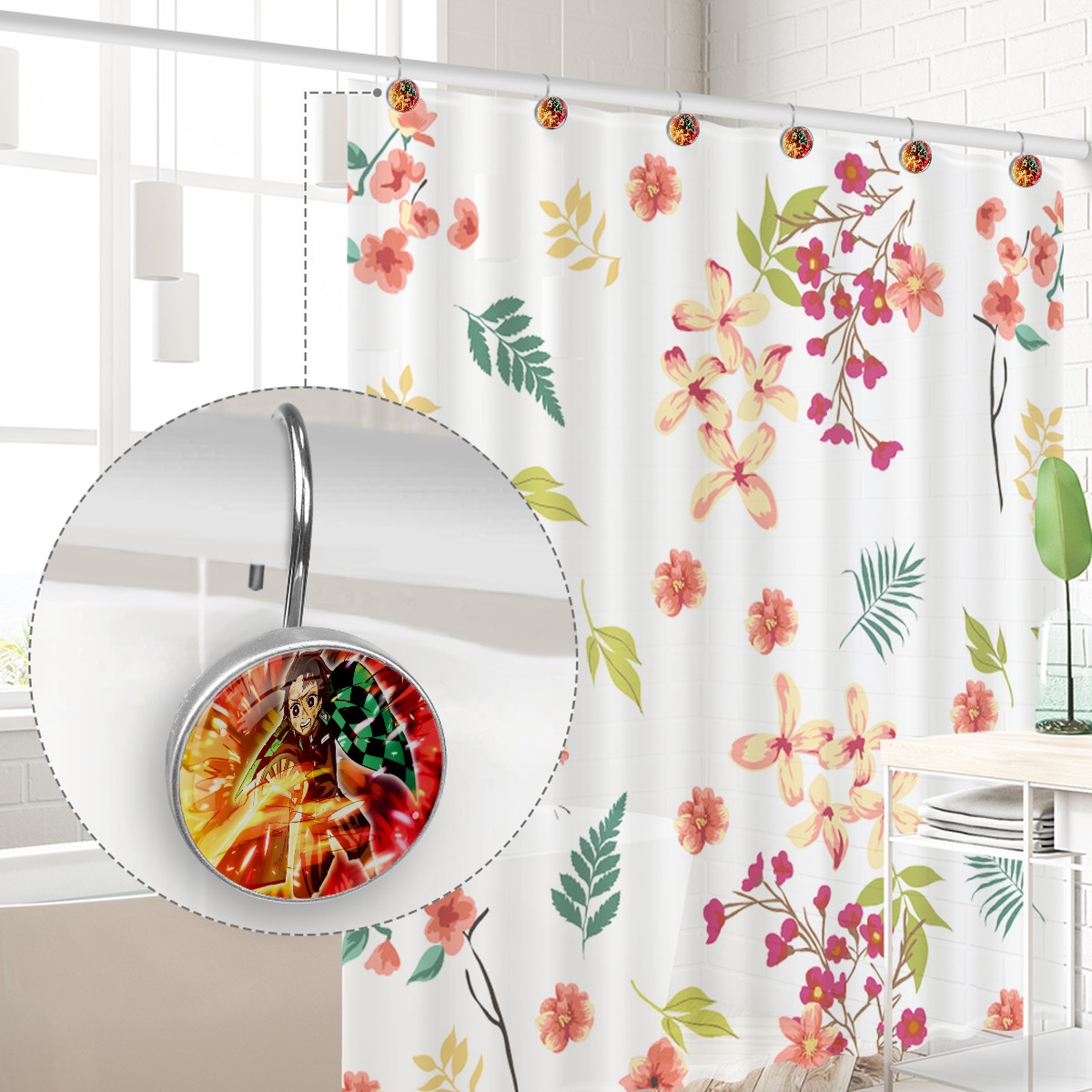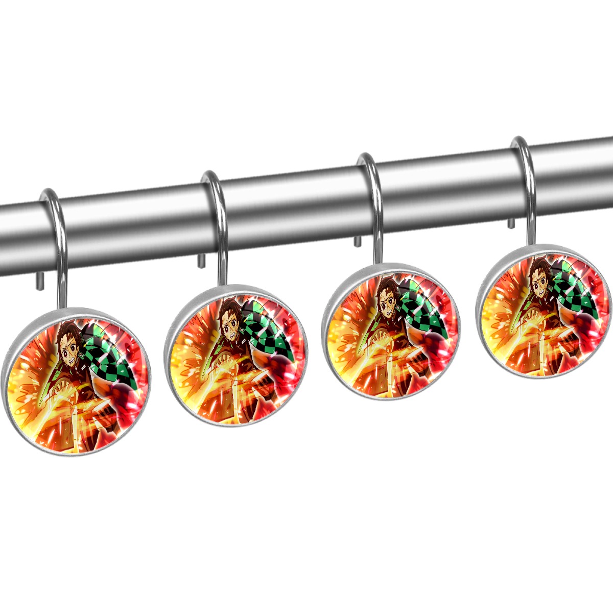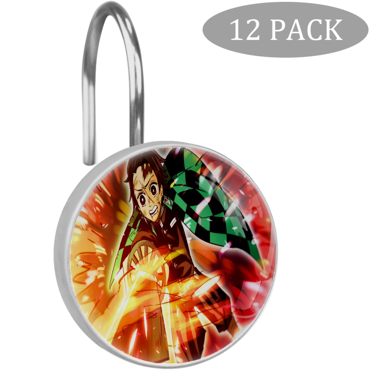 Demon Slayer Kamado Tanjirou Shower Curtain Hooks,12PCS Diamond Shaped Shower Curtain Rings for Shower Rods Curtain and Liner Home Decor