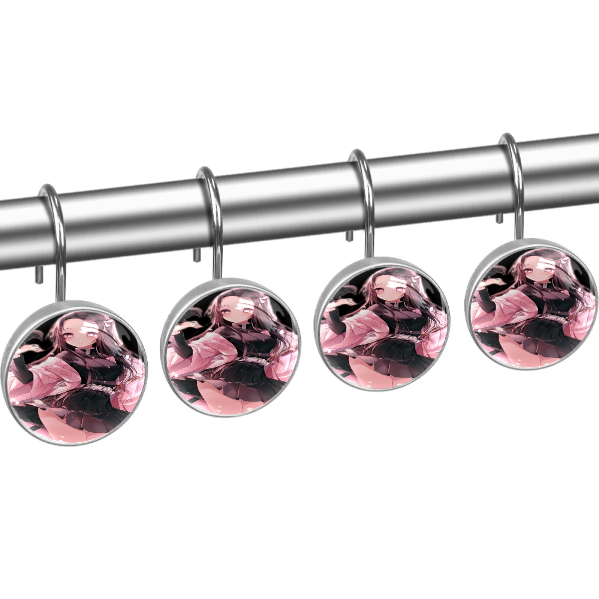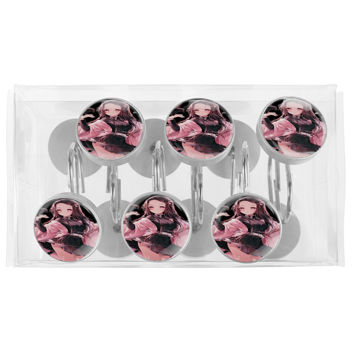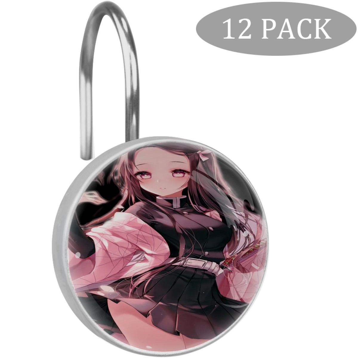 Cute Anime Demon Slayer Kamado Nezuko Shower Curtain Hooks,12PCS Diamond Shaped Shower Curtain Rings for Shower Rods Curtain and Liner Home Decor