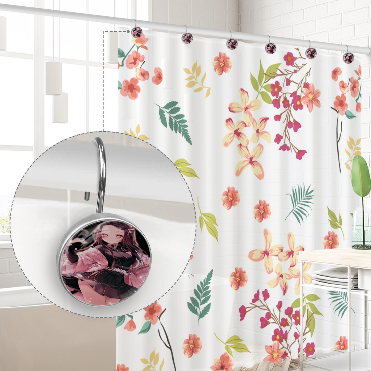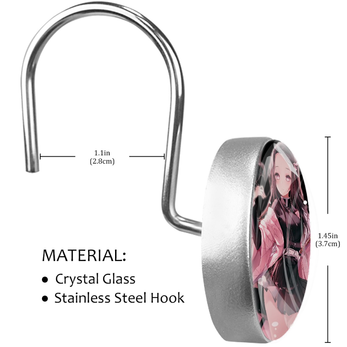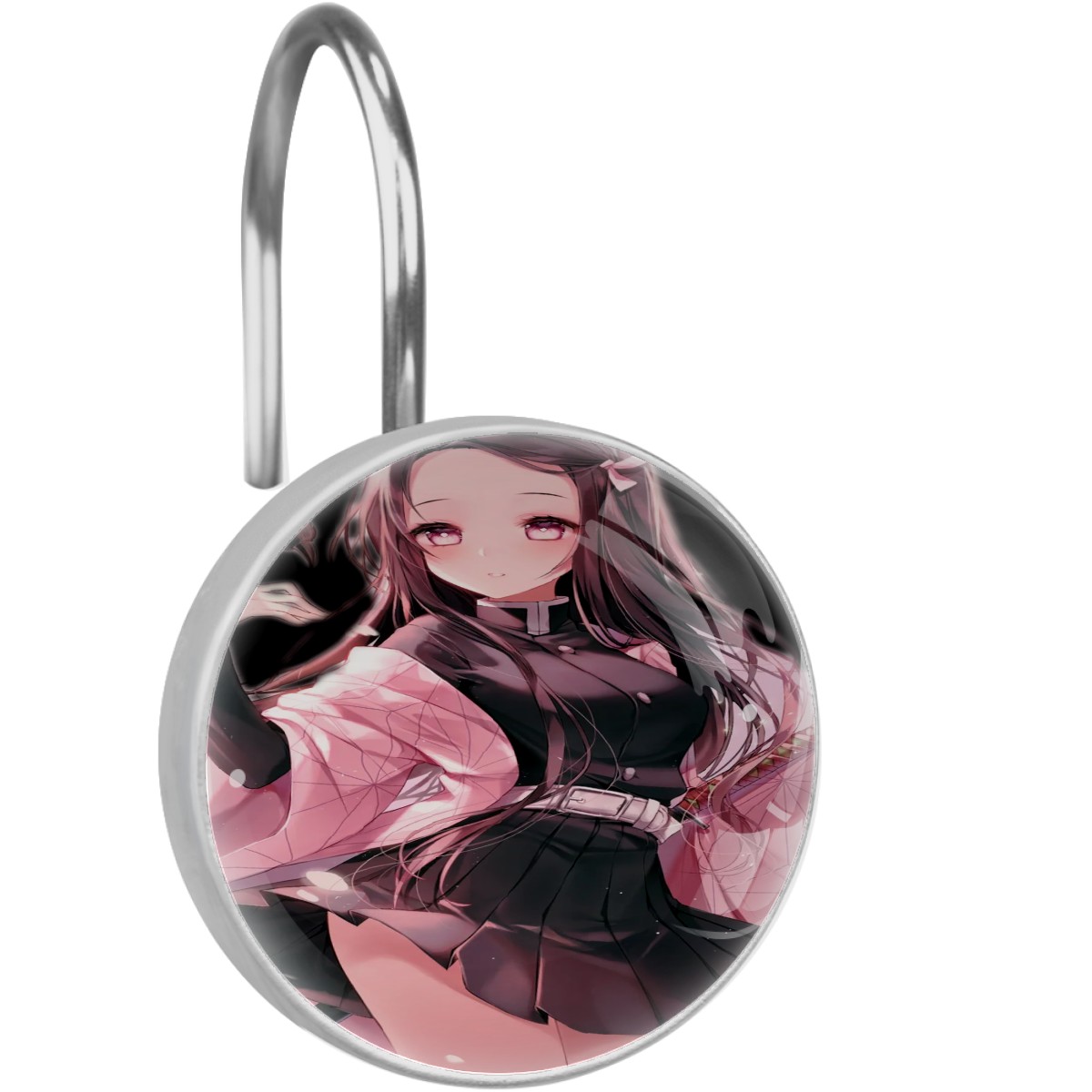 Cute Anime Demon Slayer Kamado Nezuko Shower Curtain Hooks,12PCS Diamond Shaped Shower Curtain Rings for Shower Rods Curtain and Liner Home Decor