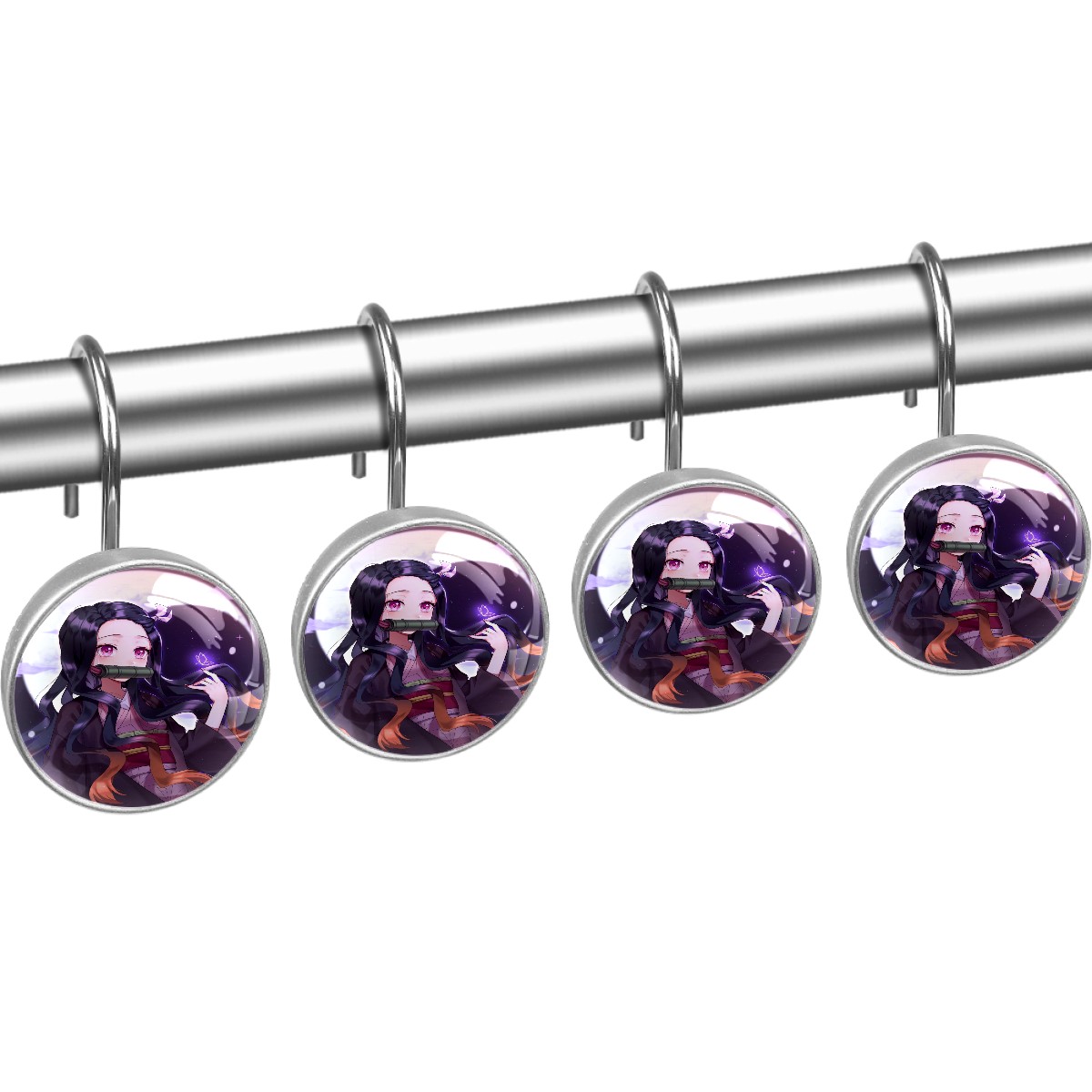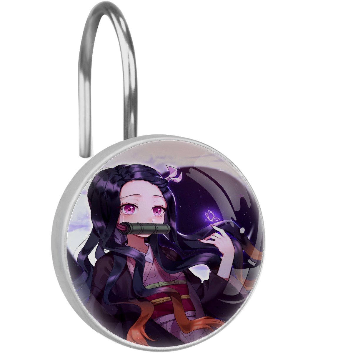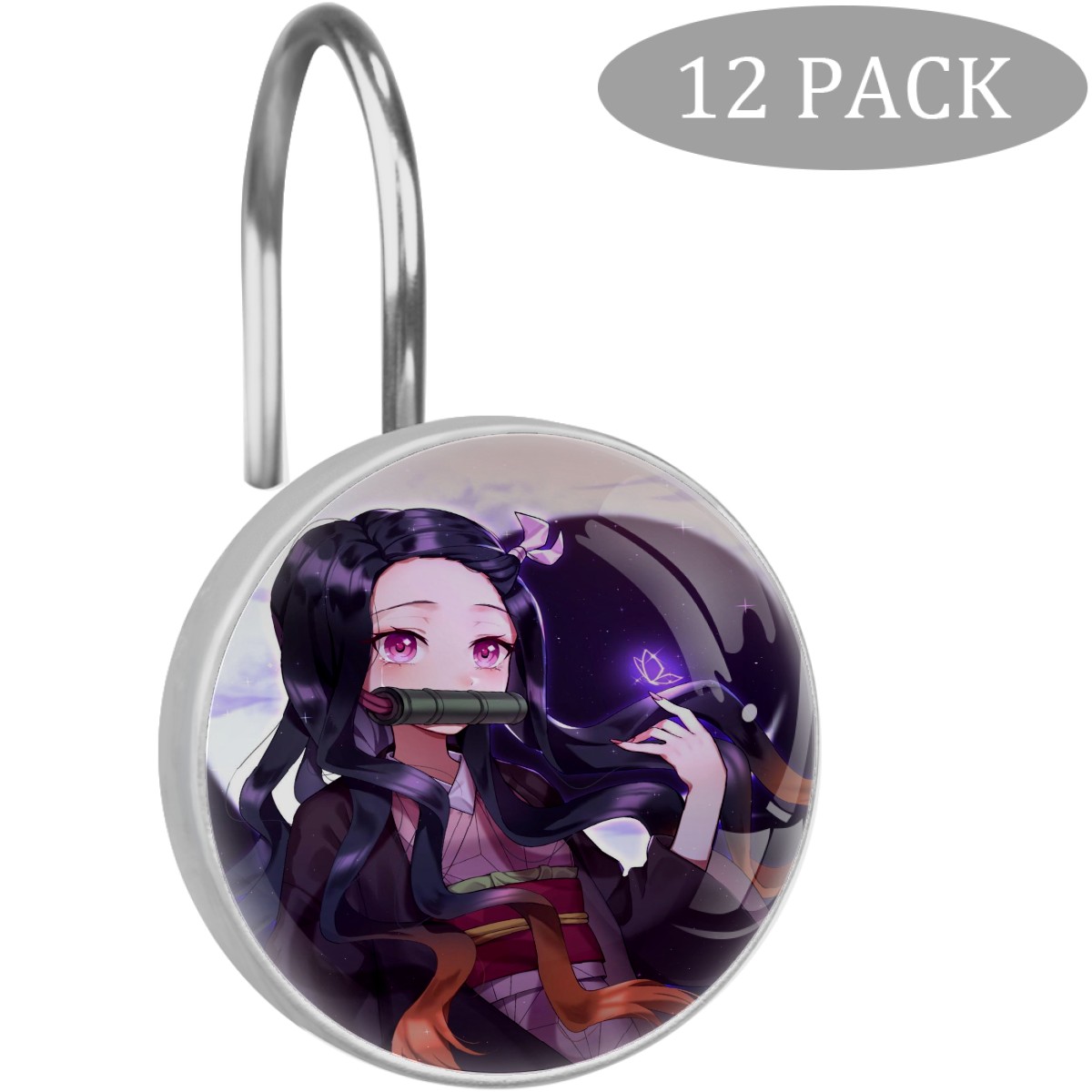 Demon Slayer Kamado Nezuko Butterfly Shower Curtain Hooks,12PCS Diamond Shaped Shower Curtain Rings for Shower Rods Curtain and Liner Home Decor
