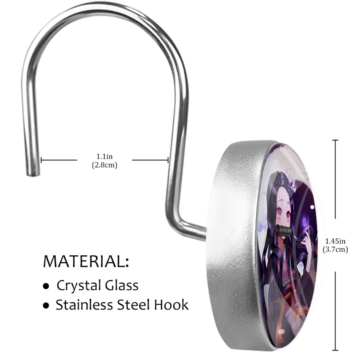 <p><b>Diamond Shaped Shower Curtain Hooks12PCS Shower Curtain Rings for Shower Rods Curtain and Liner Home Decor&nbsp;</b></p><p><b>Size:</b>Crystal glass diameter-1.45x1.45in/ 3.7x3.7cm. Hook diameter is about 1.1in</p><p><b>Material:</b>Crystal Glass + Stainless Steel Hook, Single-sided printing</p><p>Package included: 12&nbsp;x Shower Curtain Hooks</p><p></p><p><b>Features:</b></p><p>-Simply thread through existing holes and hang over shower rod.This decorative shower curtain rings allow effortless gliding across the rod with virtually no effort at all.</p><p>-The shower curtain hook adopts U-shaped hook design, with strong load-bearing capacity, safe and stable, without slide out and fall.</p><p>-Inlaid with crystals, a row of round crystal hooks sparkle and charming under the refraction of light, creating a warm and romantic home for you</p><p>-This bling bling decorative shower curtain rings can attach to your shower curtain eyelets and curtain pole very quickly and easily.</p><p>-Durable rust-resistant design that won't detach or break when moderate stress is put on the curtain. The stainless steel material, non-magnetic metal is corrosion-free, meaning it will last indoors and outdoors without rusting</p><p>-Best Birthday/Christmas Gift&nbsp;to your family, friends, kids, girls, boys, girlfriend, boyfriend, men, women, etc.&nbsp;</p>