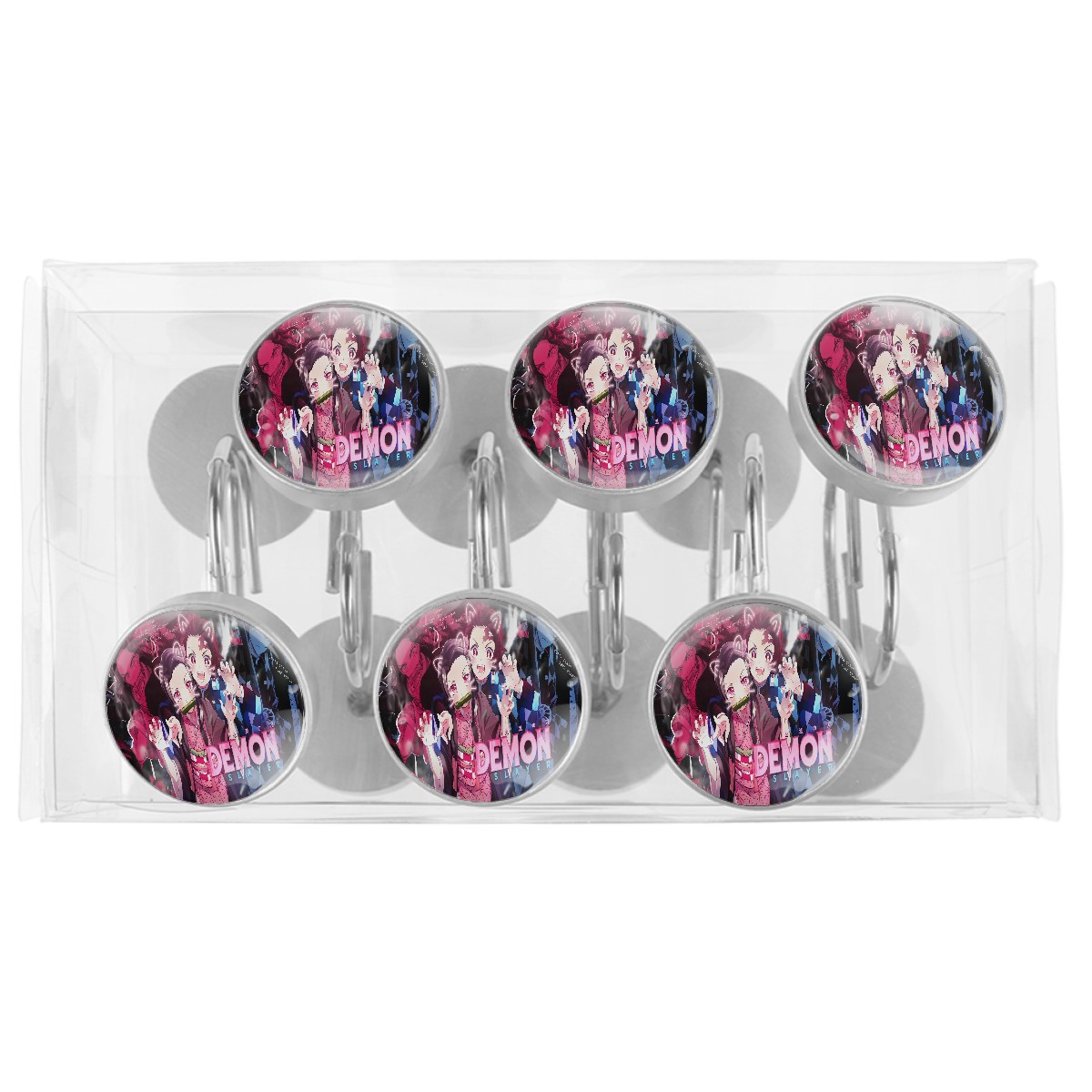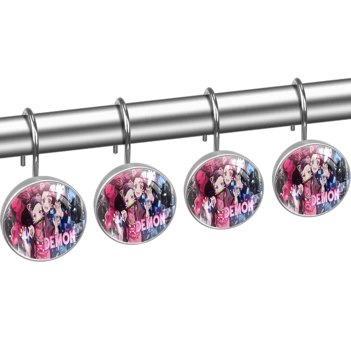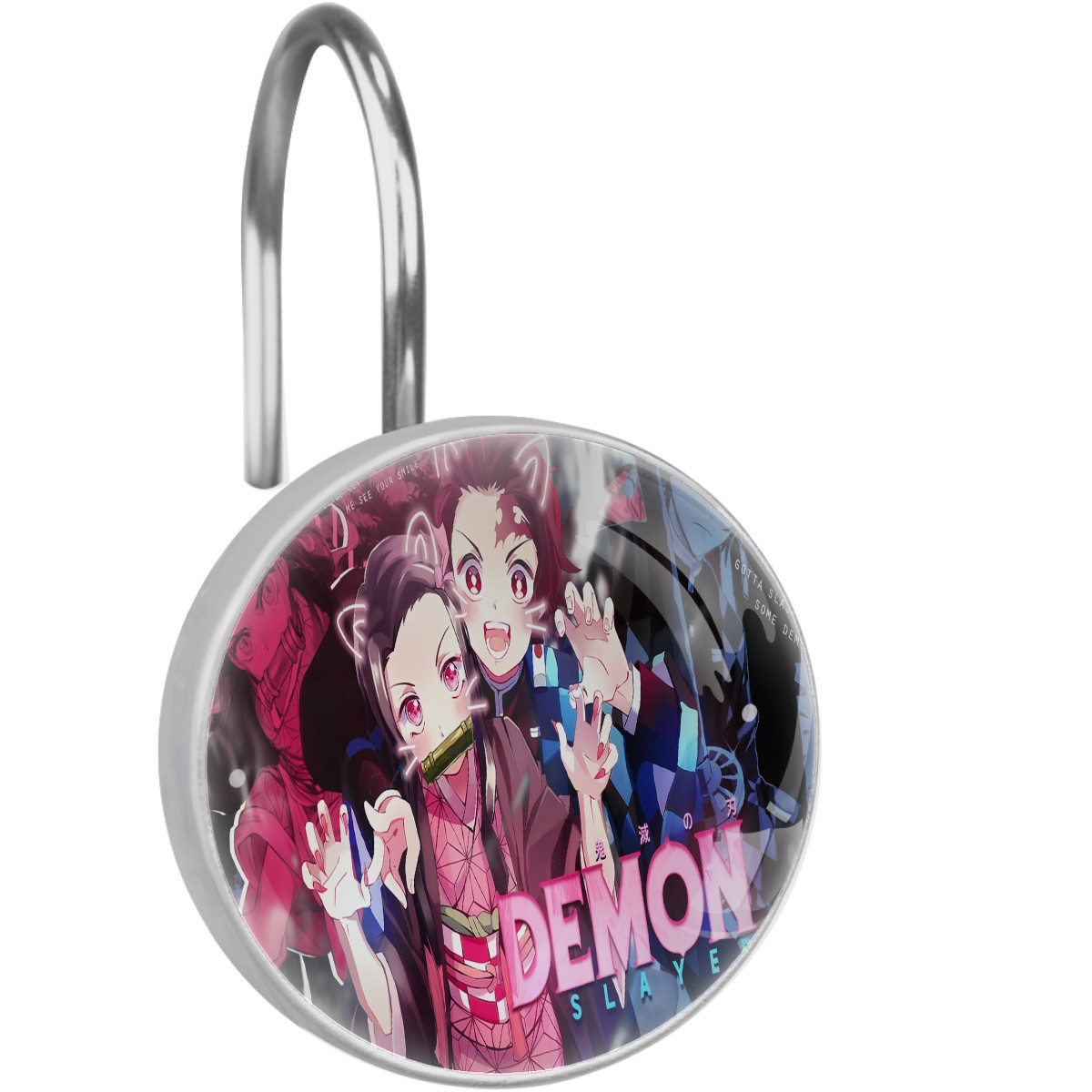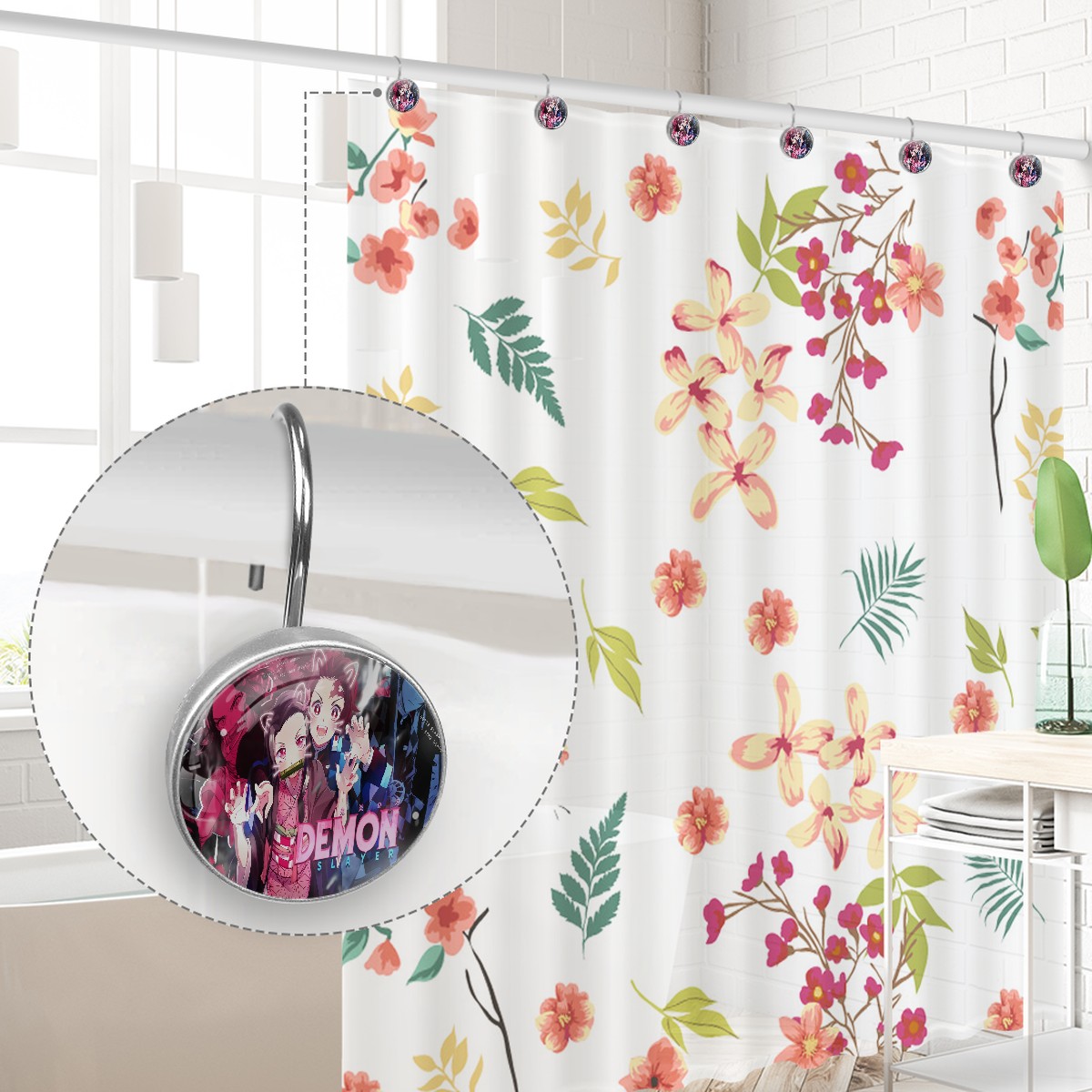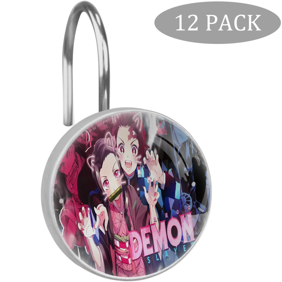 Anime Demon Slayer Kamado Nezuko Cute Shower Curtain Hooks,12PCS Diamond Shaped Shower Curtain Rings for Shower Rods Curtain and Liner Home Decor