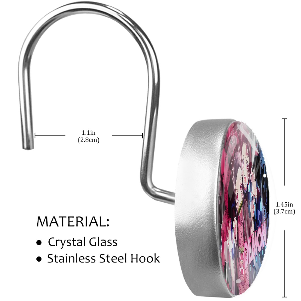 <p><b>Diamond Shaped Shower Curtain Hooks12PCS Shower Curtain Rings for Shower Rods Curtain and Liner Home Decor&nbsp;</b></p><p><b>Size:</b>Crystal glass diameter-1.45x1.45in/ 3.7x3.7cm. Hook diameter is about 1.1in</p><p><b>Material:</b>Crystal Glass + Stainless Steel Hook, Single-sided printing</p><p>Package included: 12&nbsp;x Shower Curtain Hooks</p><p></p><p><b>Features:</b></p><p>-Simply thread through existing holes and hang over shower rod.This decorative shower curtain rings allow effortless gliding across the rod with virtually no effort at all.</p><p>-The shower curtain hook adopts U-shaped hook design, with strong load-bearing capacity, safe and stable, without slide out and fall.</p><p>-Inlaid with crystals, a row of round crystal hooks sparkle and charming under the refraction of light, creating a warm and romantic home for you</p><p>-This bling bling decorative shower curtain rings can attach to your shower curtain eyelets and curtain pole very quickly and easily.</p><p>-Durable rust-resistant design that won't detach or break when moderate stress is put on the curtain. The stainless steel material, non-magnetic metal is corrosion-free, meaning it will last indoors and outdoors without rusting</p><p>-Best Birthday/Christmas Gift&nbsp;to your family, friends, kids, girls, boys, girlfriend, boyfriend, men, women, etc.&nbsp;</p>