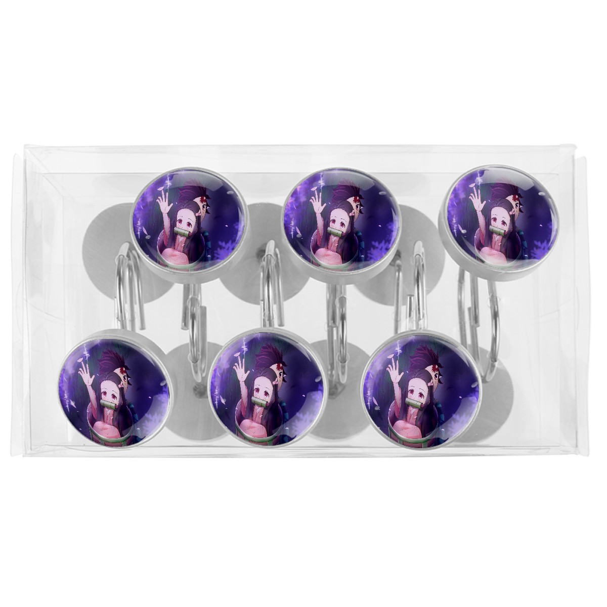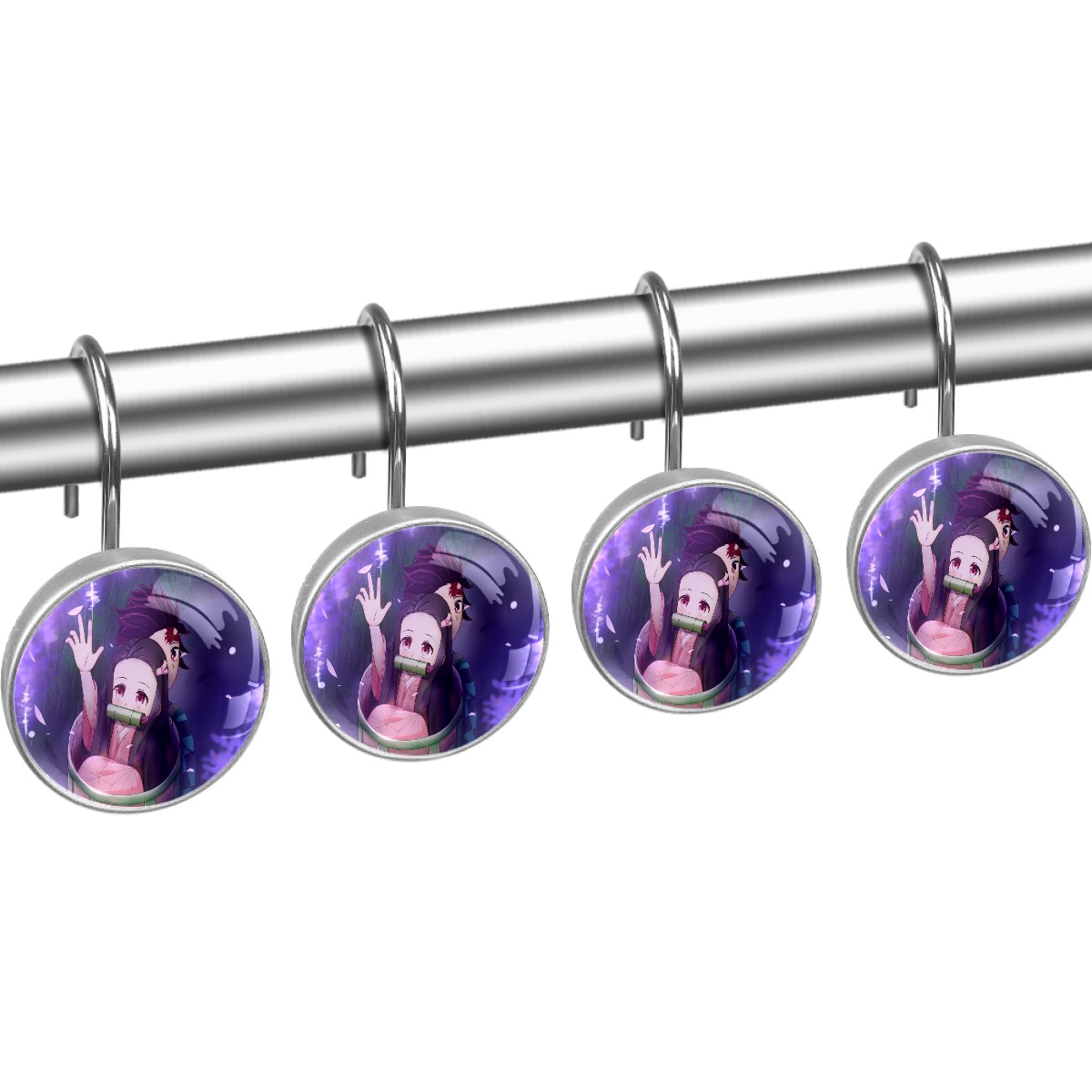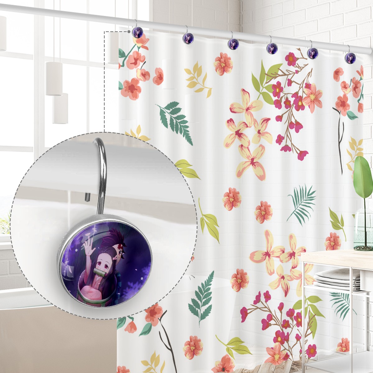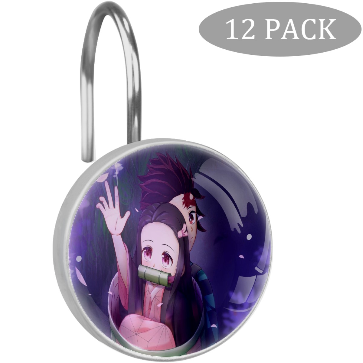 Demon Slayer Kamado Nezuko Shower Curtain Hooks,12PCS Diamond Shaped Shower Curtain Rings for Shower Rods Curtain and Liner Home Decor