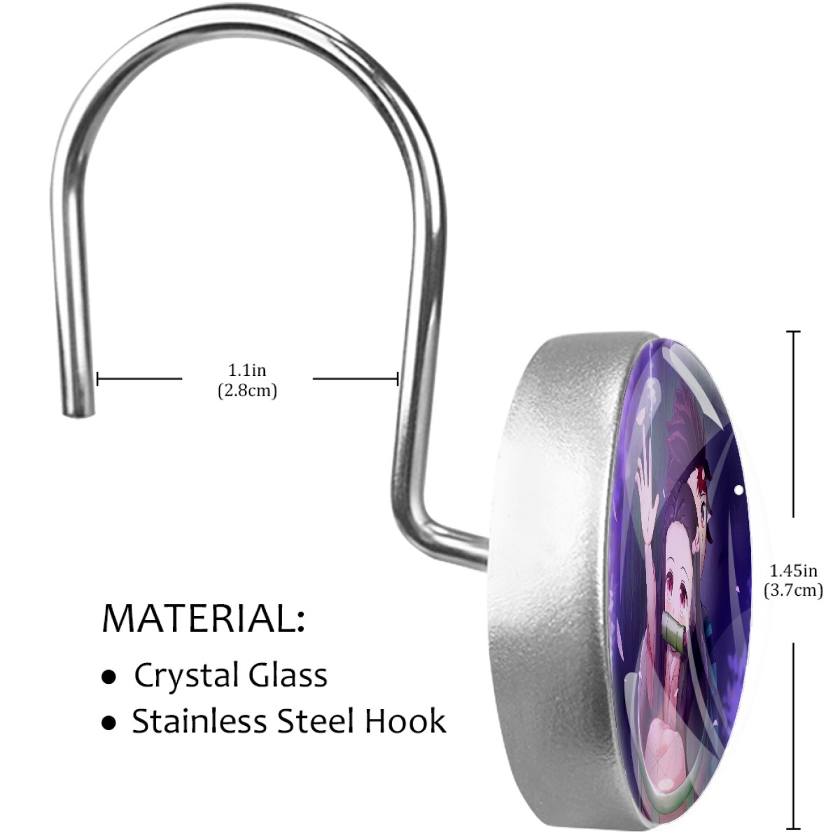 <p><b>Diamond Shaped Shower Curtain Hooks12PCS Shower Curtain Rings for Shower Rods Curtain and Liner Home Decor&nbsp;</b></p><p><b>Size:</b>Crystal glass diameter-1.45x1.45in/ 3.7x3.7cm. Hook diameter is about 1.1in</p><p><b>Material:</b>Crystal Glass + Stainless Steel Hook, Single-sided printing</p><p>Package included: 12&nbsp;x Shower Curtain Hooks</p><p></p><p><b>Features:</b></p><p>-Simply thread through existing holes and hang over shower rod.This decorative shower curtain rings allow effortless gliding across the rod with virtually no effort at all.</p><p>-The shower curtain hook adopts U-shaped hook design, with strong load-bearing capacity, safe and stable, without slide out and fall.</p><p>-Inlaid with crystals, a row of round crystal hooks sparkle and charming under the refraction of light, creating a warm and romantic home for you</p><p>-This bling bling decorative shower curtain rings can attach to your shower curtain eyelets and curtain pole very quickly and easily.</p><p>-Durable rust-resistant design that won't detach or break when moderate stress is put on the curtain. The stainless steel material, non-magnetic metal is corrosion-free, meaning it will last indoors and outdoors without rusting</p><p>-Best Birthday/Christmas Gift&nbsp;to your family, friends, kids, girls, boys, girlfriend, boyfriend, men, women, etc.&nbsp;</p>