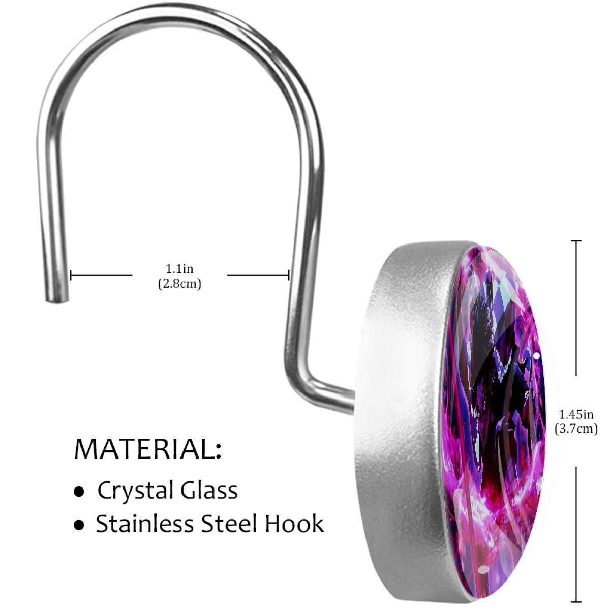 • <p><b>Diamond Shaped Shower Curtain Hooks12PCS Shower Curtain Rings for Shower Rods Curtain and Liner Home Decor&nbsp;</b></p><p><b>Size:</b>Crystal glass diameter-1.45x1.45in/ 3.7x3.7cm. Hook diameter is about 1.1in</p><p><b>Material:</b>Crystal Glass + Stainless Steel Hook, Single-sided printing</p><p>Package included: 12&nbsp;x Shower Curtain Hooks</p><p></p><p><b>Features:</b></p><p>-Simply thread through existing holes and hang over shower rod.This decorative shower curtain rings allow effortless gliding across the rod with virtually no effort at all.</p><p>-The shower curtain hook adopts U-shaped hook design, with strong load-bearing capacity, safe and stable, without slide out and fall.</p><p>-Inlaid with crystals, a row of round crystal hooks sparkle and charming under the refraction of light, creating a warm and romantic home for you</p><p>-This bling bling decorative shower curtain rings can attach to your shower curtain eyelets and curtain pole very quickly and easily.</p><p>-Durable rust-resistant design that won't detach or break when moderate stress is put on the curtain. The stainless steel material, non-magnetic metal is corrosion-free, meaning it will last indoors and outdoors without rusting</p><p>-Best Birthday/Christmas Gift&nbsp;to your family, friends, kids, girls, boys, girlfriend, boyfriend, men, women, etc.&nbsp;</p>