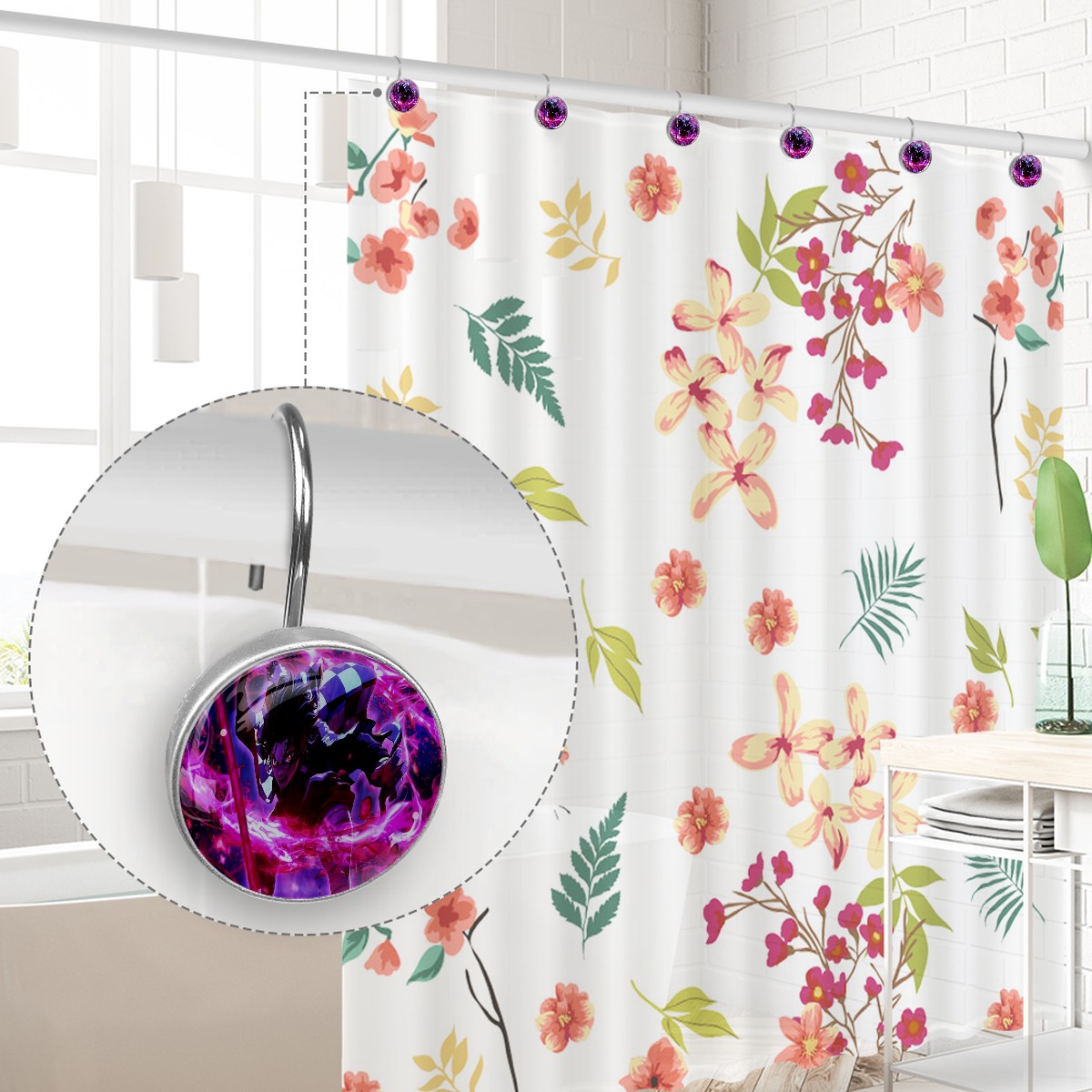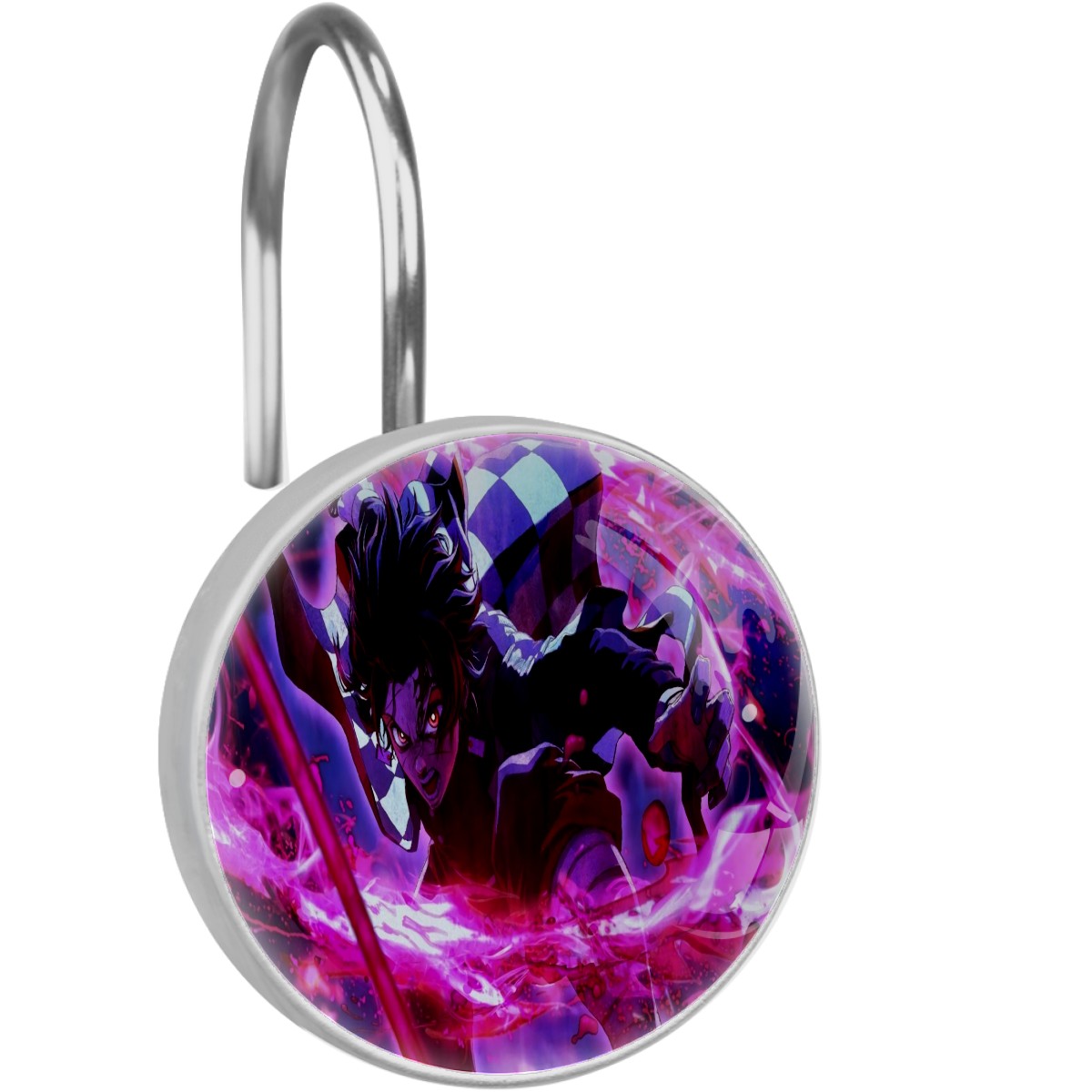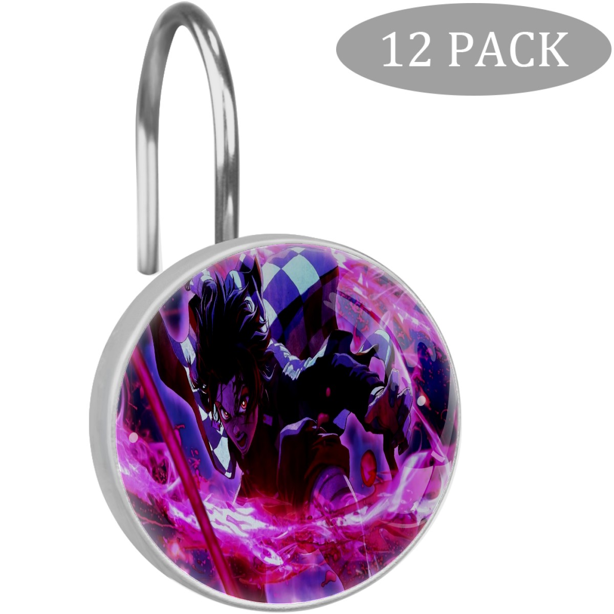 Anime Demon Slayer Kamado Tanjirou Shower Curtain Hooks,12PCS Diamond Shaped Shower Curtain Rings for Shower Rods Curtain and Liner Home Decor