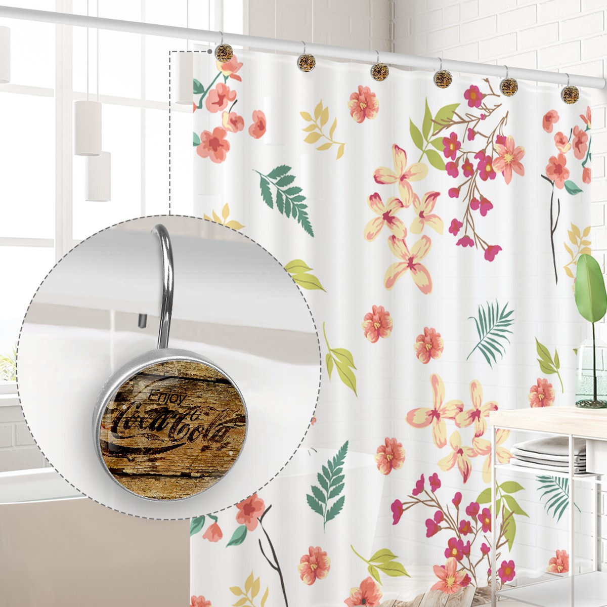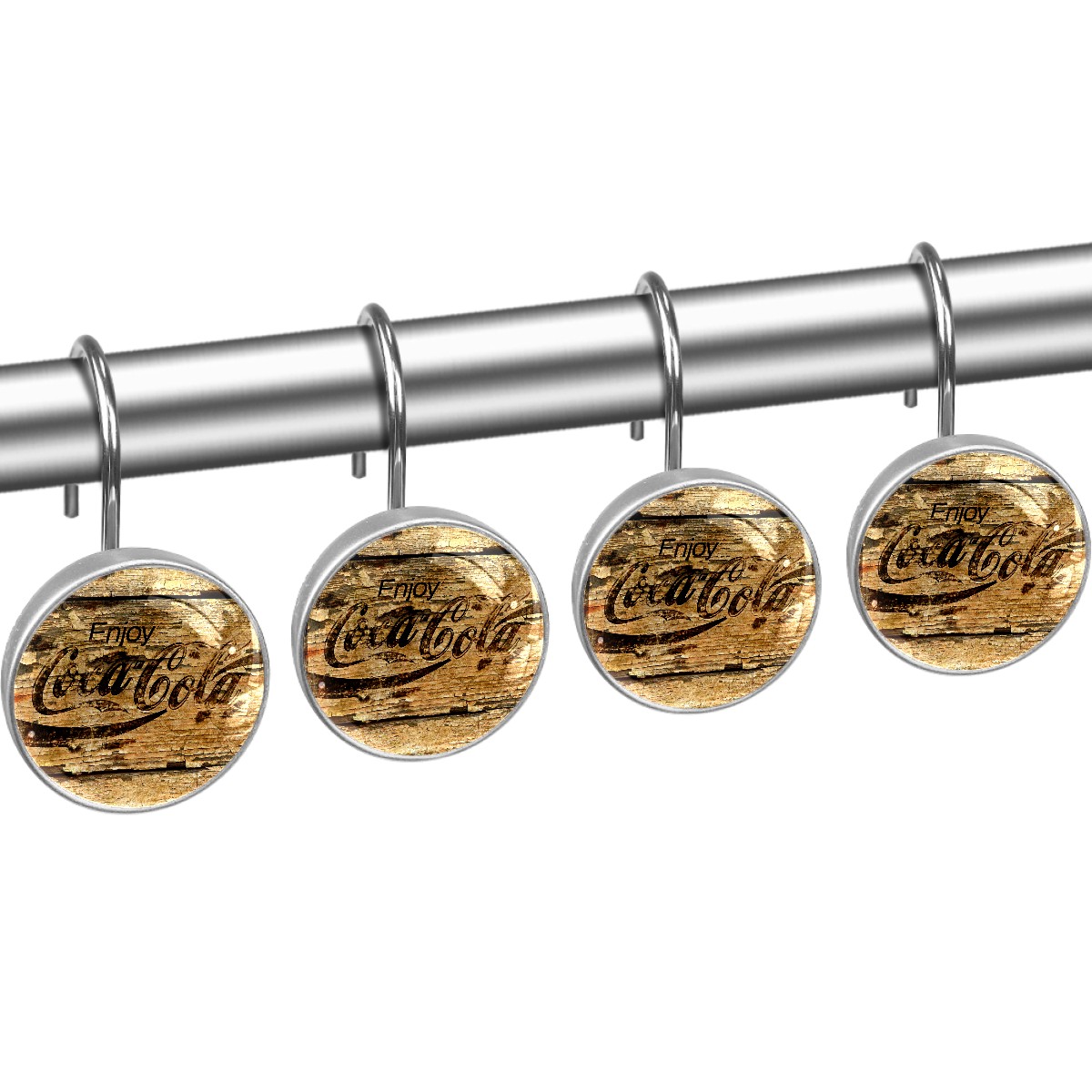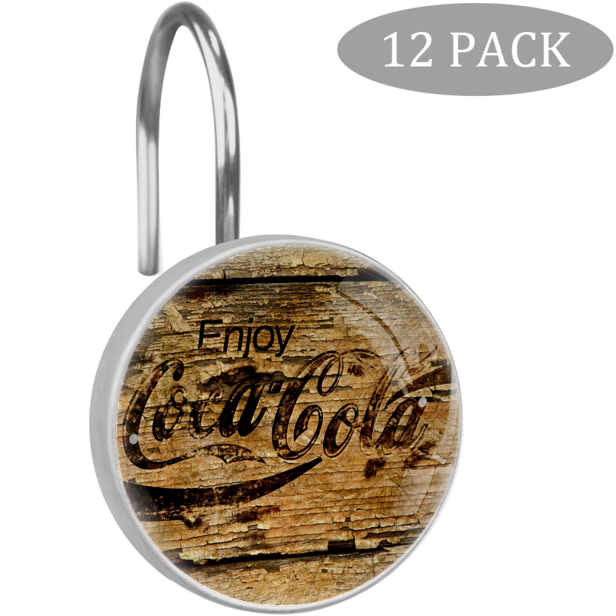 Vintage Grunge Coca Cola Sign Shower Curtain Hooks,12PCS Diamond Shaped Shower Curtain Rings for Shower Rods Curtain and Liner Home Decor
