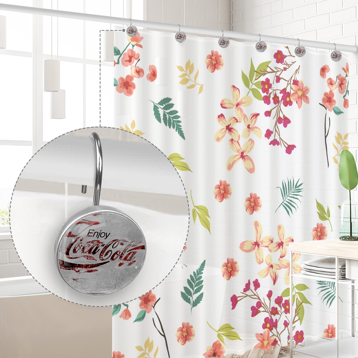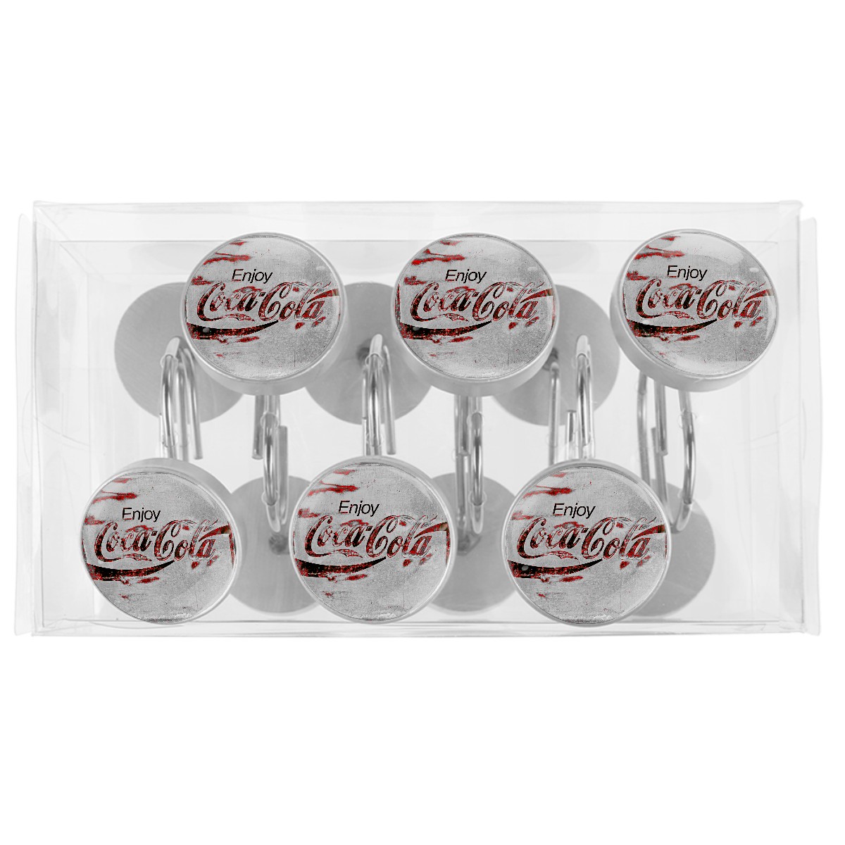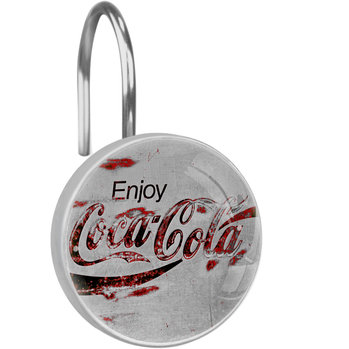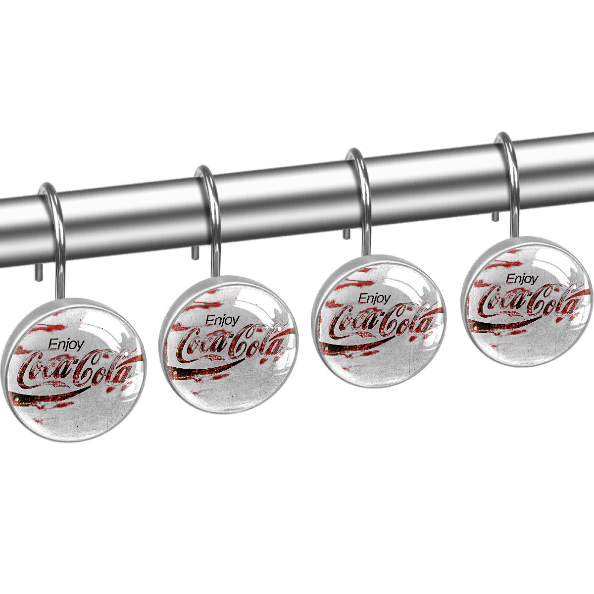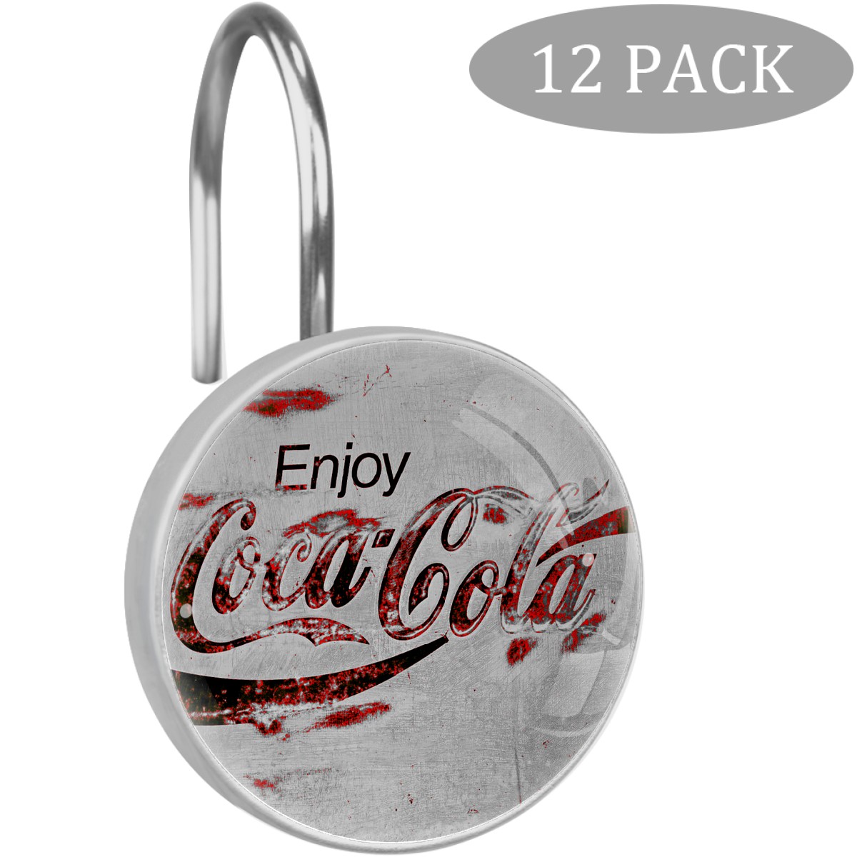 Vintage Enjoy Coca Cola Sign Shower Curtain Hooks,12PCS Diamond Shaped Shower Curtain Rings for Shower Rods Curtain and Liner Home Decor
