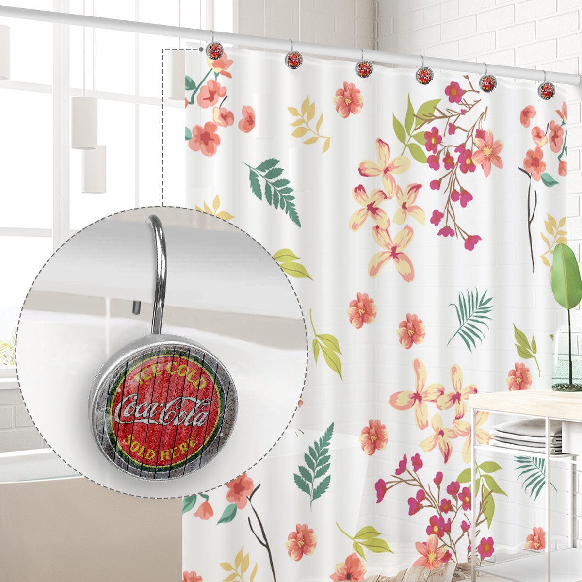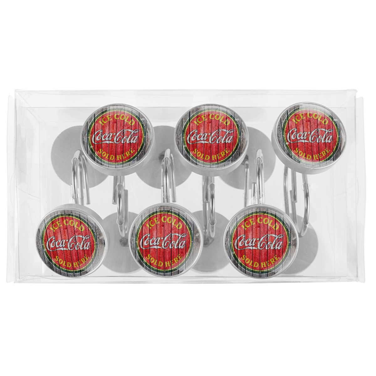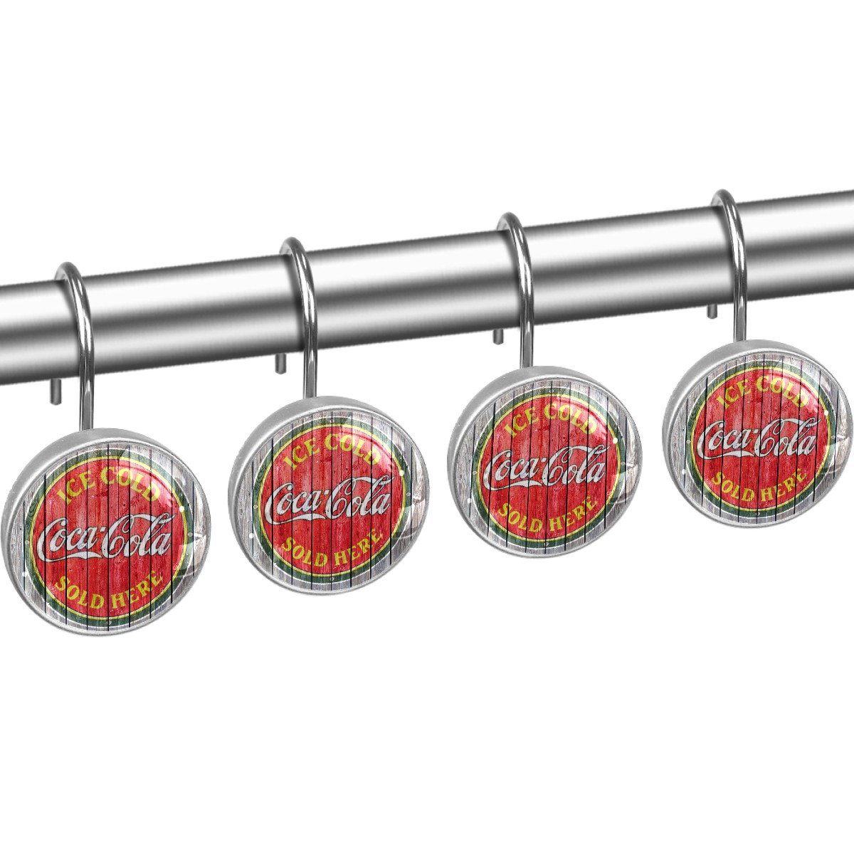 Vintage Ice Cold Coca Cola Sign Shower Curtain Hooks,12PCS Diamond Shaped Shower Curtain Rings for Shower Rods Curtain and Liner Home Decor