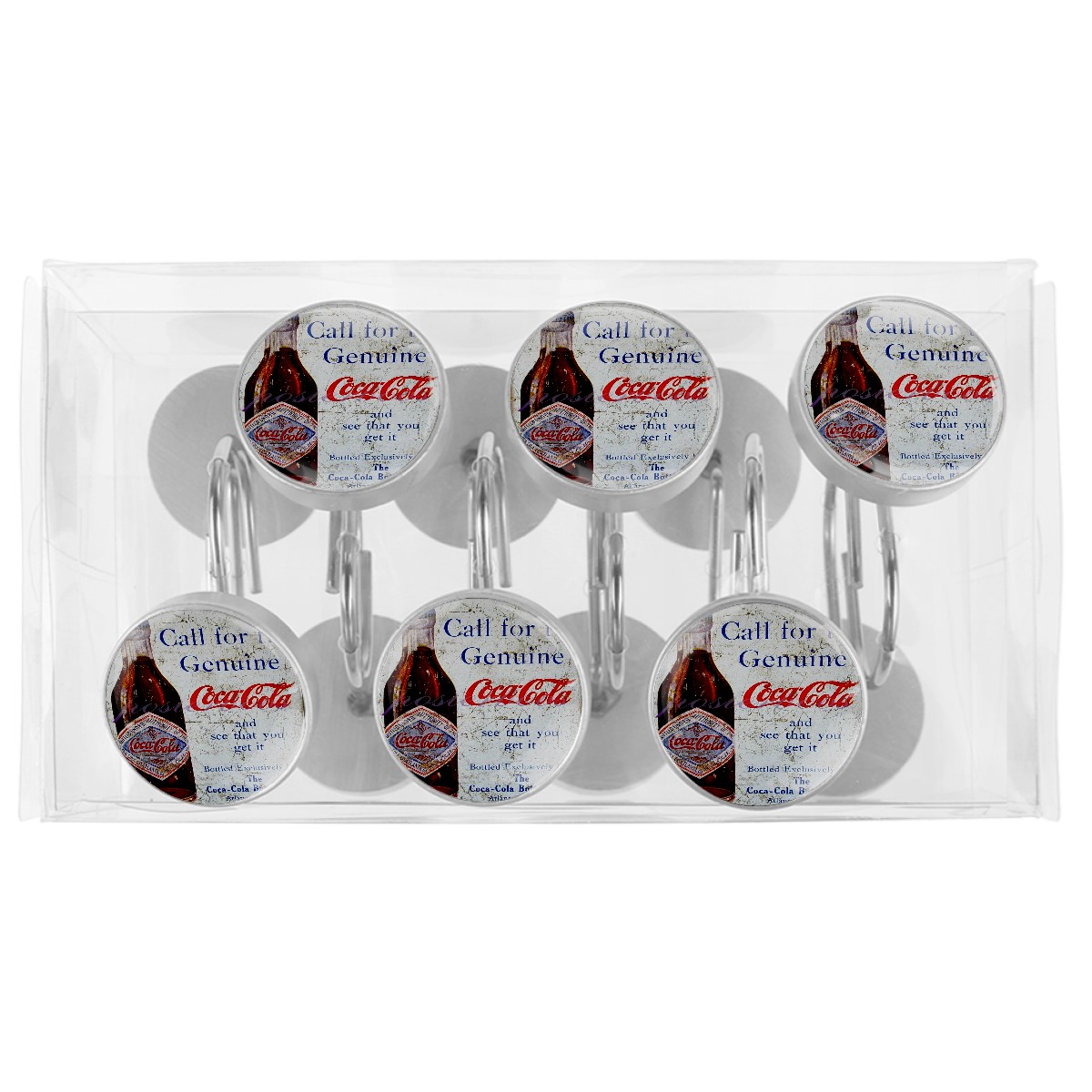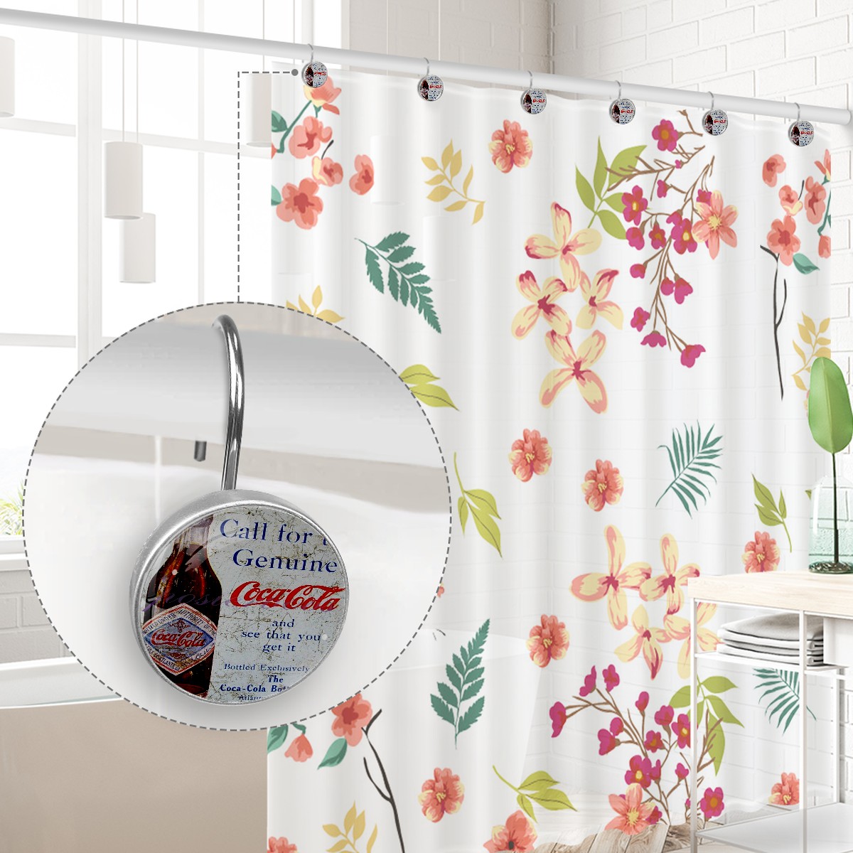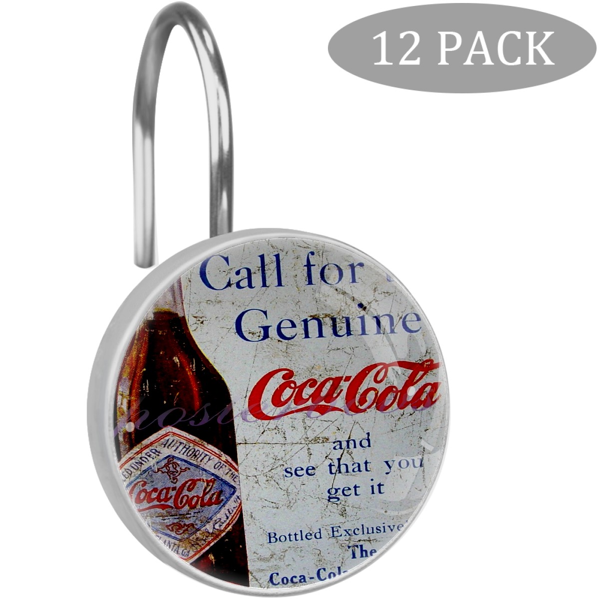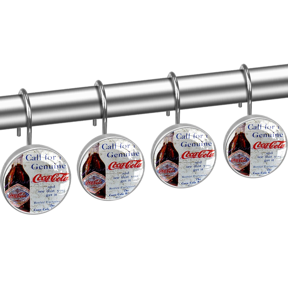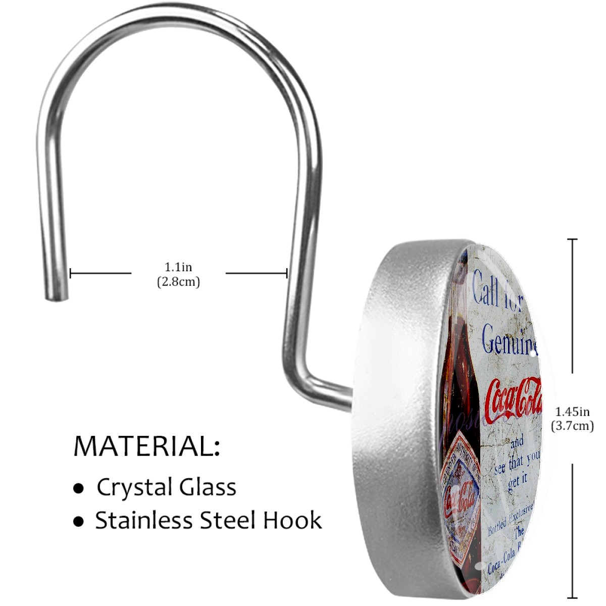 Retro Poster Coca Cola Shower Curtain Hooks,12PCS Diamond Shaped Shower Curtain Rings for Shower Rods Curtain and Liner Home Decor