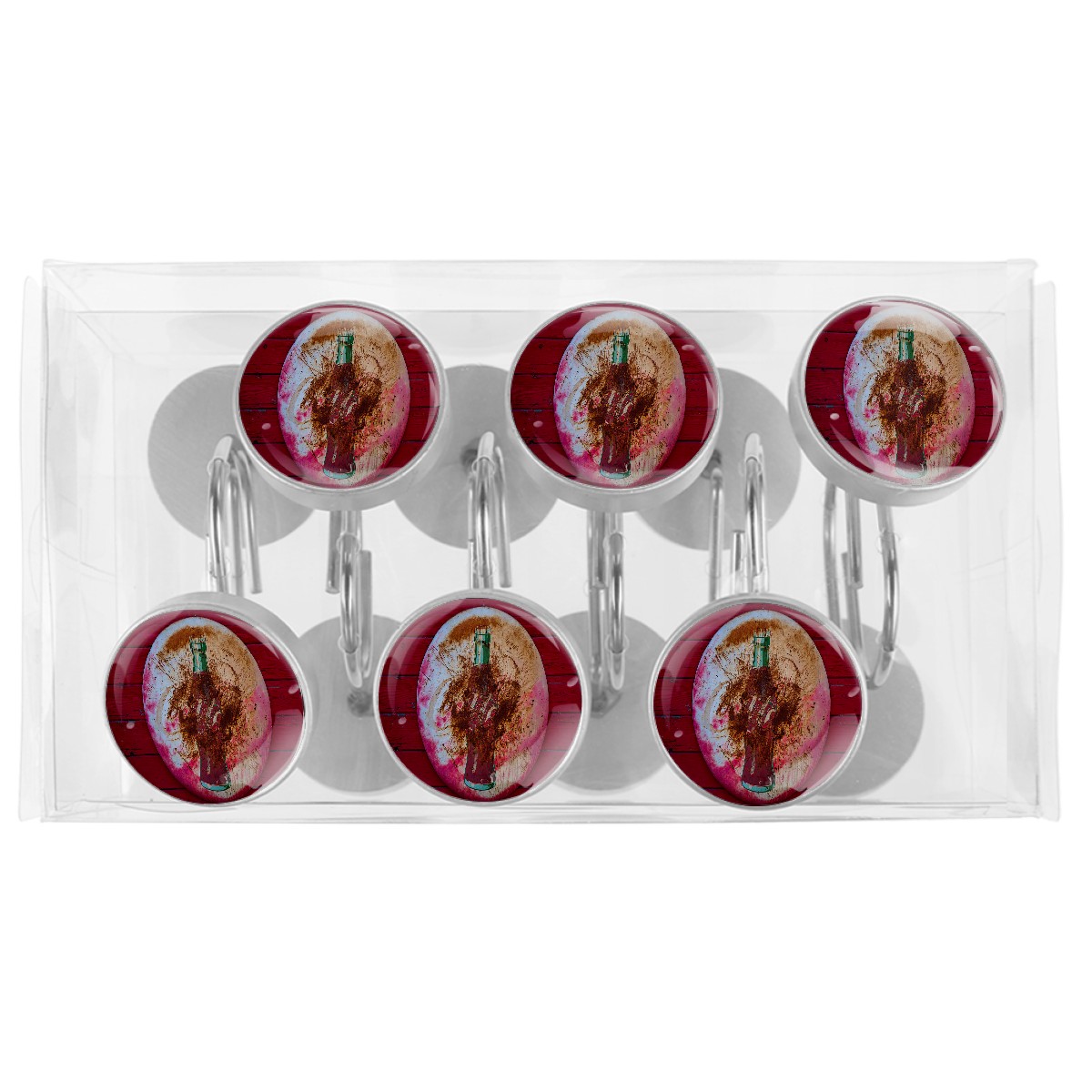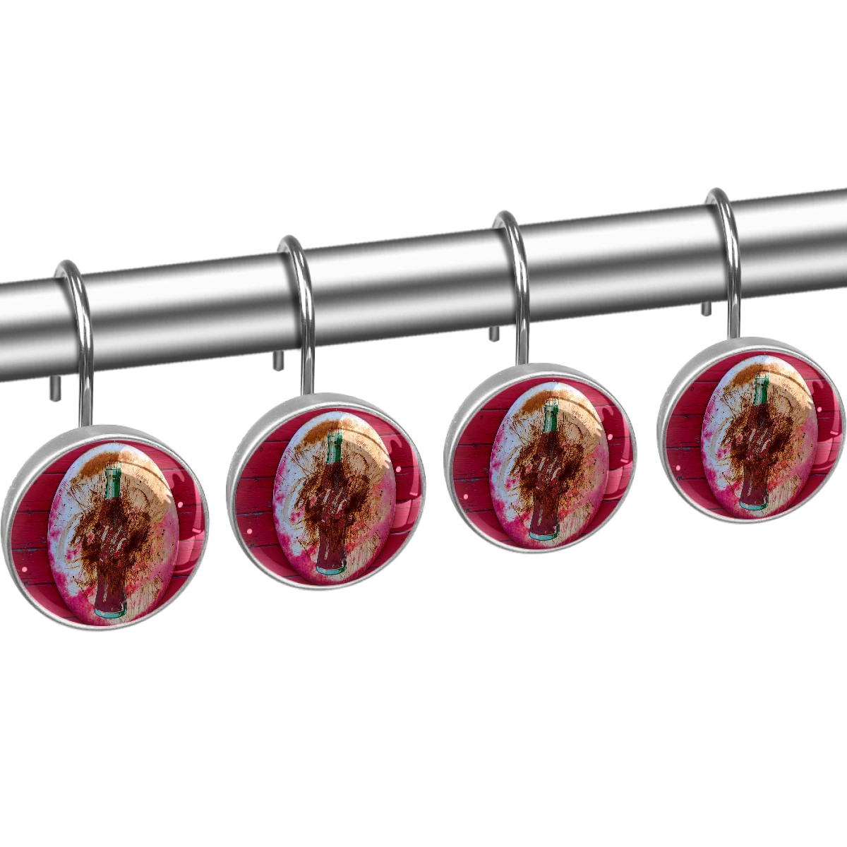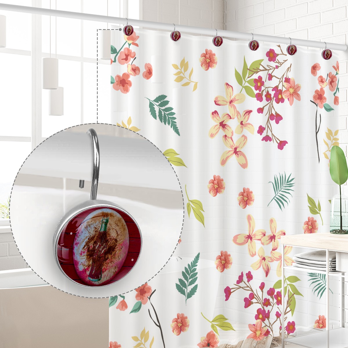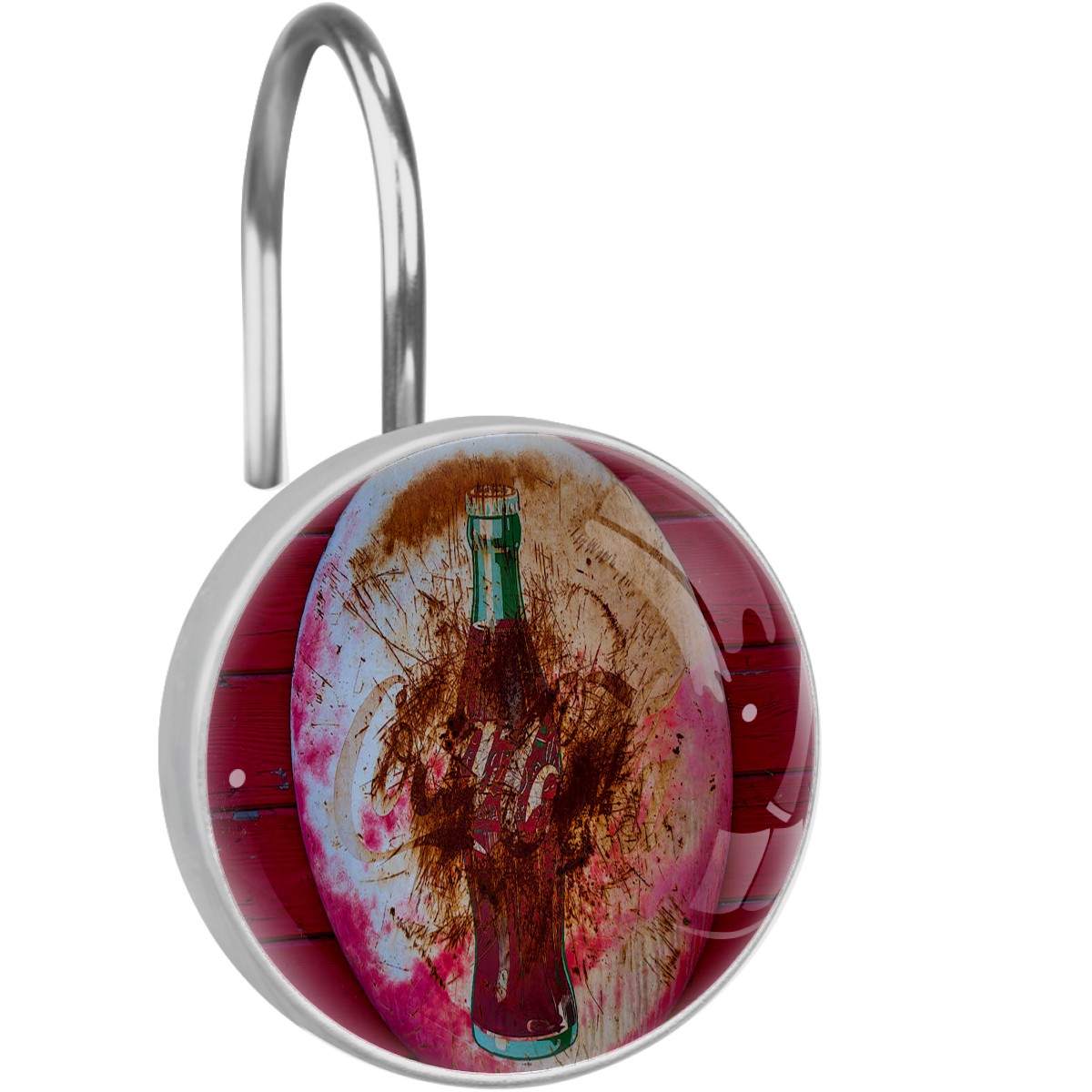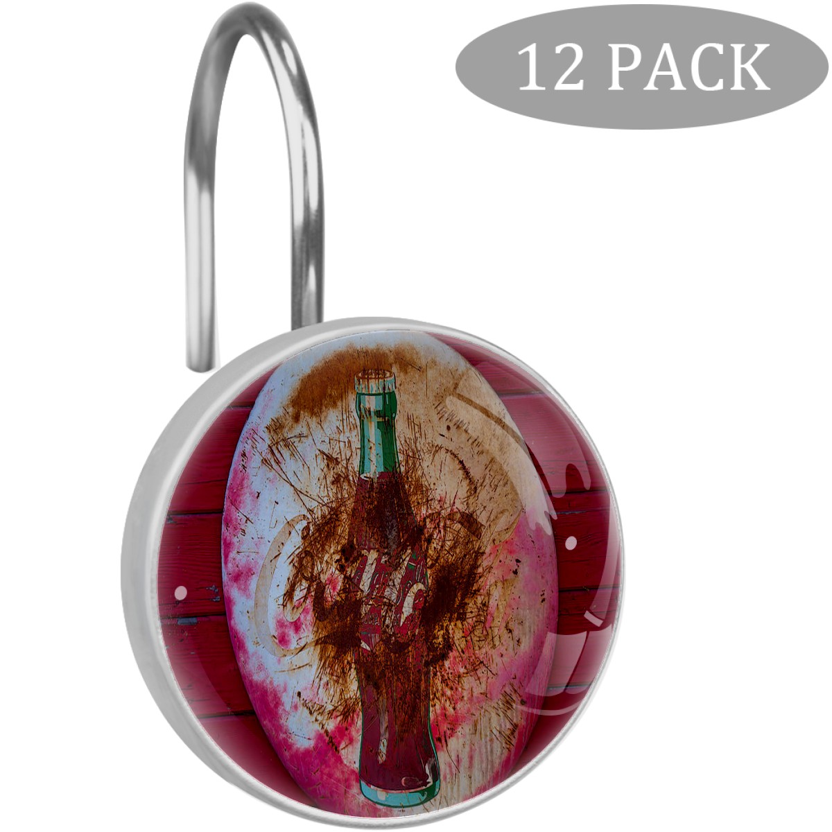Round Coke Sign Shower Curtain Hooks,12PCS Diamond Shaped Shower Curtain Rings for Shower Rods Curtain and Liner Home Decor